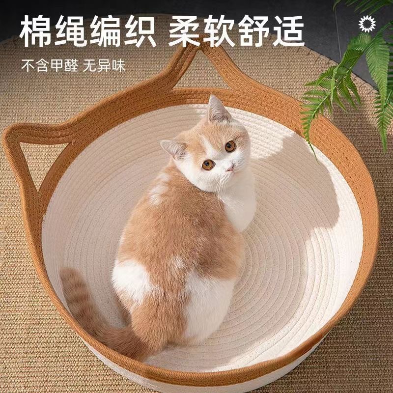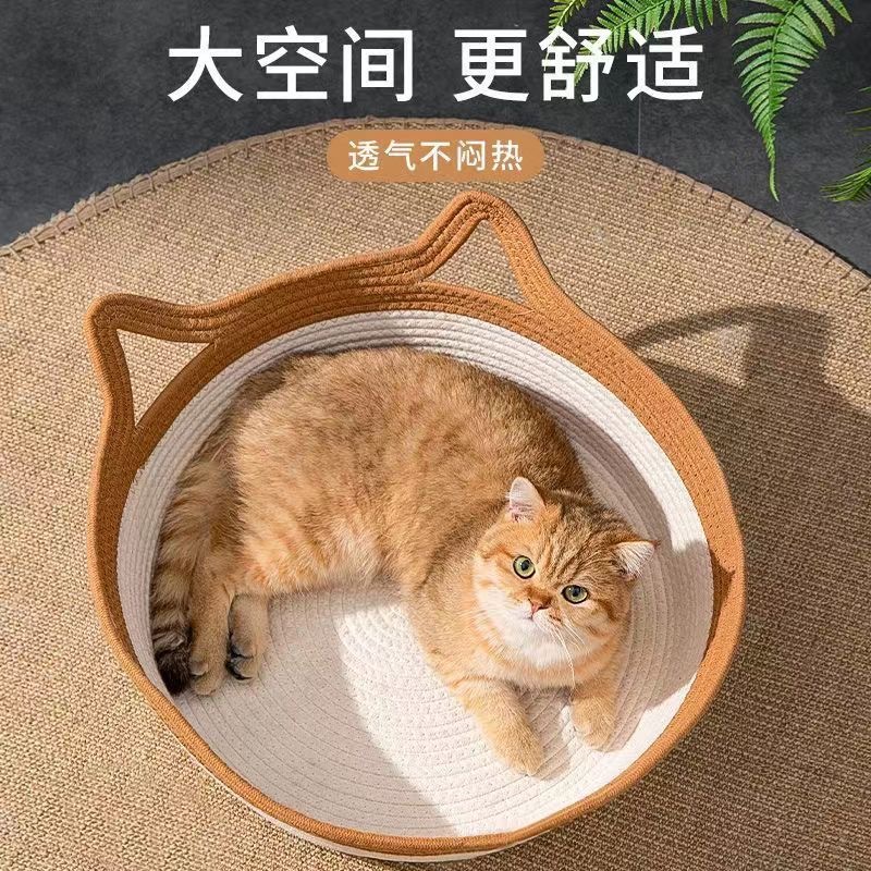 고양이 둥지 사계절 유니버설 코튼 밧줄 고양이 스크래치 보드 통합 여름 시원한 둥지 짠 고양이 둥지 개 둥지 먼지 방지 및 세척 가능