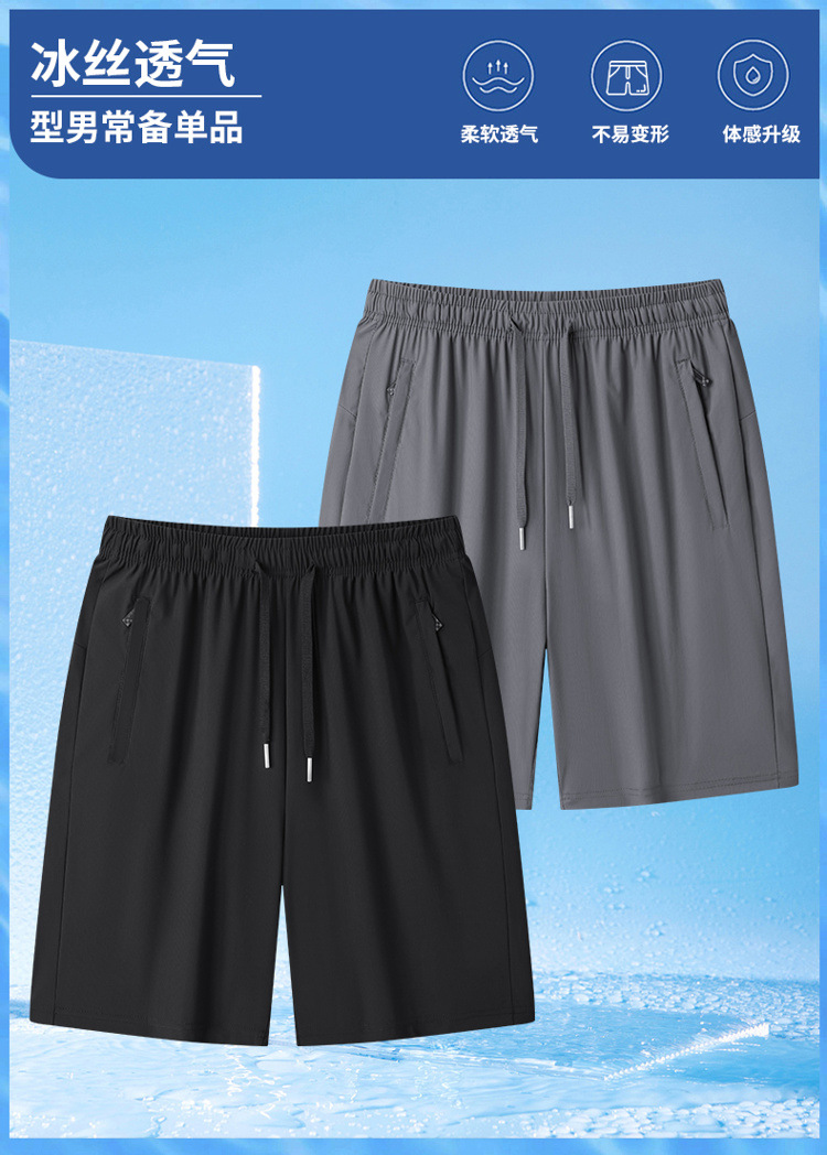 남자 고탄성 아이스 실크 캐주얼 반바지 플러스 사이즈 플러스 사이즈 지방 스포츠 바지 여름 얇은 비치 바지스토어 가기