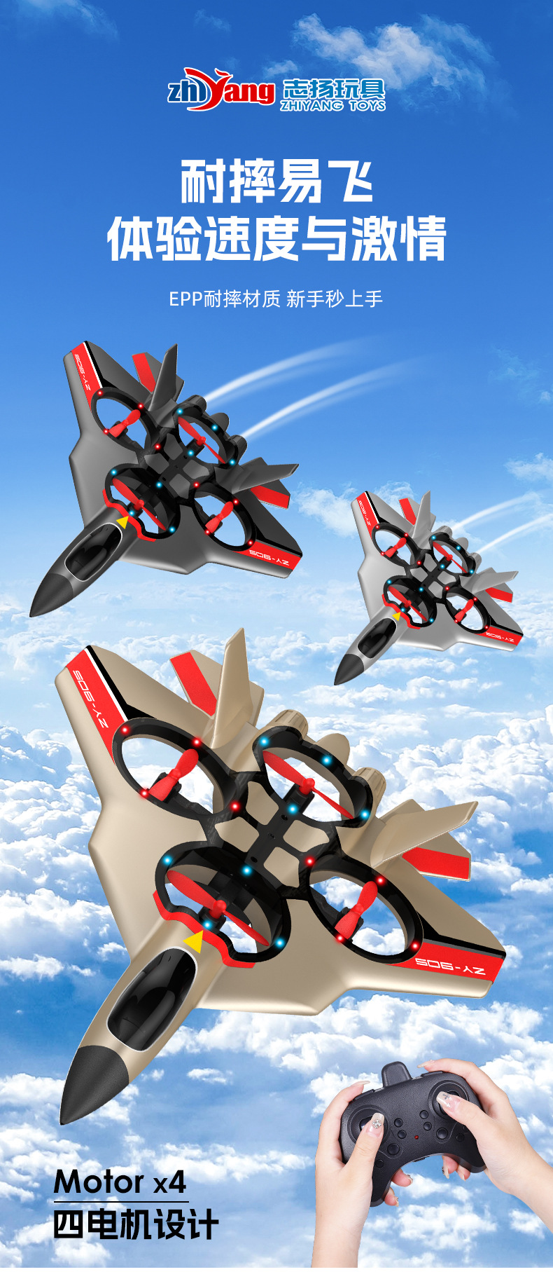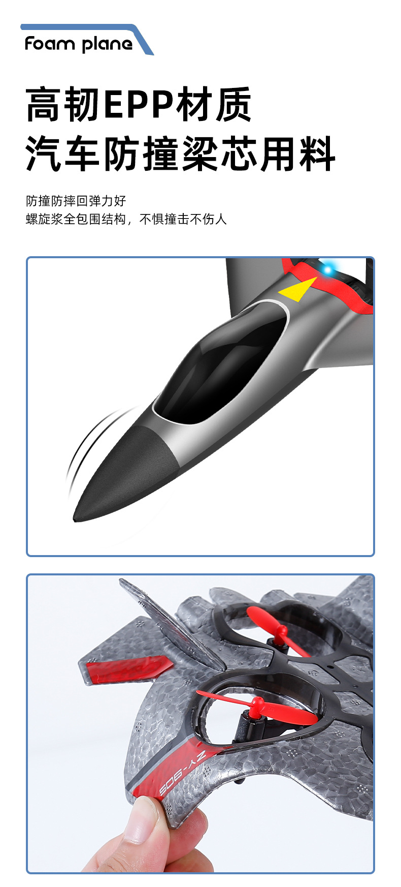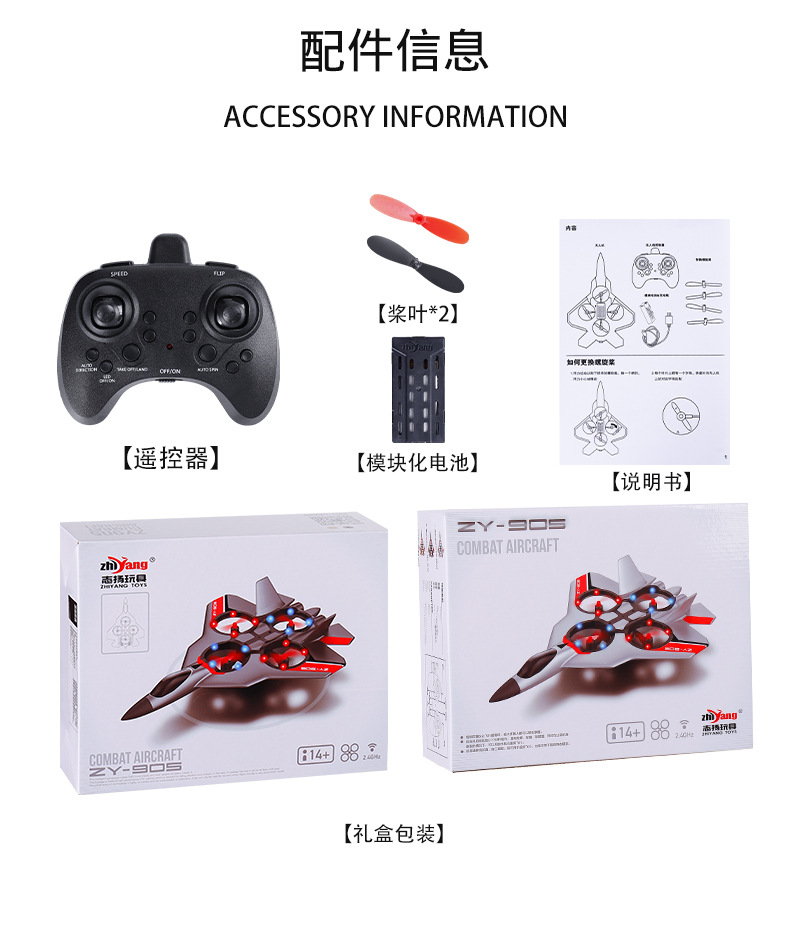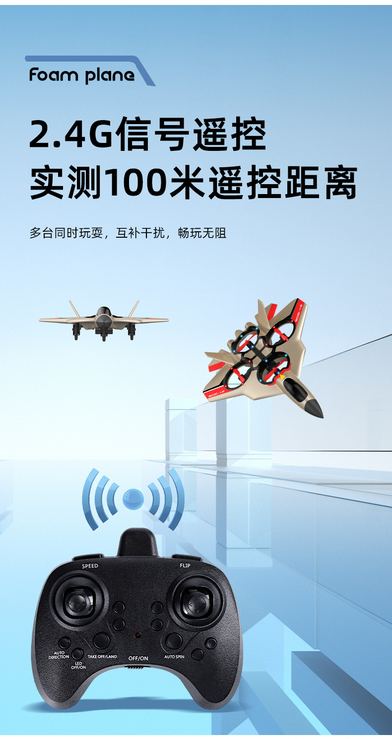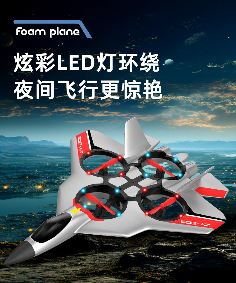 Zhiyang 장난감 원격 제어 항공기 어린이 장난감 낙하 방지 4축 전투기 거품 장난감 글라이딩 비행기 호버링