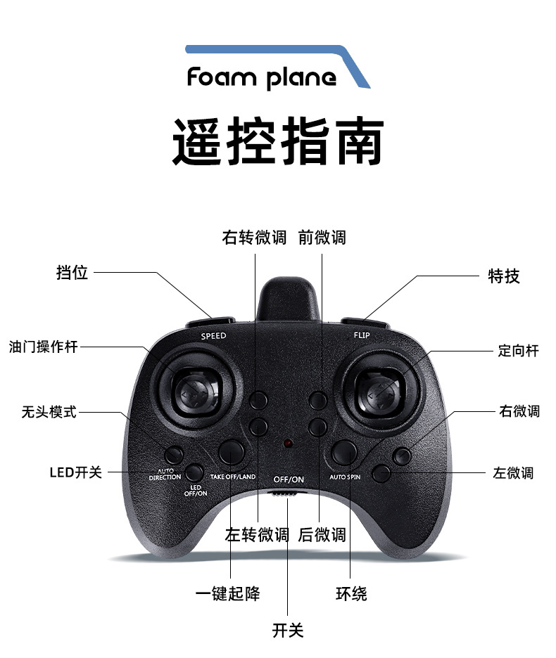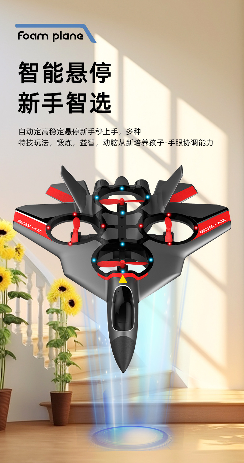 Zhiyang 장난감 원격 제어 항공기 어린이 장난감 낙하 방지 4축 전투기 거품 장난감 글라이딩 비행기 호버링스토어 가기