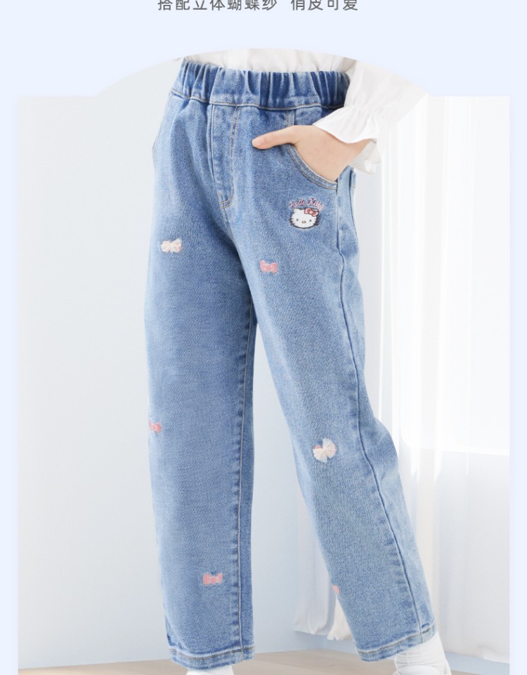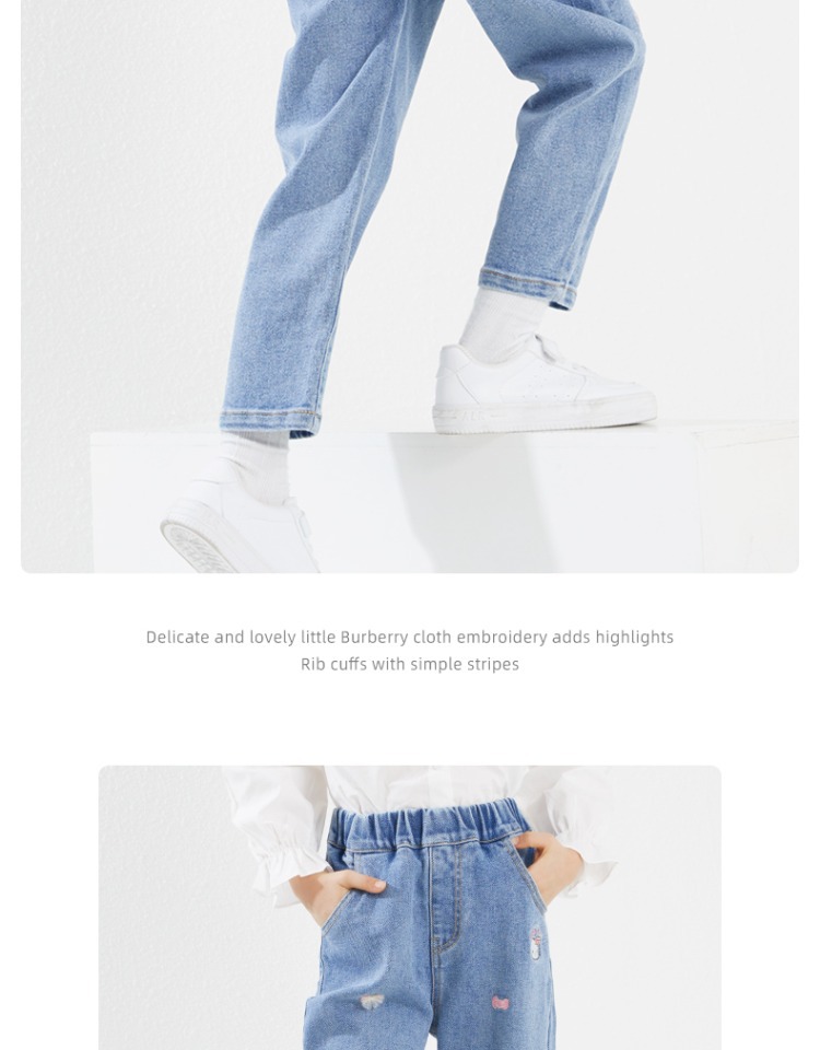 여아 청바지 아동 바지 가을 신상 캐주얼 바지 큰아이 루즈핏 스트레이트 팬츠 트렌디 중대형 아동복