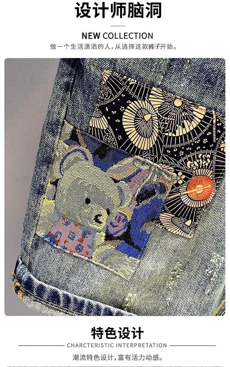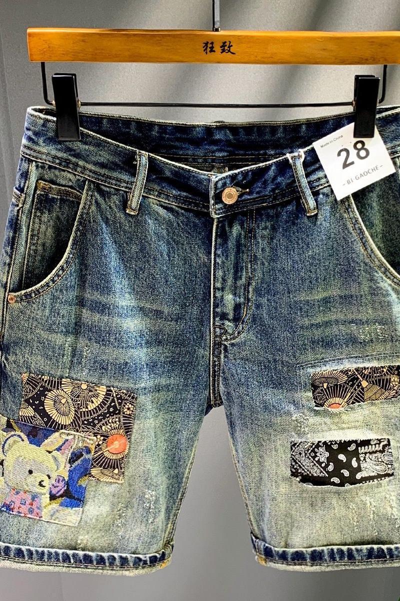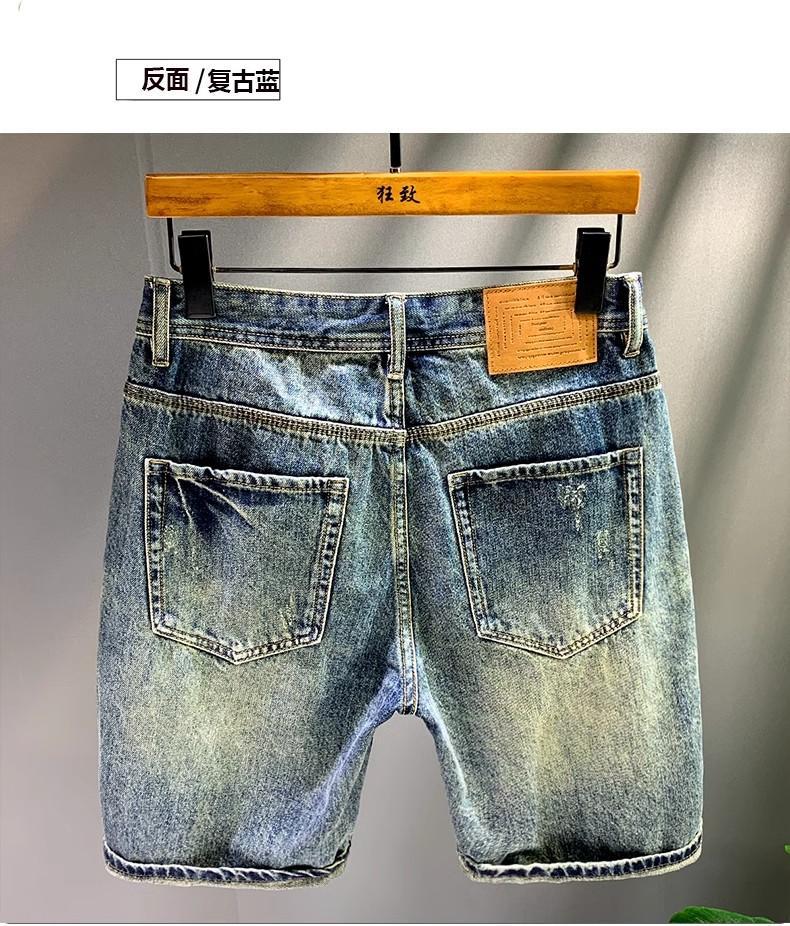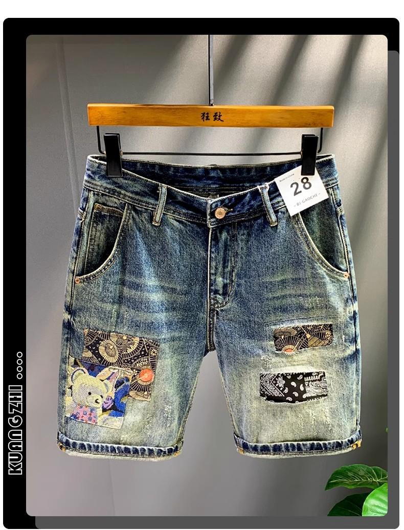 하이 스트리트 트렌디 브랜드 레트로 데님 반바지 여름 뉴 루즈 할란 남자의 독특한 트렌디 찢어진 천 바지스토어 가기