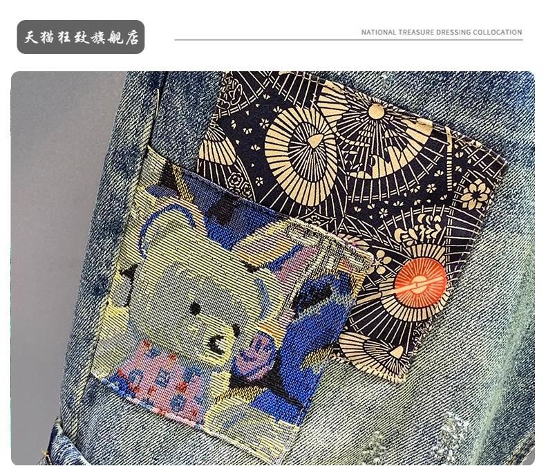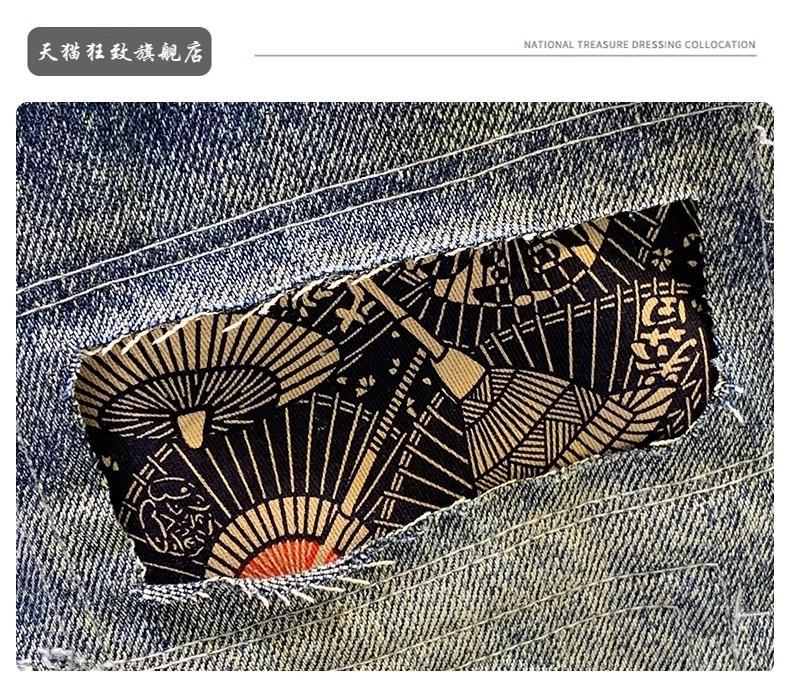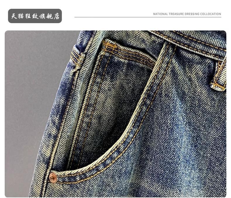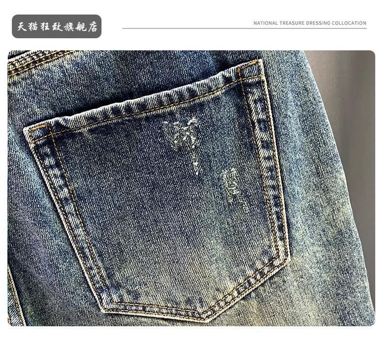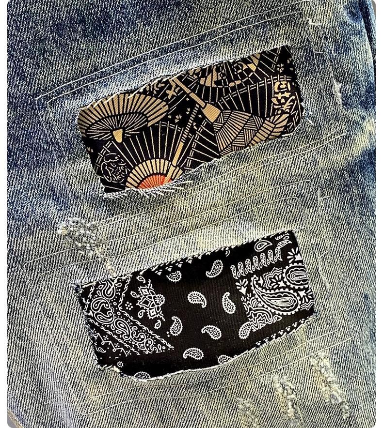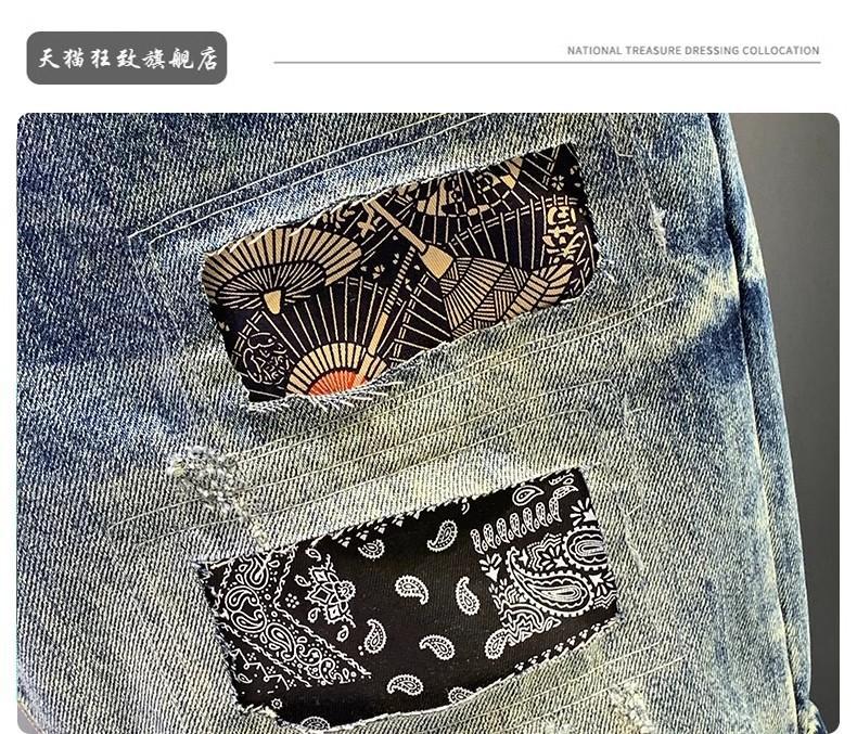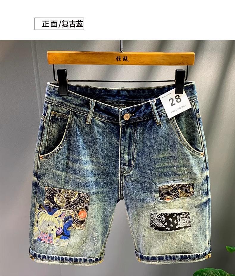 하이 스트리트 트렌디 브랜드 레트로 데님 반바지 여름 뉴 루즈 할란 남자의 독특한 트렌디 찢어진 천 바지스토어 가기