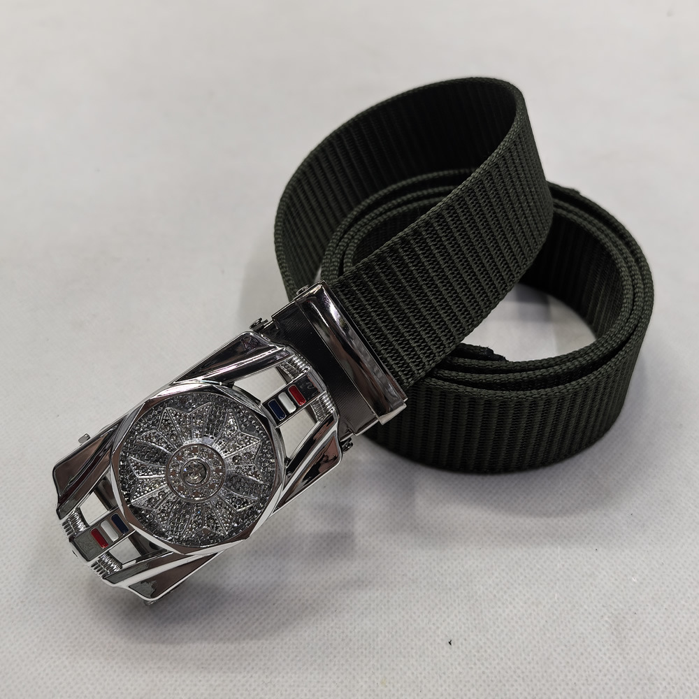 남성 캐주얼 나일론 자동 벨트 패션 성격 회전 버클 벨트 야외 전술 짠 캔버스 바지 벨트