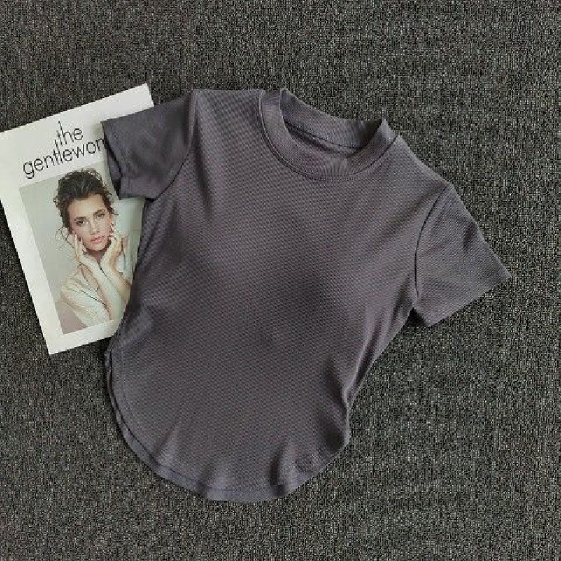 가슴 패드 짧은 소매 여성 러닝 땀 위킹 피트니스 탑 퀵 드라이 핏 슬리밍 레저 수분 흡수 스포츠 T스토어 가기
