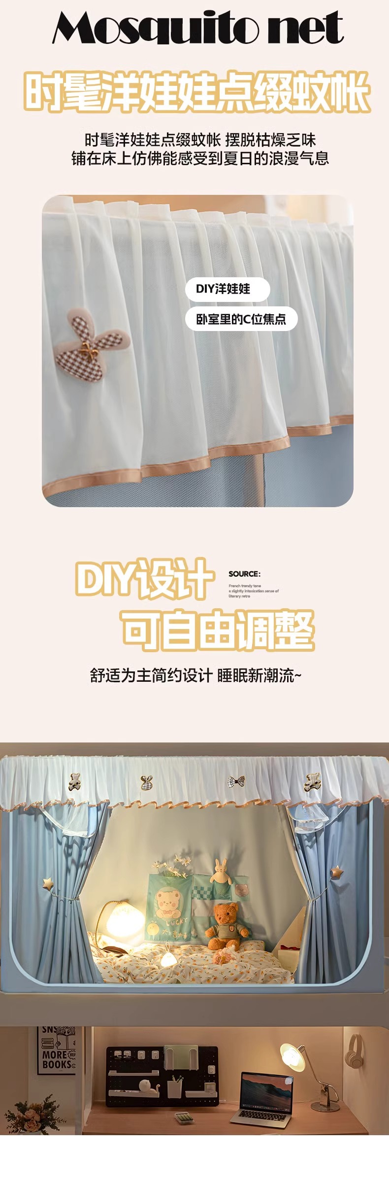 모기장 상부 이층 올인 클루 인 원피스 침대 커튼이있는 대학생 기숙사 완전히 밀폐 된 강한 음영 침실 상부 및 하부 이층 유니버설