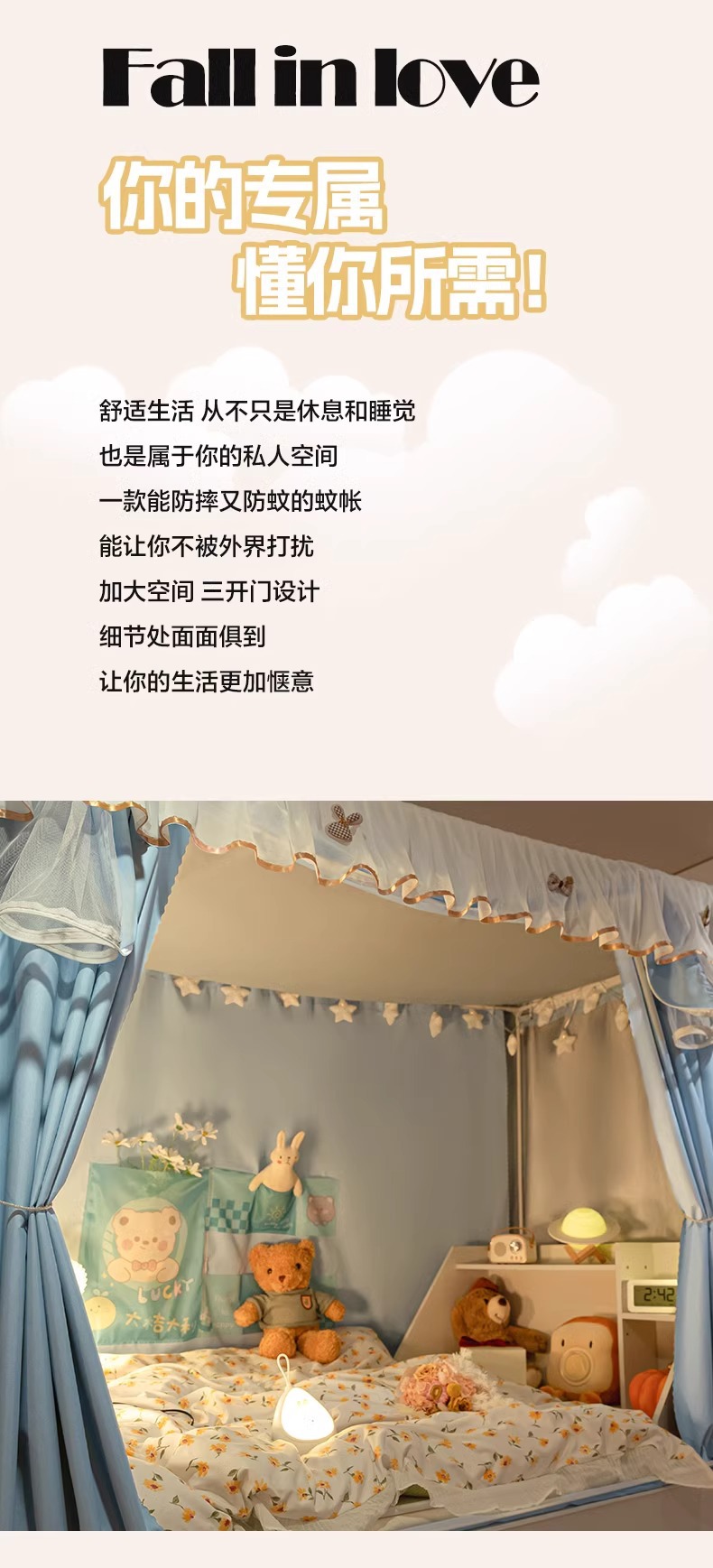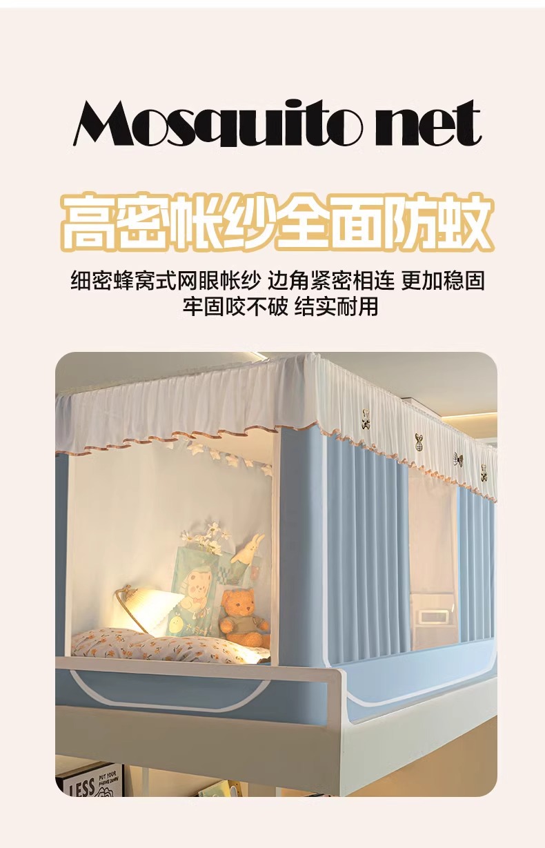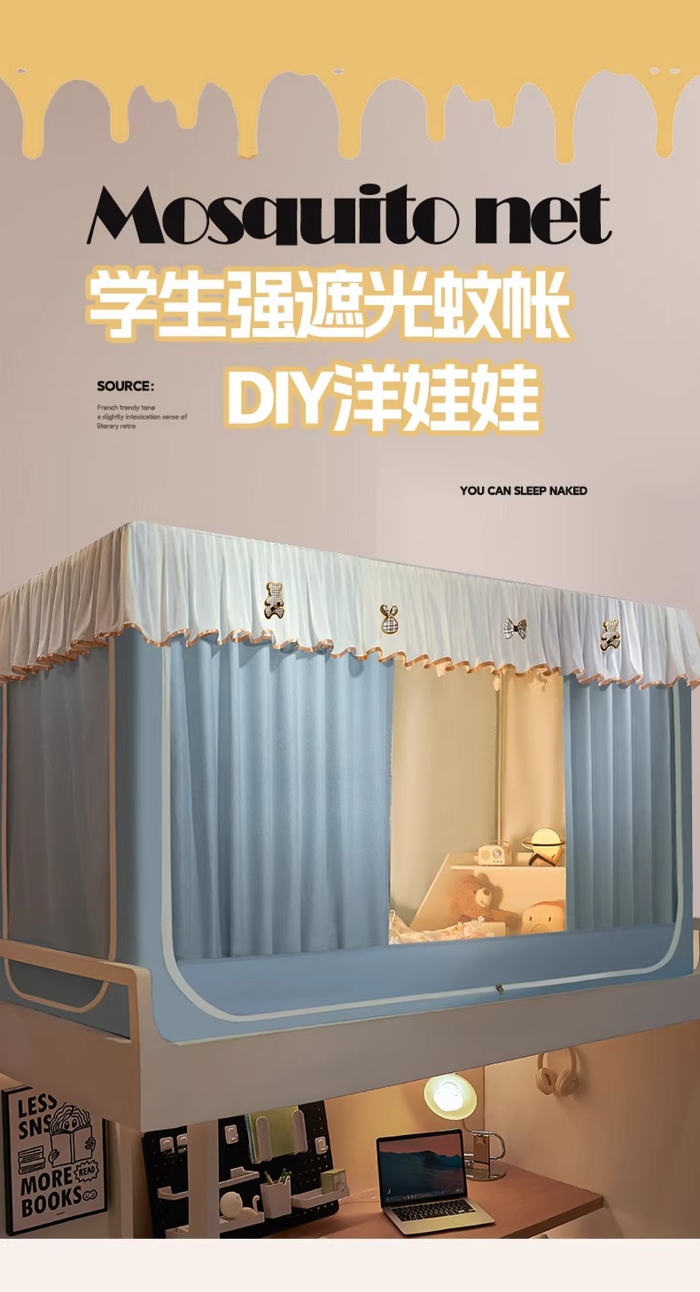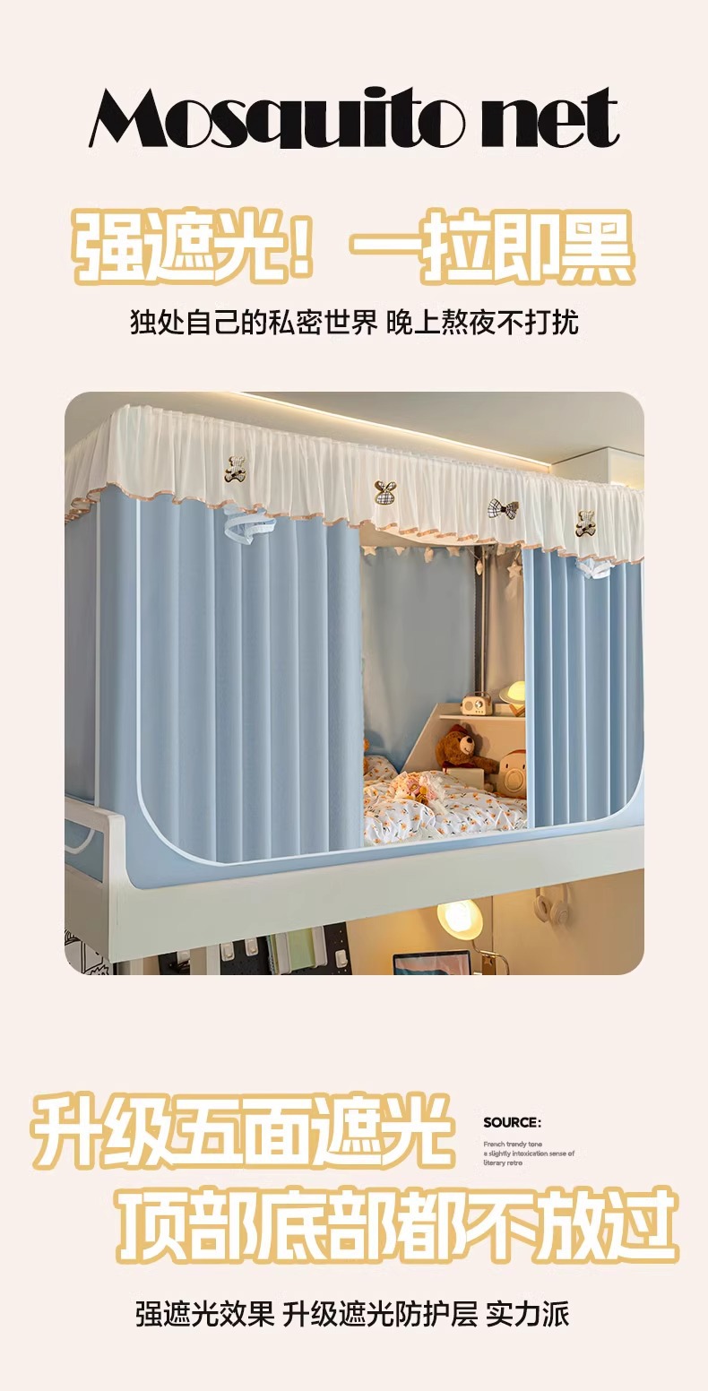 모기장 상부 이층 올인 클루 인 원피스 침대 커튼이있는 대학생 기숙사 완전히 밀폐 된 강한 음영 침실 상부 및 하부 이층 유니버설스토어 가기