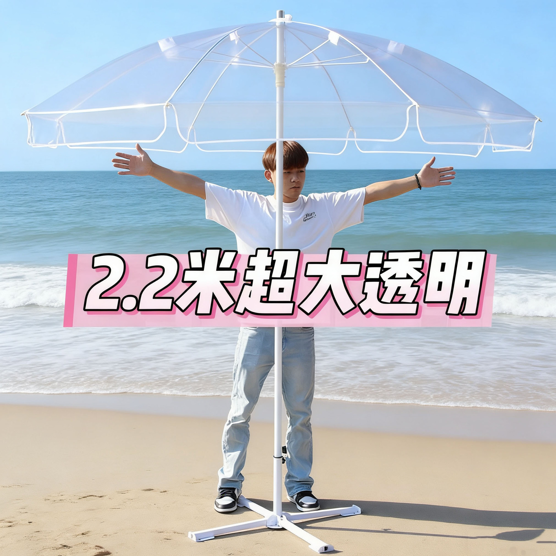 도매 야외 대형 투명 우산 두꺼운 PVC 마구간 우산 해변 낚시 정원 레저 파티오 우산스토어 가기