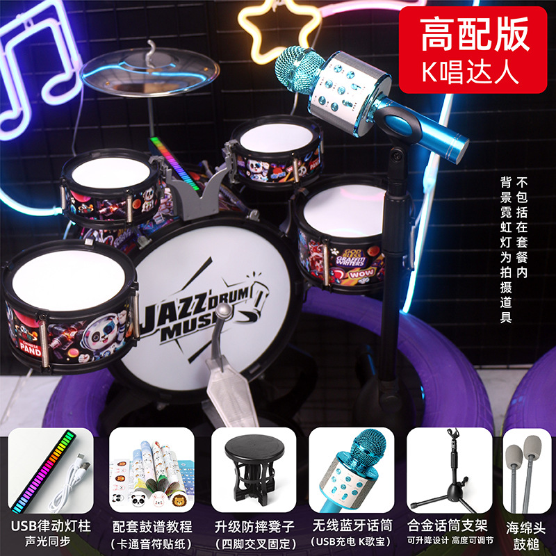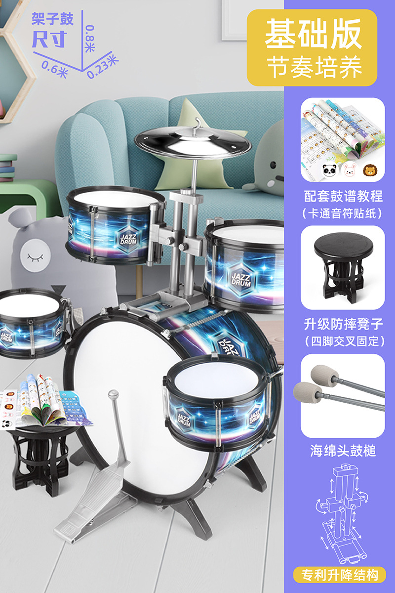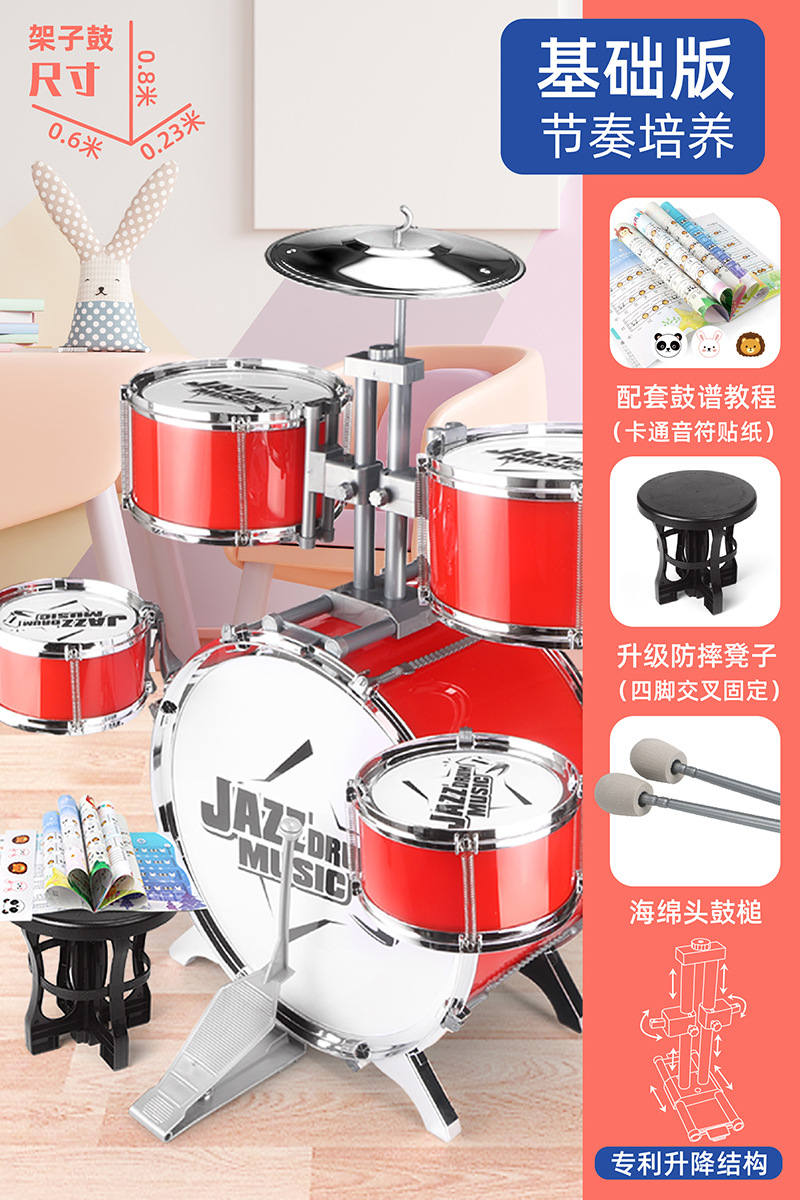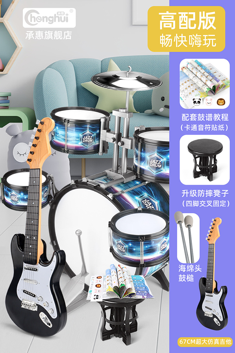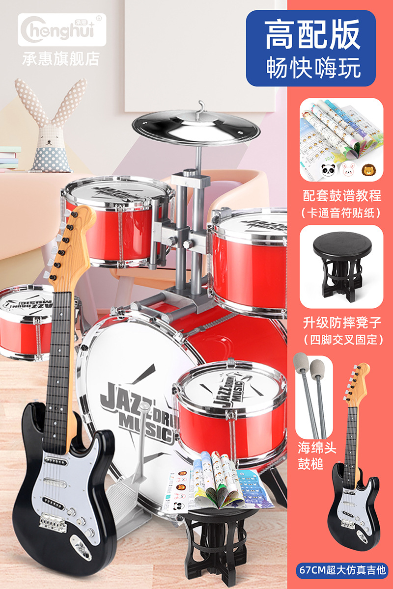 청후이 드럼 어린이 장난감 초보자 악기 히트 홈 연습 3-6 세 아기 재즈 드럼 보이 1