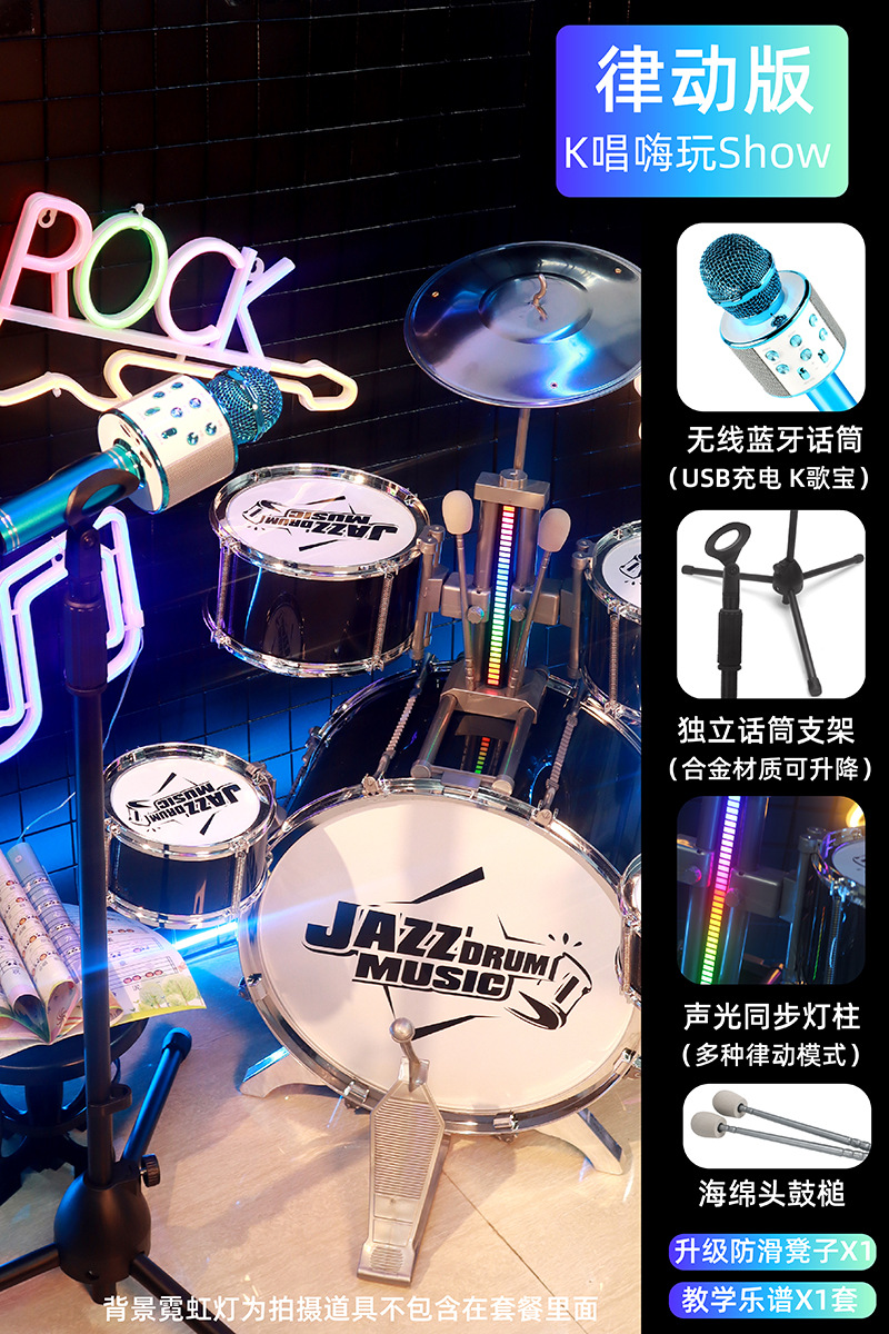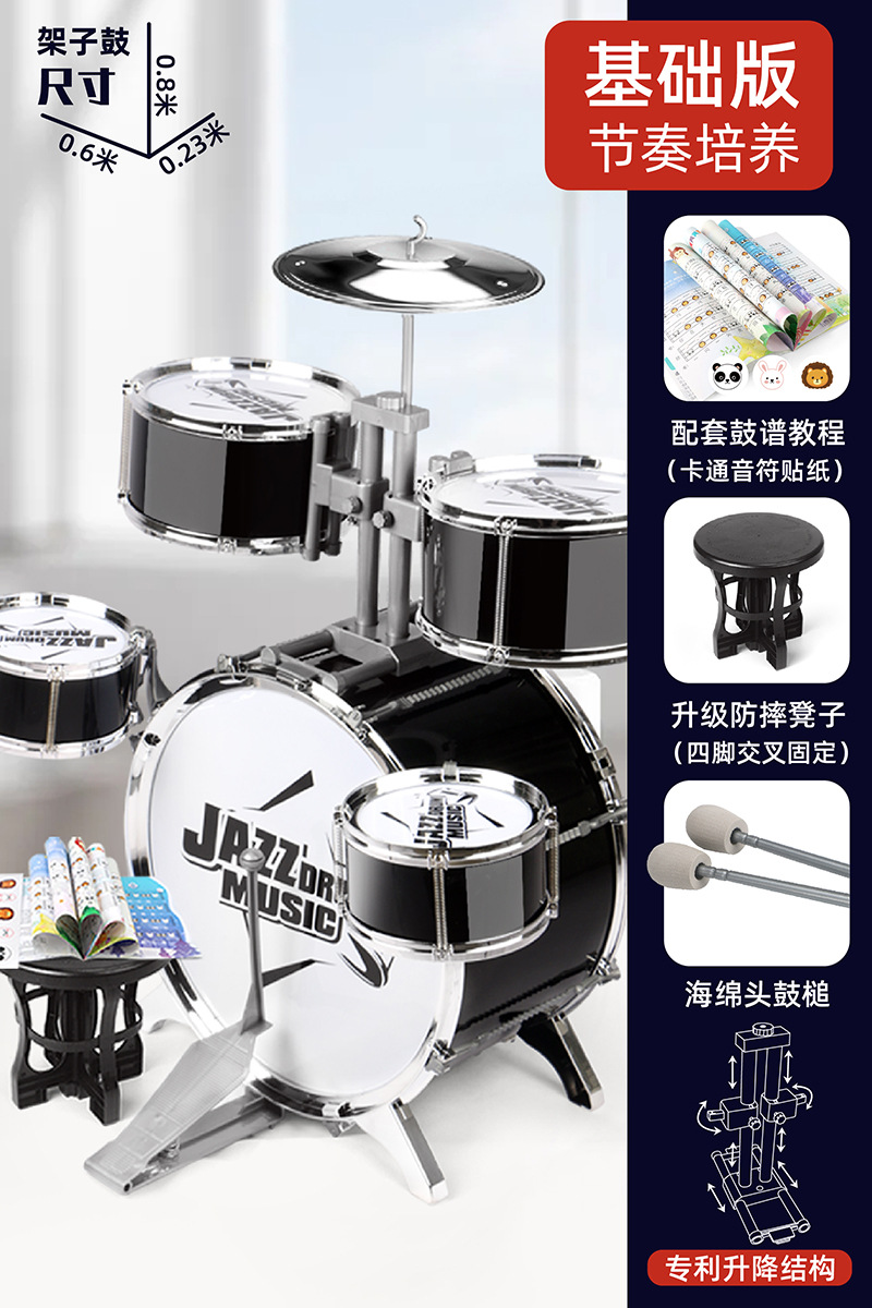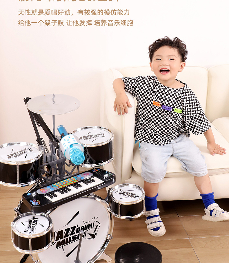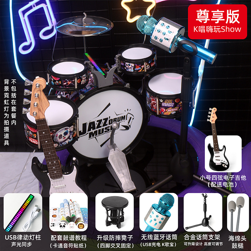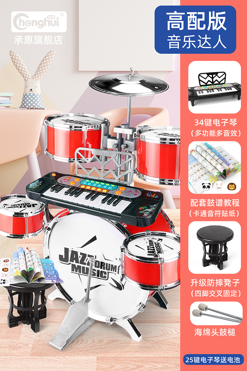 청후이 드럼 어린이 장난감 초보자 악기 히트 홈 연습 3-6 세 아기 재즈 드럼 보이 1