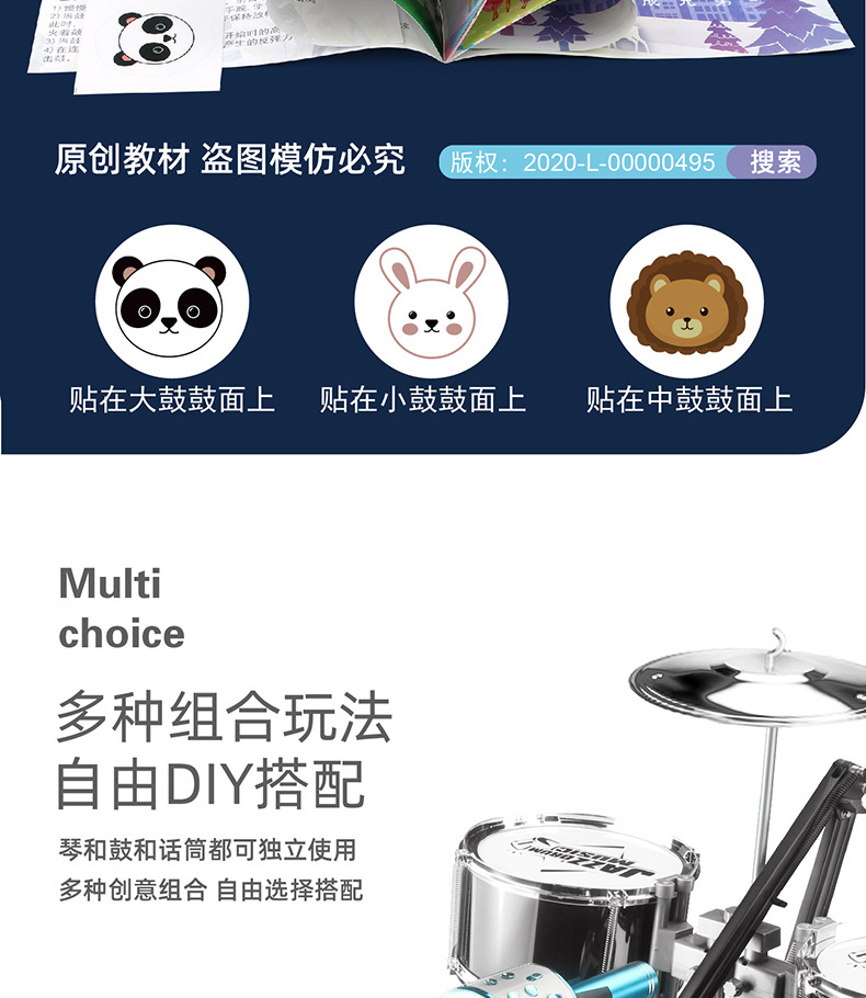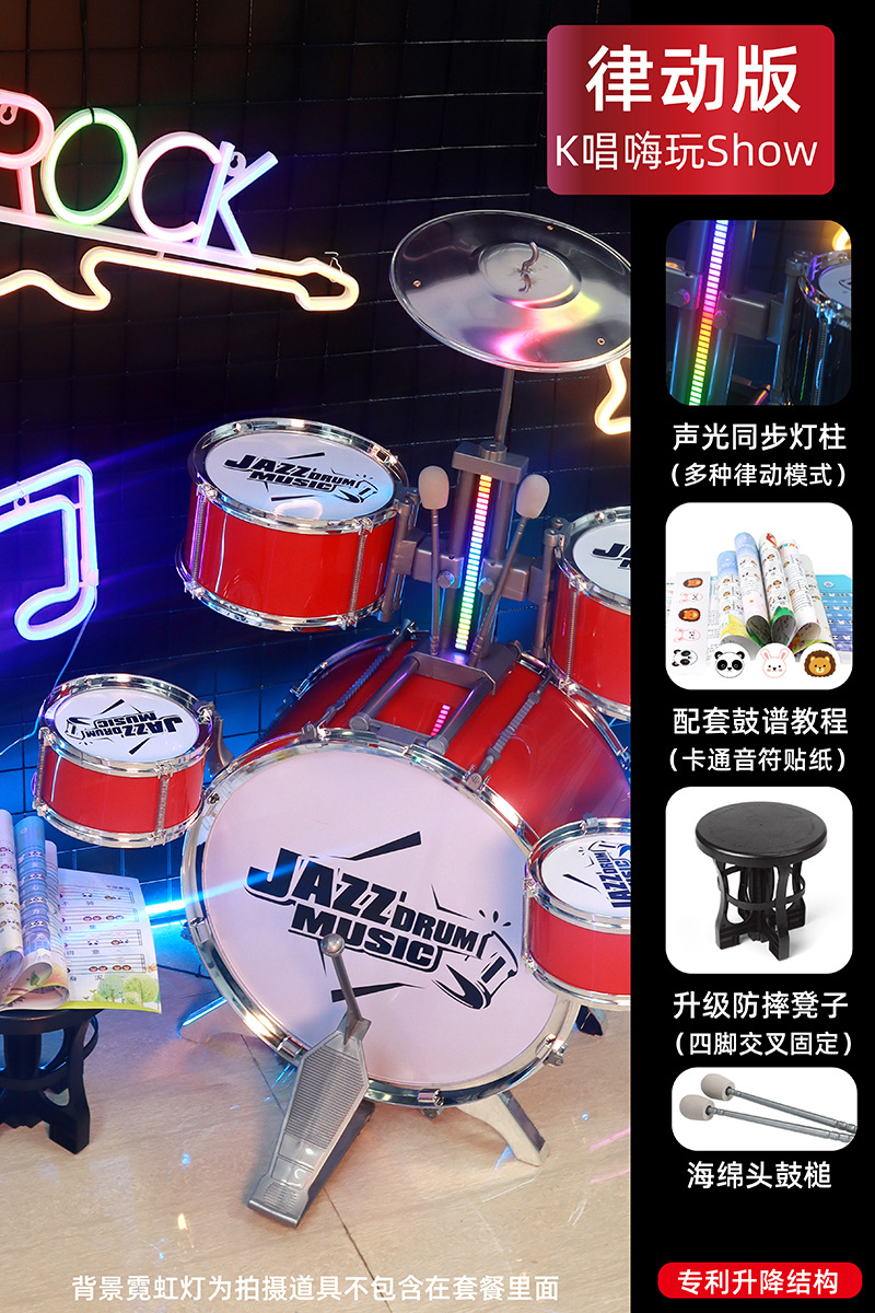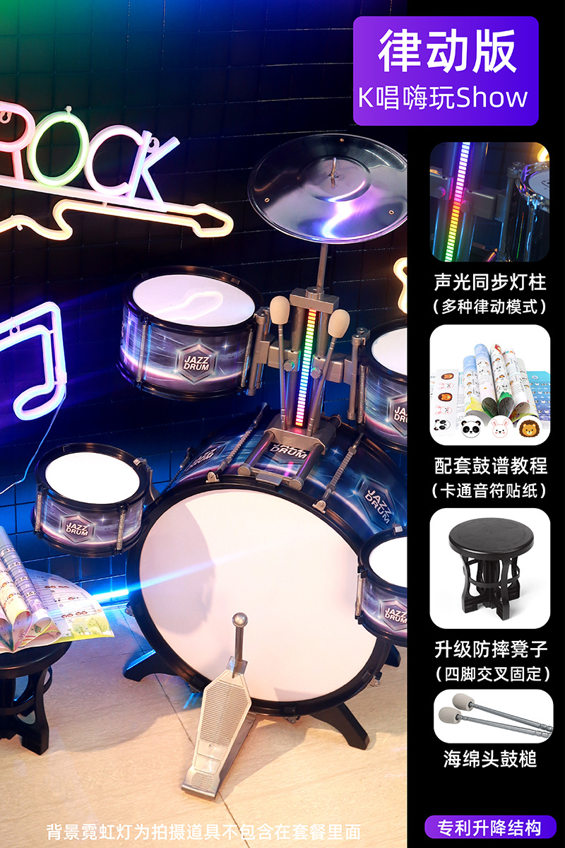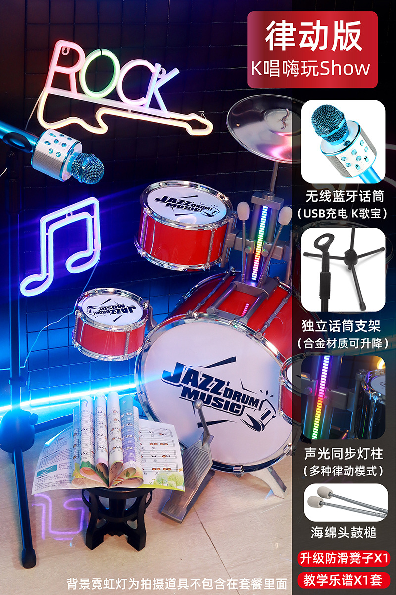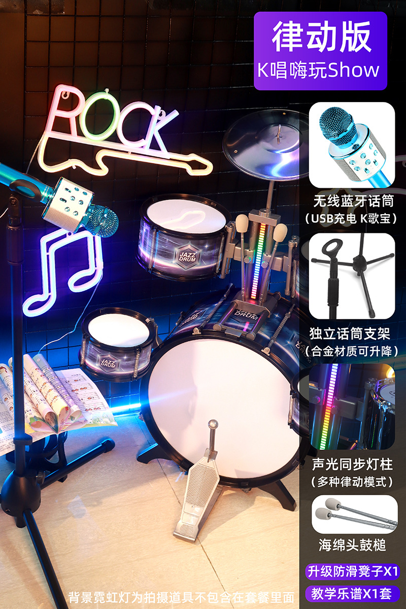 청후이 드럼 어린이 장난감 초보자 악기 히트 홈 연습 3-6 세 아기 재즈 드럼 보이 1
