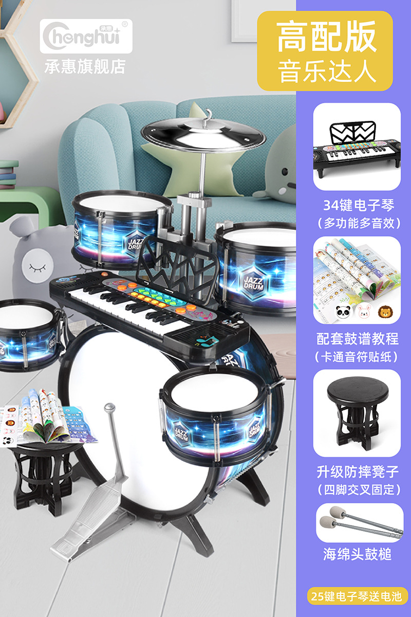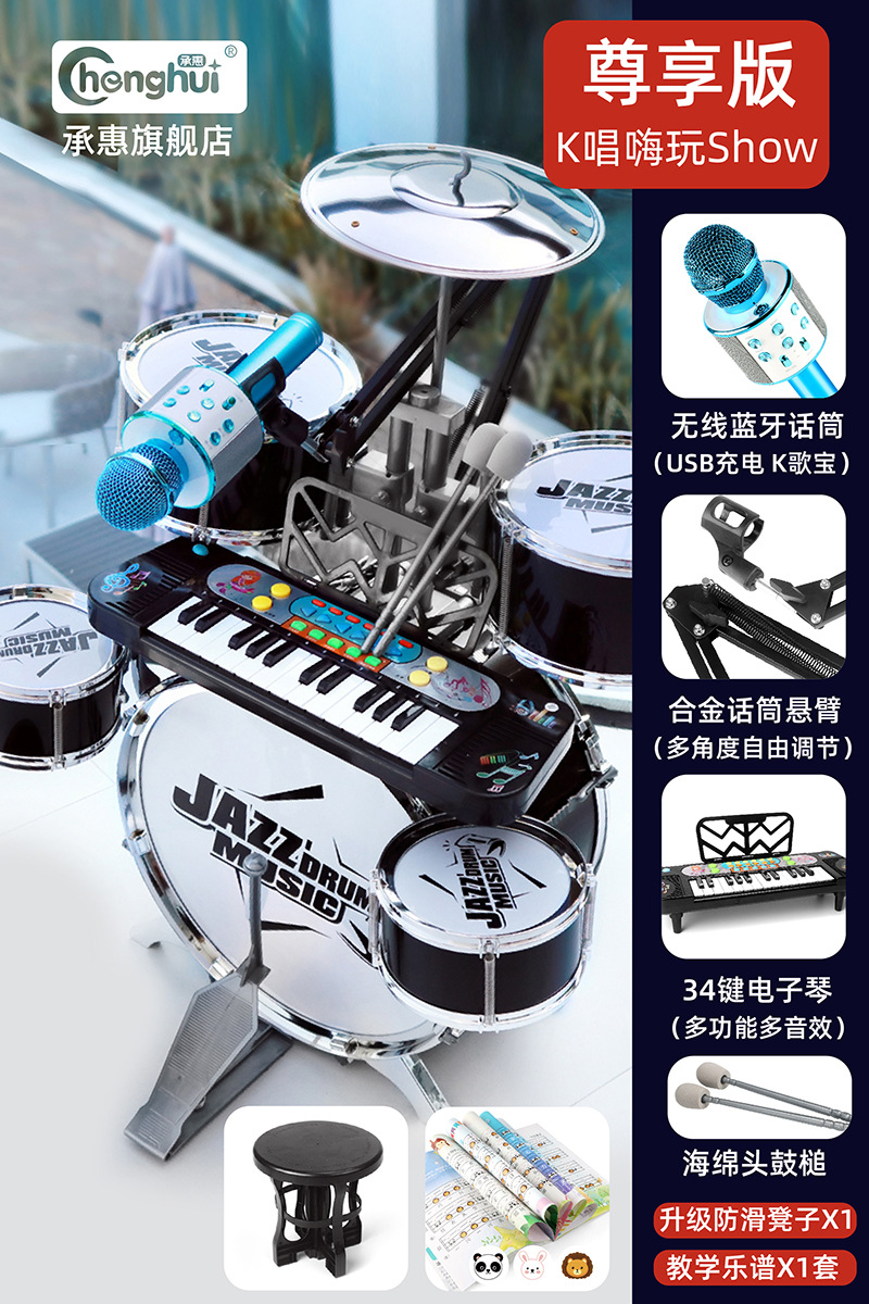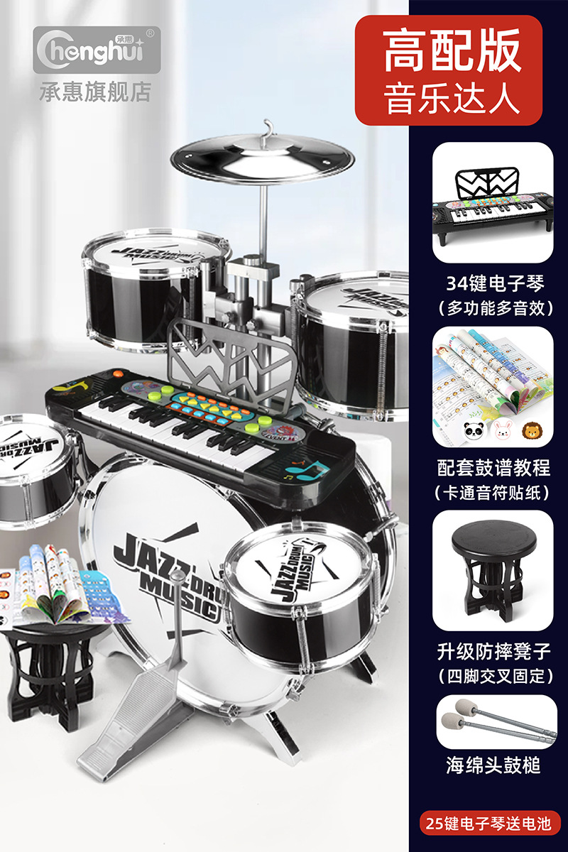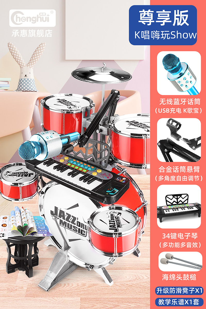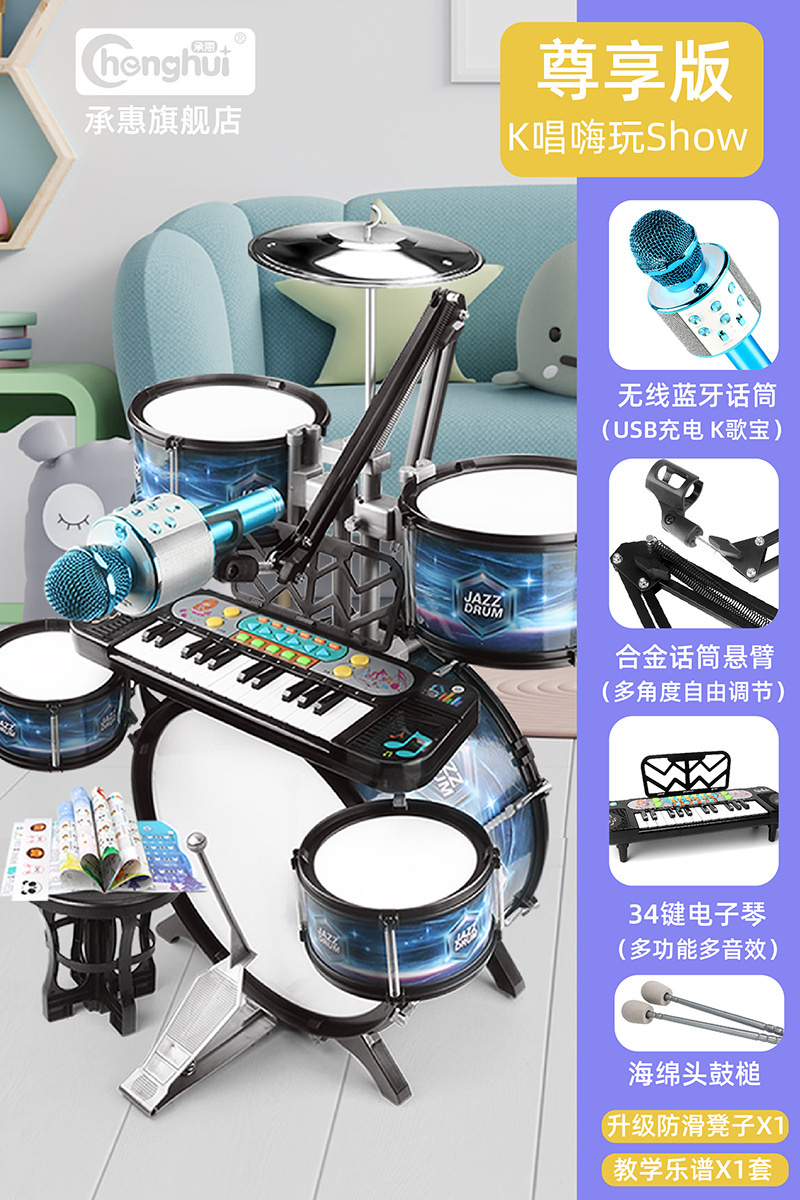 청후이 드럼 어린이 장난감 초보자 악기 히트 홈 연습 3-6 세 아기 재즈 드럼 보이 1스토어 가기