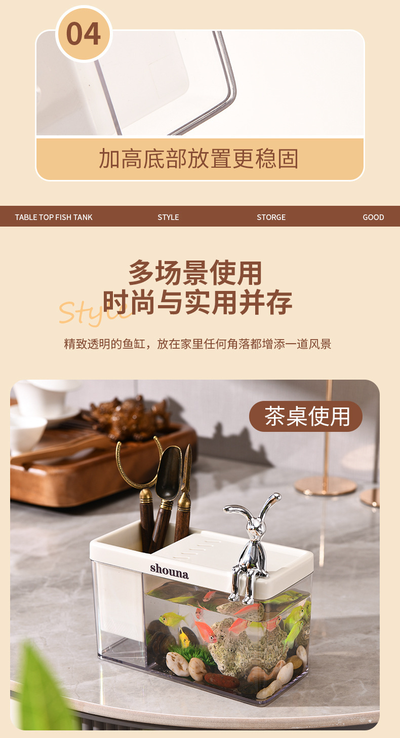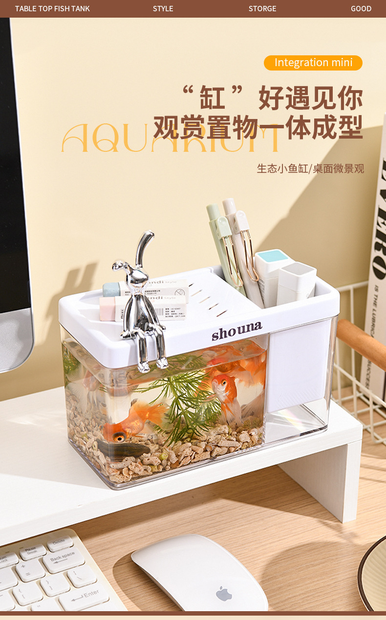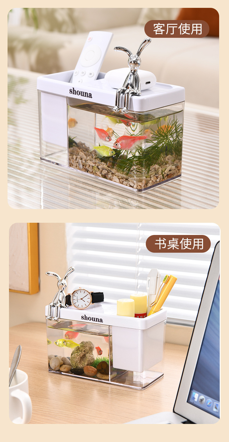 초백색 유리 물고기 탱크 거실 작은 싸우는 물고기 금붕어 탱크 홈 데스크탑 생태 거북이 탱크 새로운 물고기 수족관