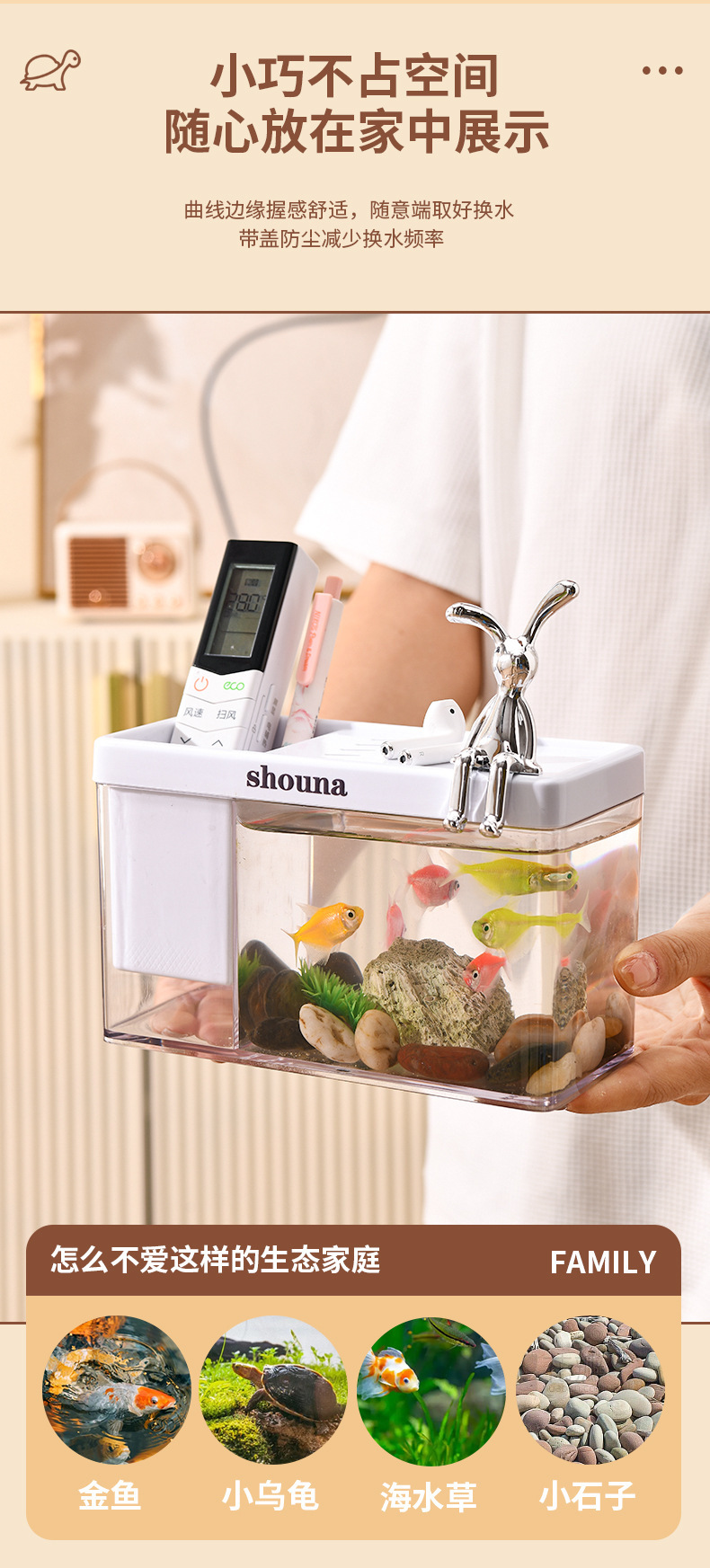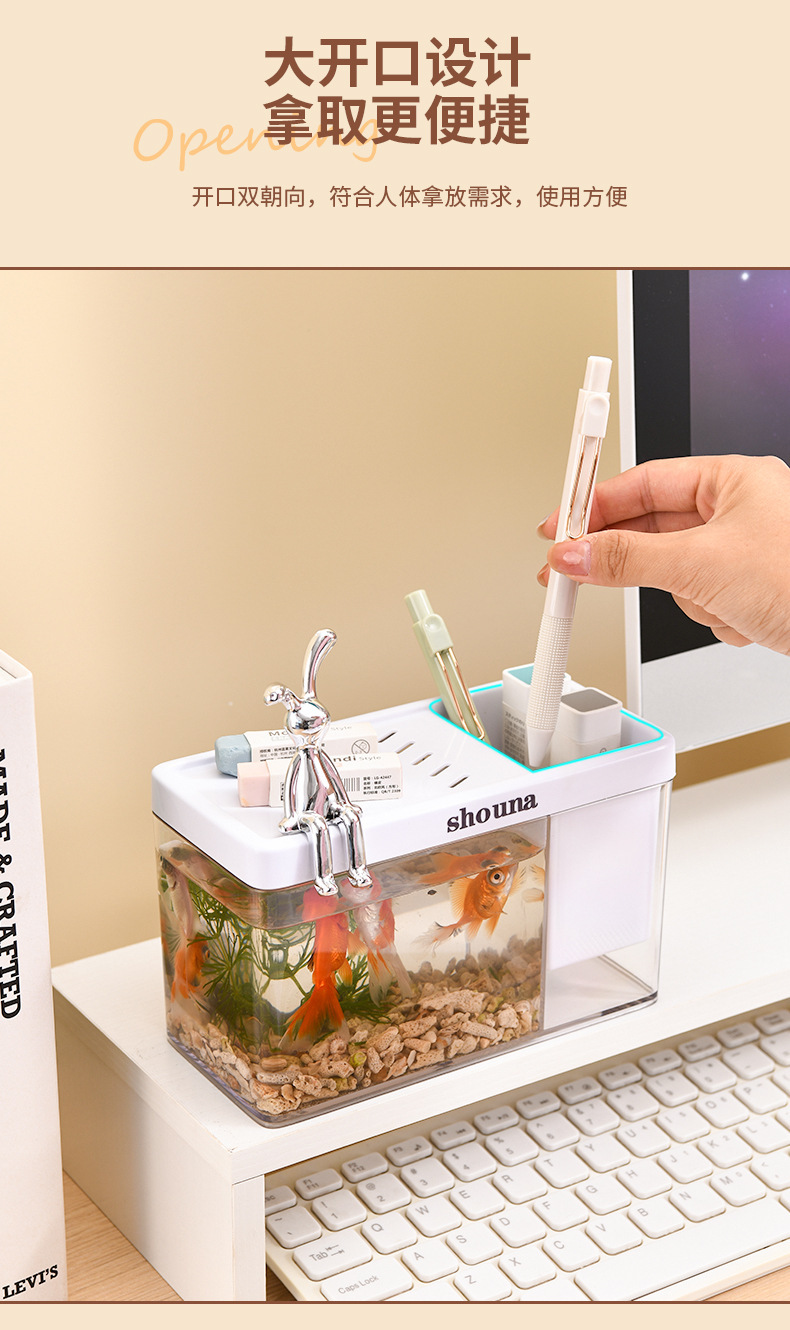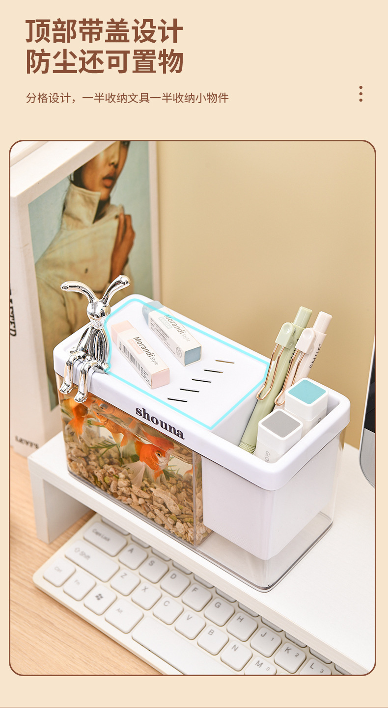 초백색 유리 물고기 탱크 거실 작은 싸우는 물고기 금붕어 탱크 홈 데스크탑 생태 거북이 탱크 새로운 물고기 수족관