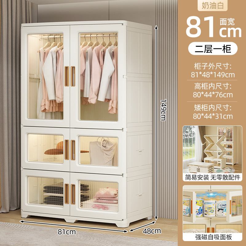 • 크림 화이트(중, 중, 높이) 강화 접이식 대형 옷장 [도르래 포함]