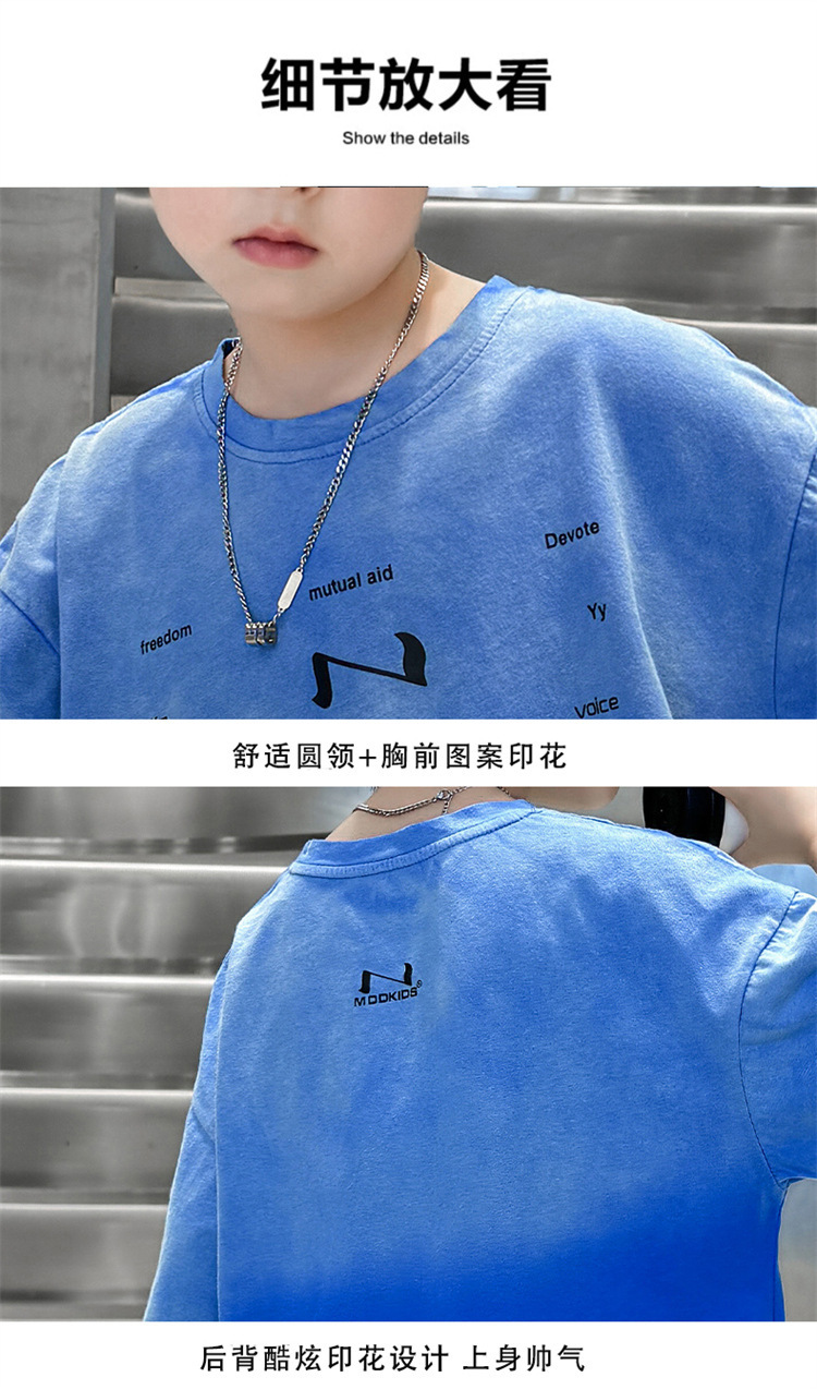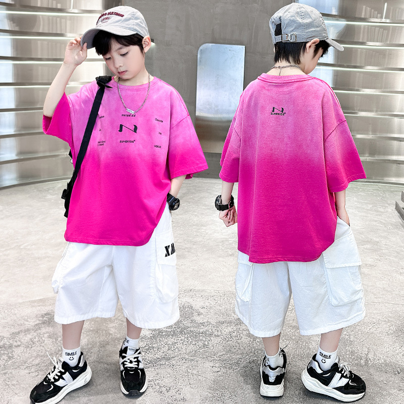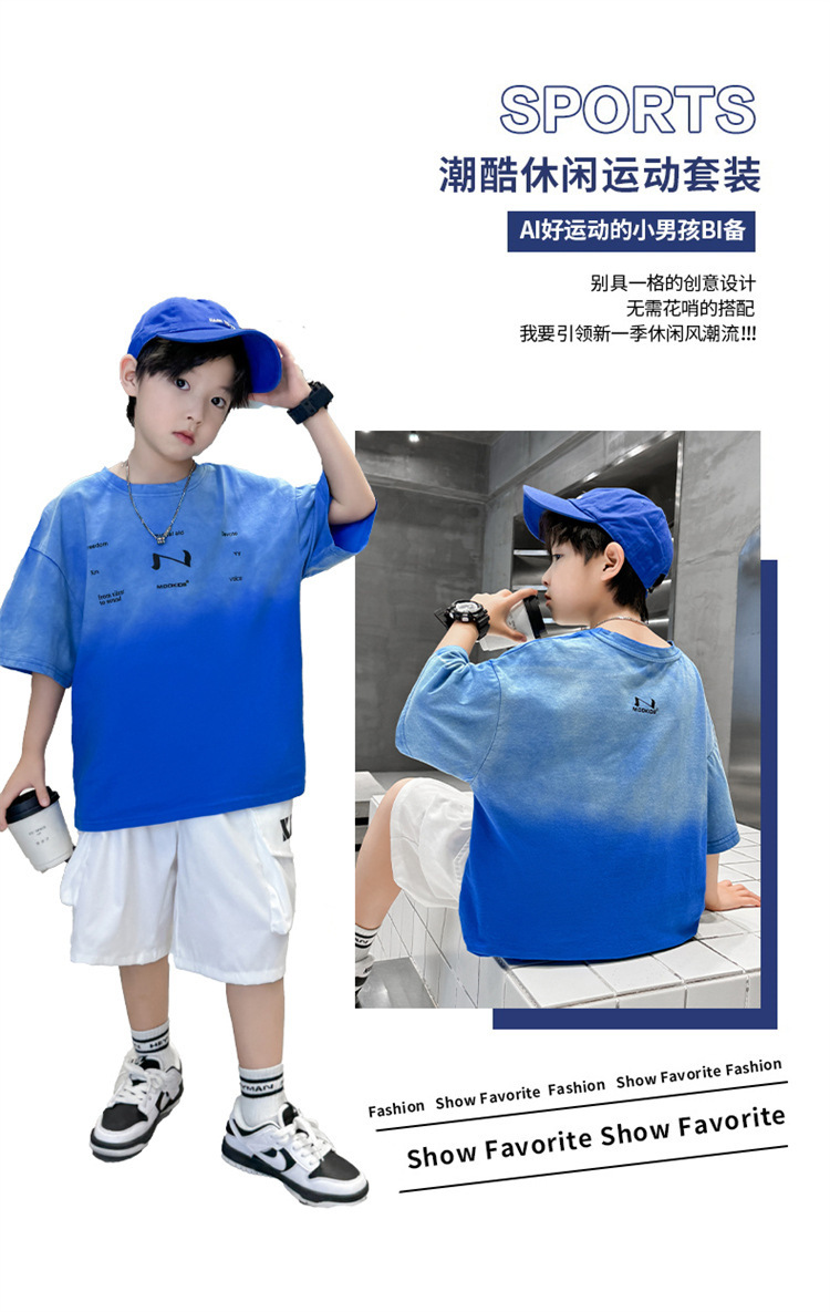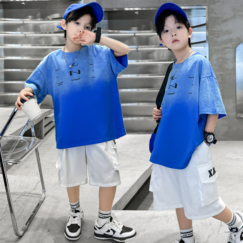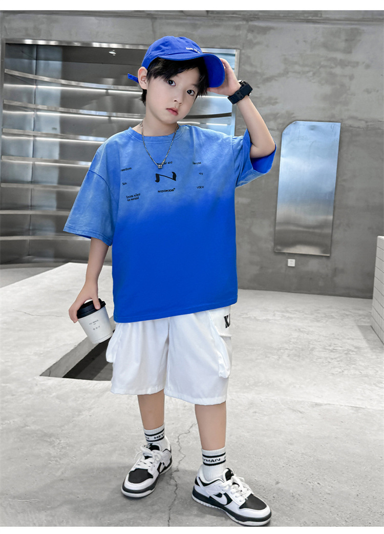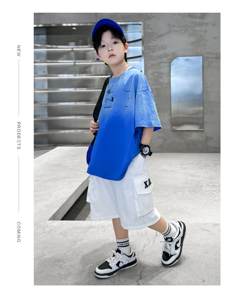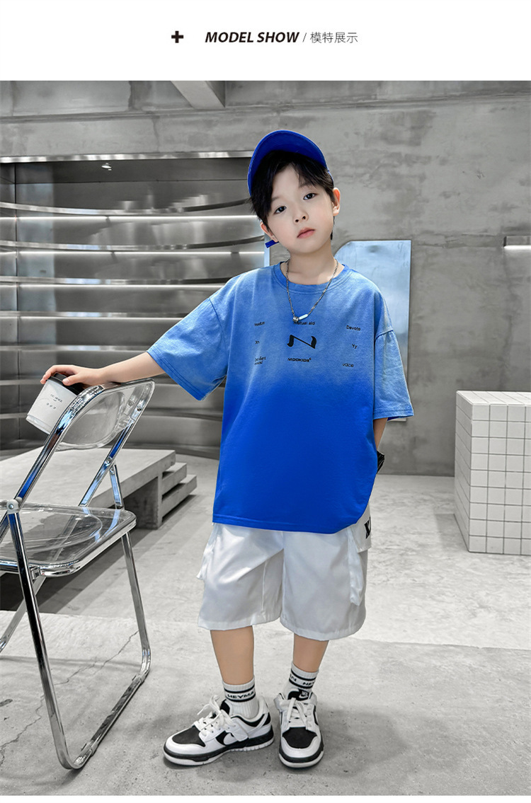 남아 여름 세트 2025 신상 아동용 스타일리쉬 스포츠 캐주얼 레터링 반팔 티셔츠 투피스 세트 8트렌드스토어 가기