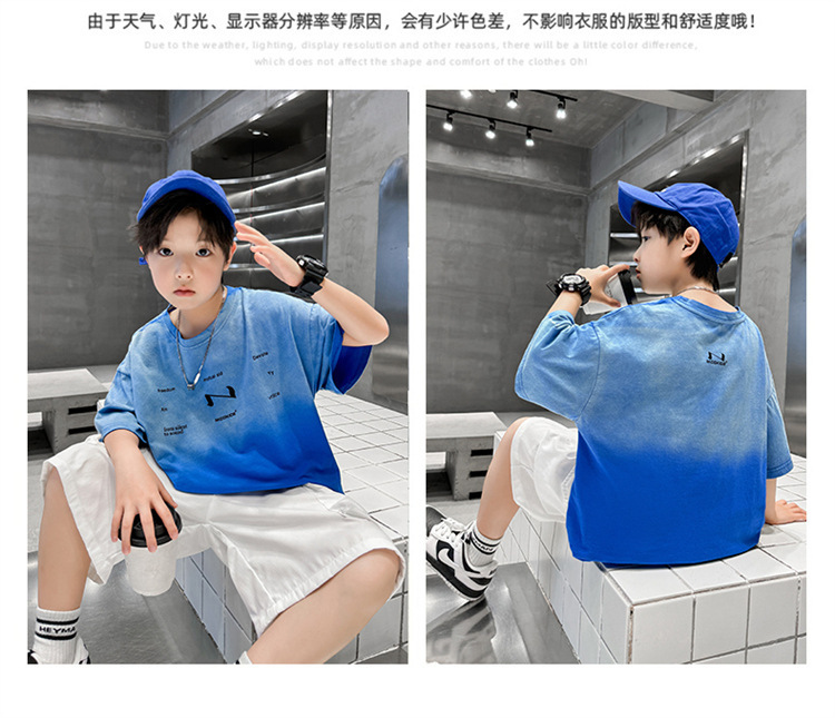 남아 여름 세트 2025 신상 아동용 스타일리쉬 스포츠 캐주얼 레터링 반팔 티셔츠 투피스 세트 8트렌드