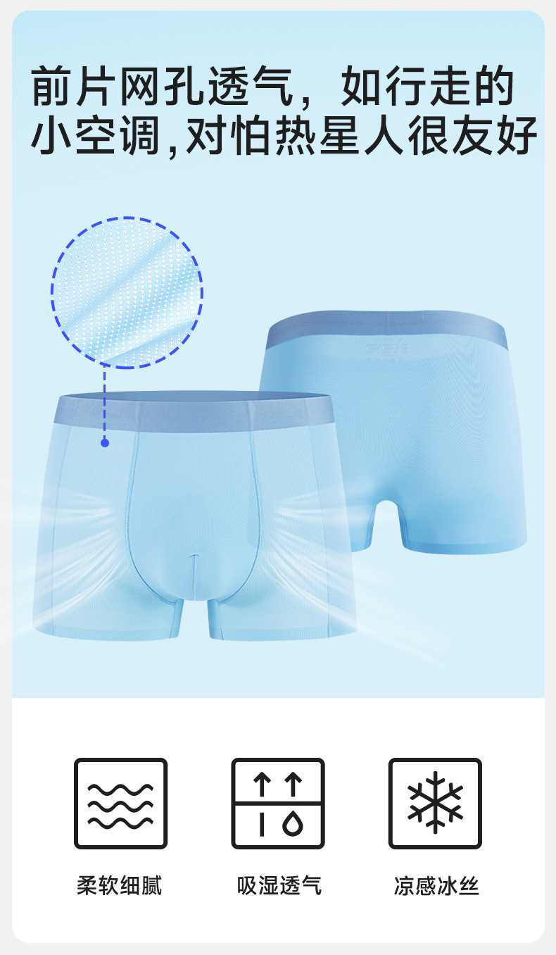 아이스 실크 시원한 남성 속옷 맞춤형 여름 얇은 중간 허리 복서 팬티 편안하고 간단한 단색 남성 복서 팬티스토어 가기