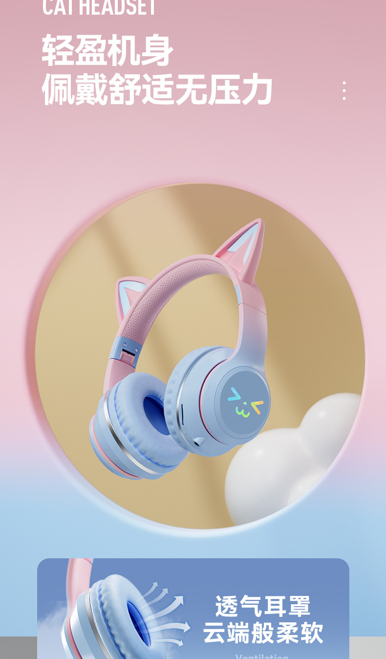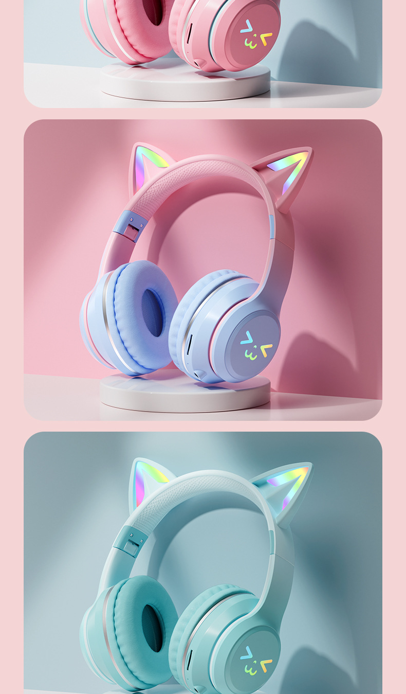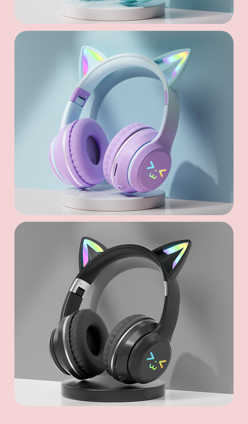 BT612 새로운 그라디언트 고양이 귀 블루투스 헤드셋 무선 헤드셋 음악 인터넷 축하 접이식 헤드셋