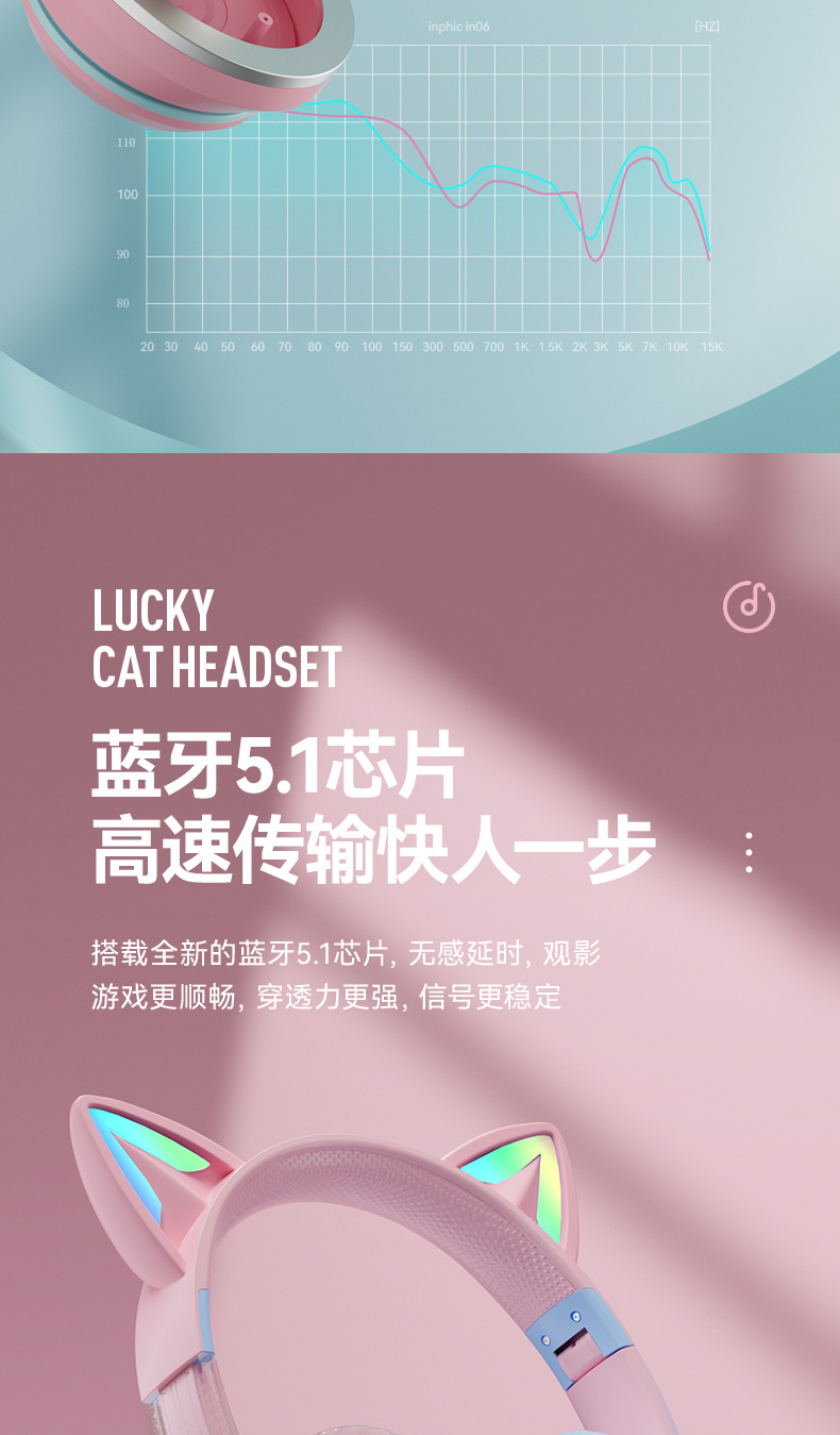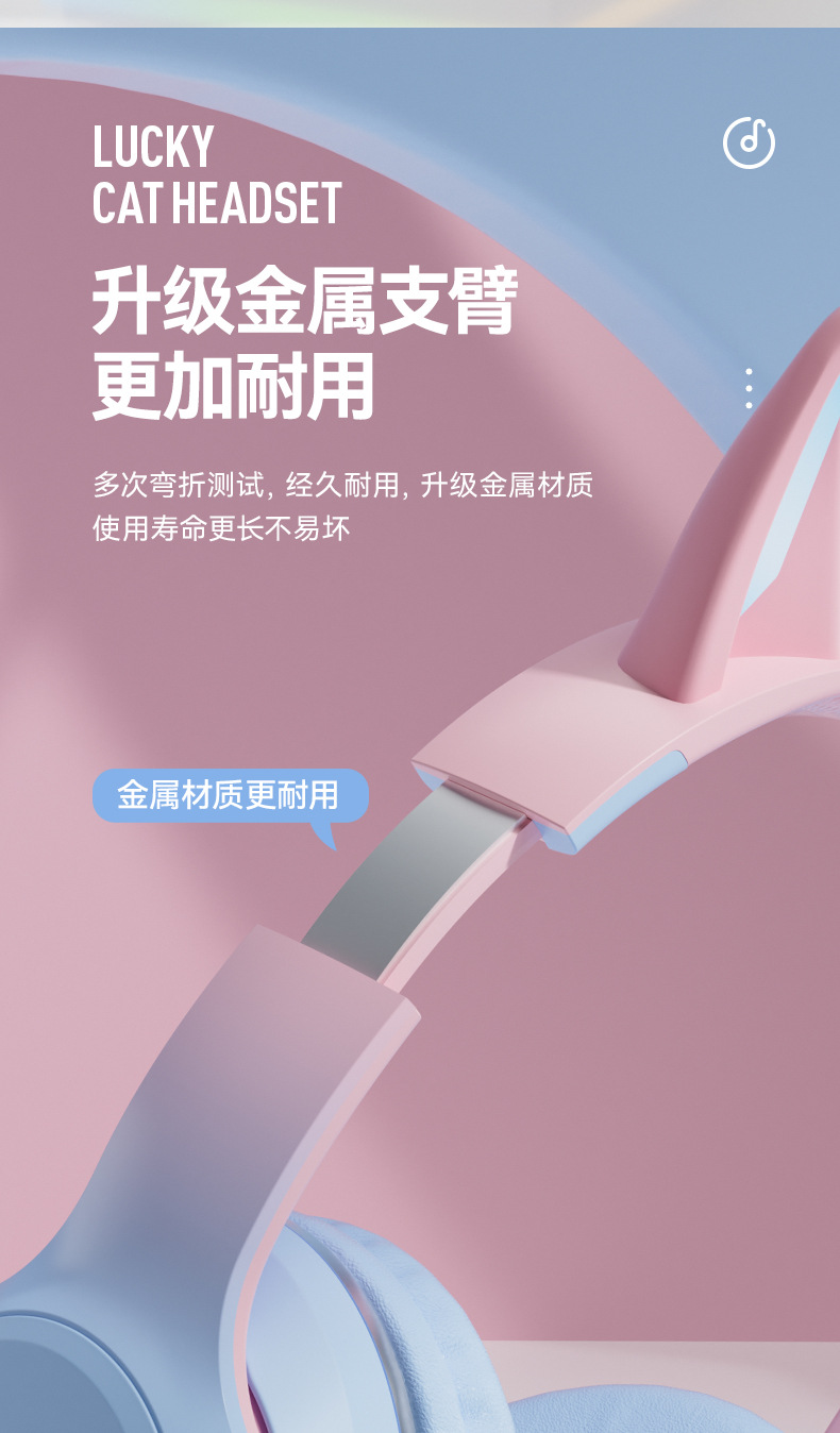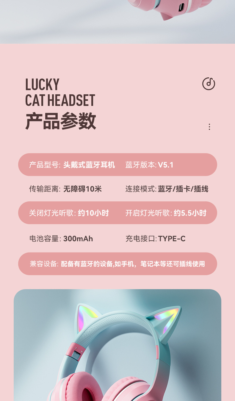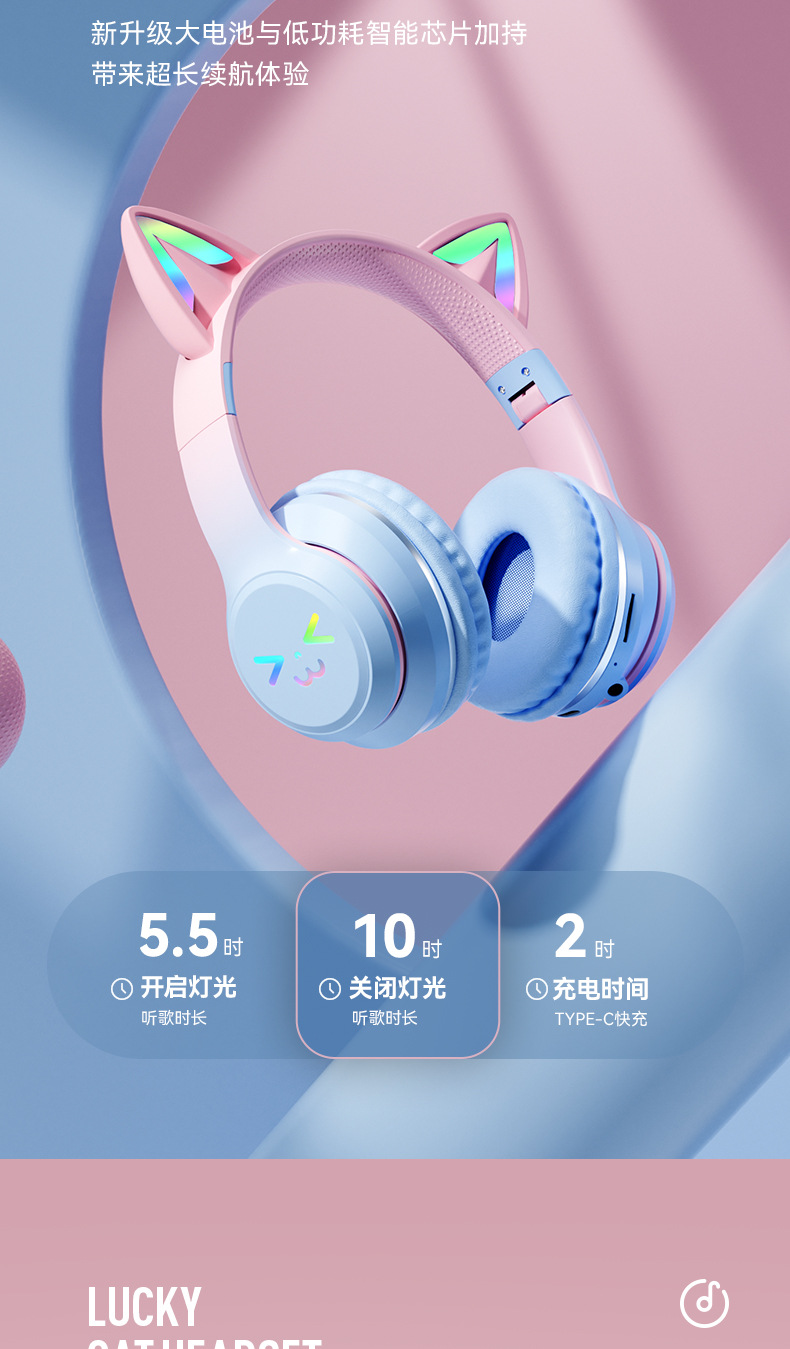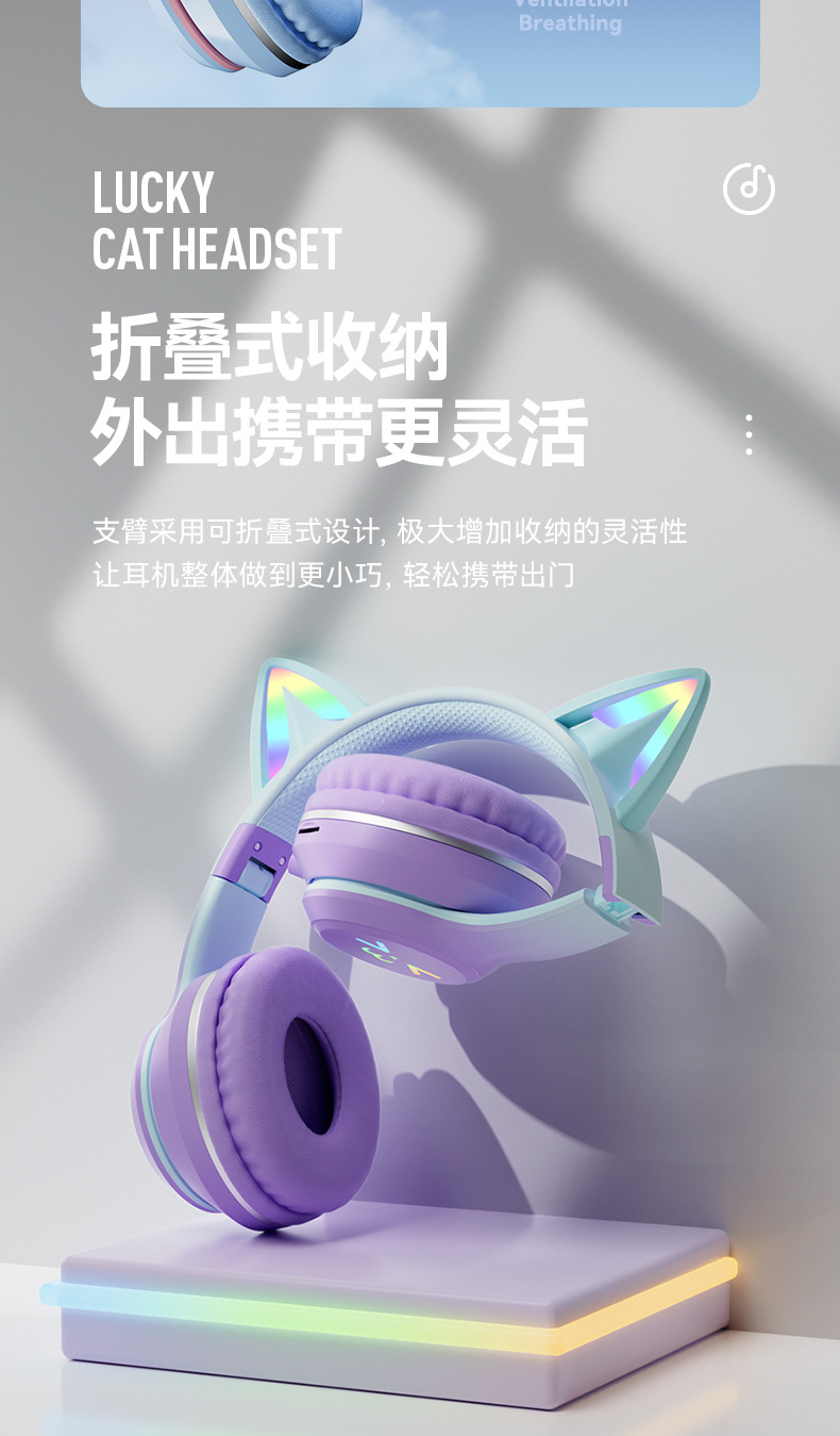 渐变色、猫耳发光、硅胶弓梁、含七国语言说明书