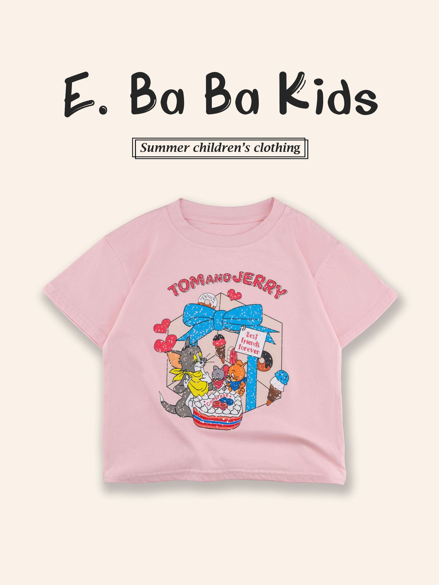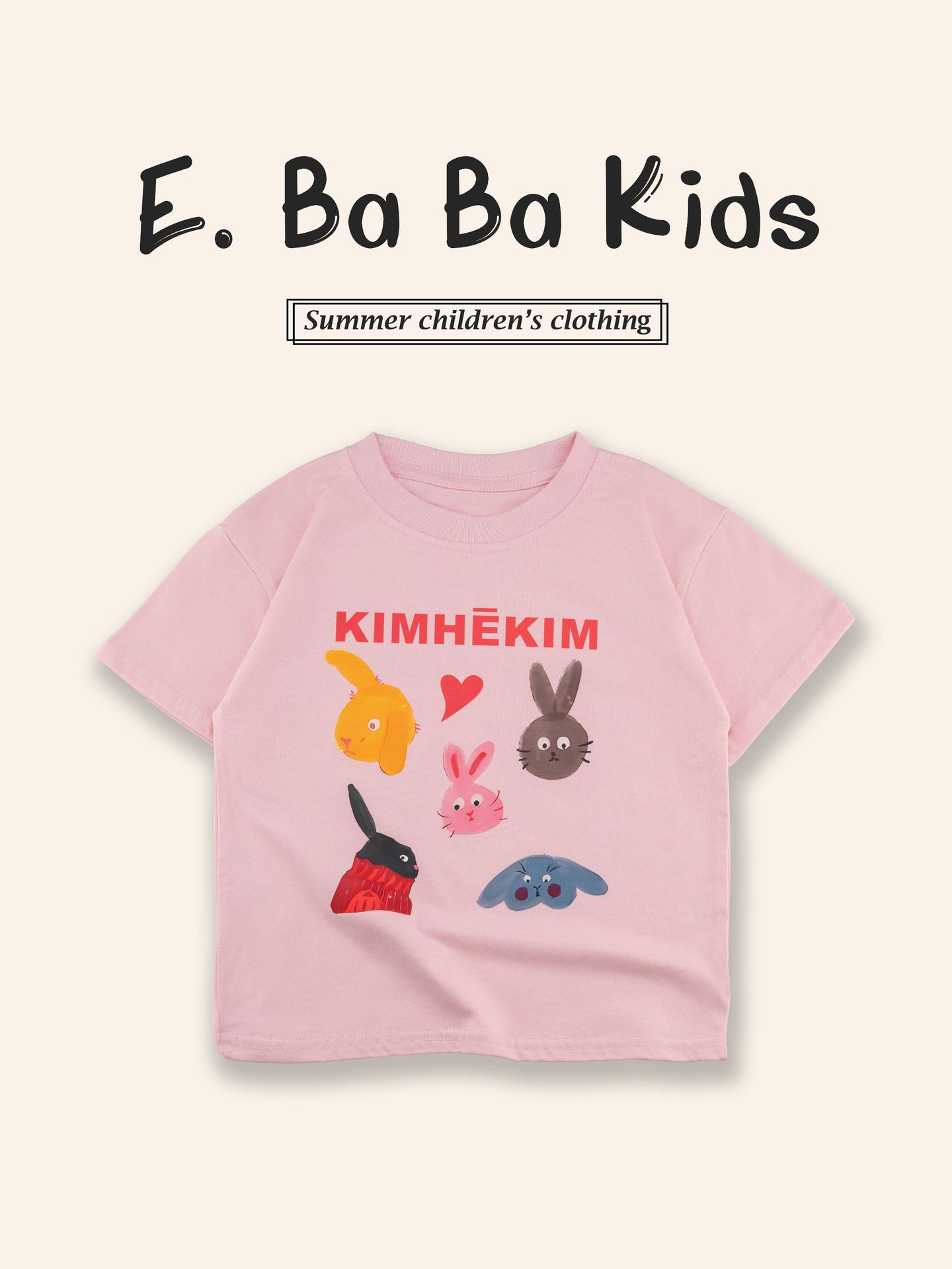 클래스 A 소년 소녀 동물 인쇄 티셔츠 여름 한국 스타일 만화 팬더 덤보 초등학생을위한 어린이 짧은 소매 탑