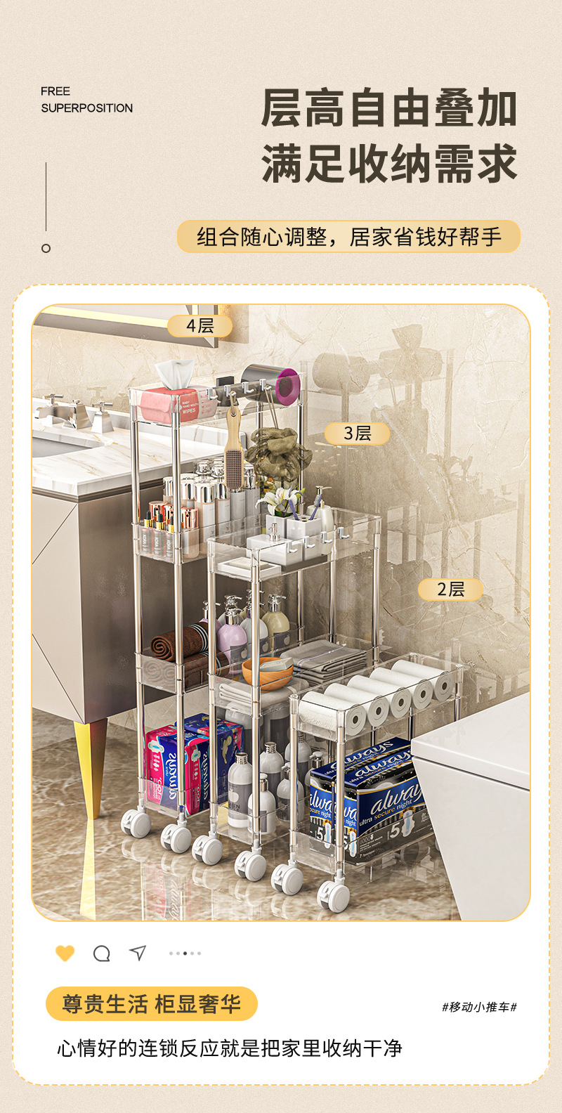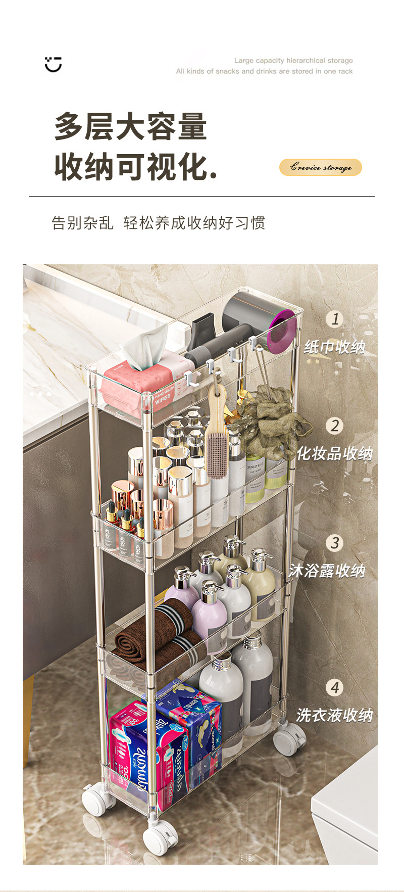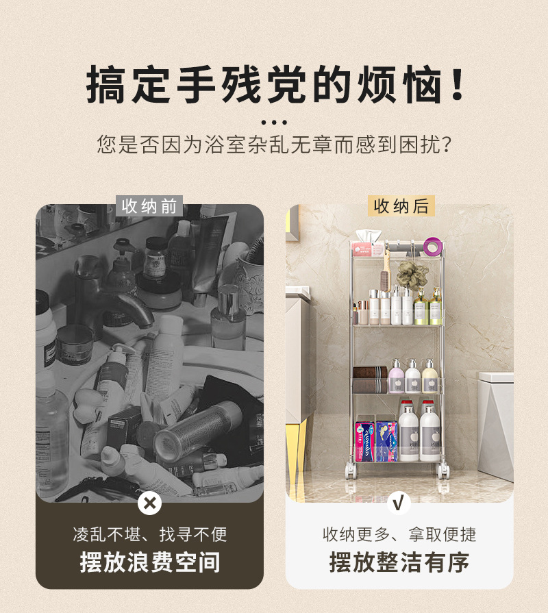 화장실 저장 선반 바닥에 설치된 가정용 화장실 화장실 모바일 다층 간격 저장 욕실 보관 선반스토어 가기