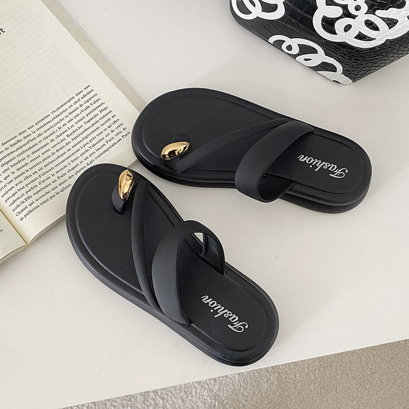 두꺼운 밑창 플립 플롭 여성용 트렌디 한 2024 년 새로운 여름 야외 캐주얼 올 매치 비치 샌들스토어 가기