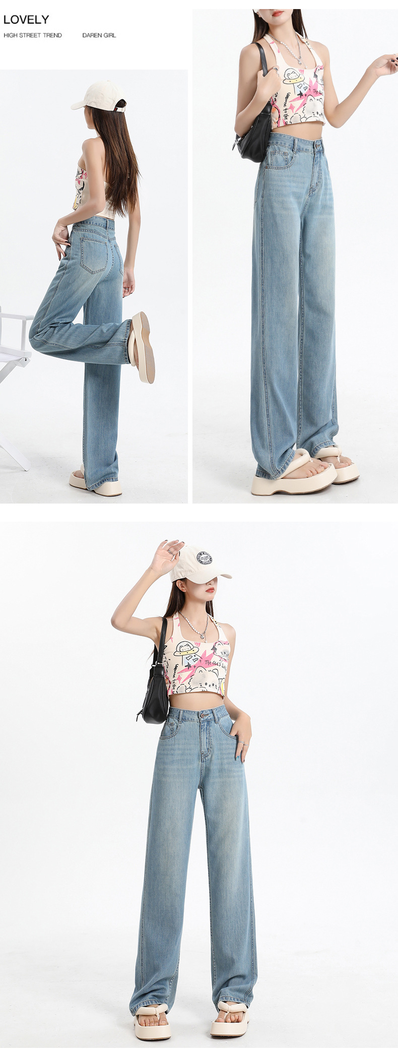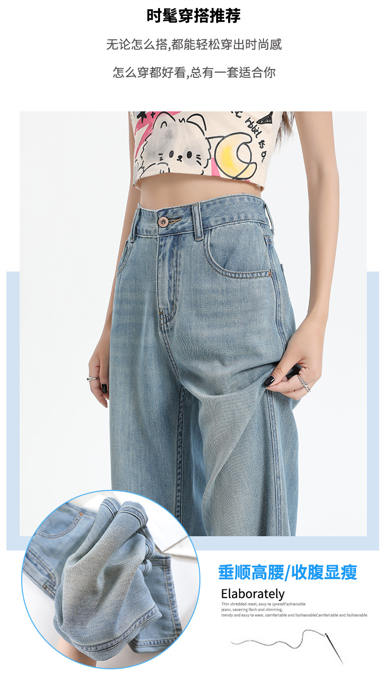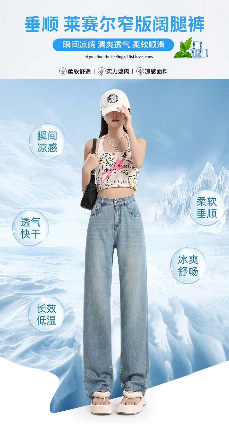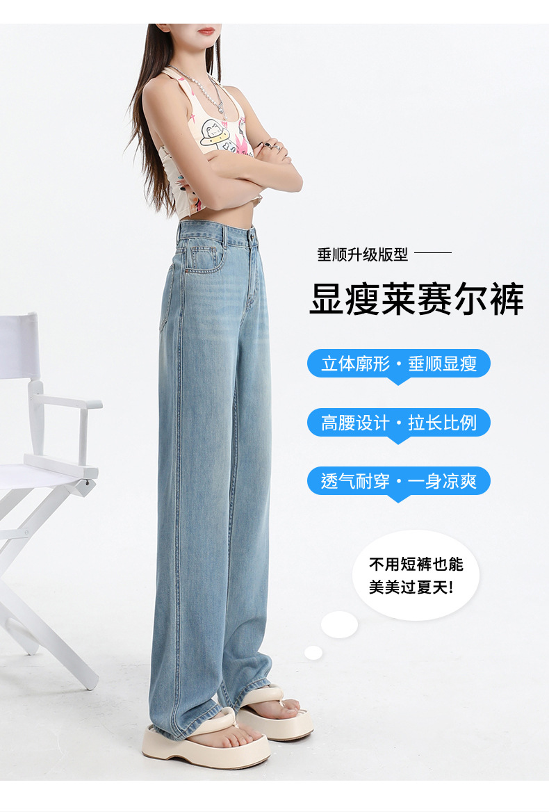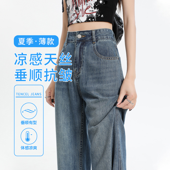 잘린 스트레이트 텐셀 청바지 여성용 여름 얇은 좁은 느슨한 넓은 다리 소금 스타일 길거리 튀김 바지스토어 가기