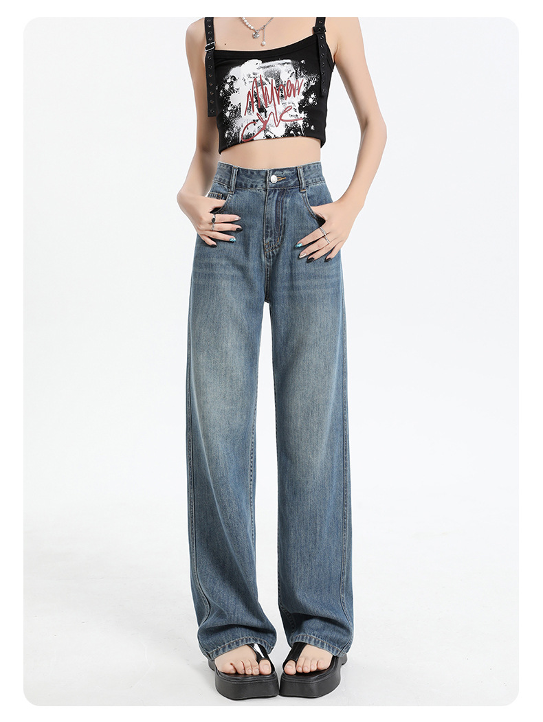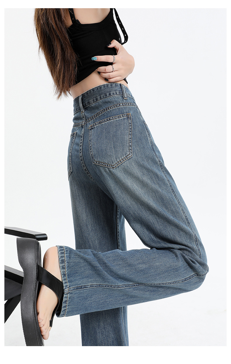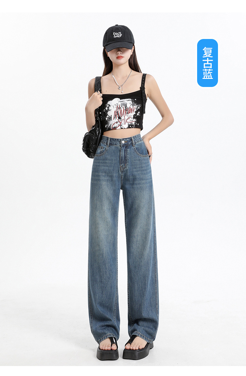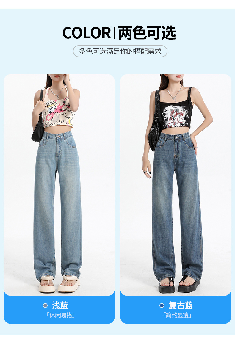 잘린 스트레이트 텐셀 청바지 여성용 여름 얇은 좁은 느슨한 넓은 다리 소금 스타일 길거리 튀김 바지스토어 가기