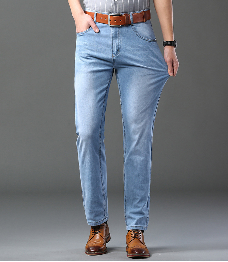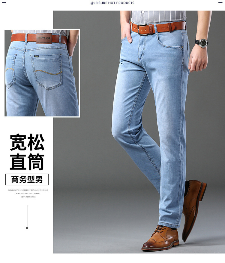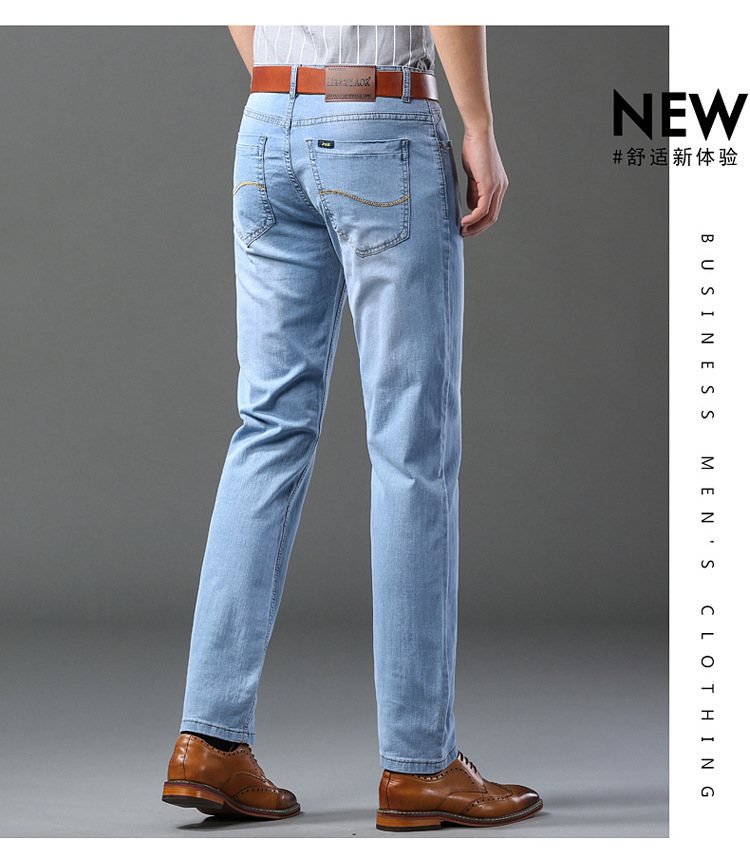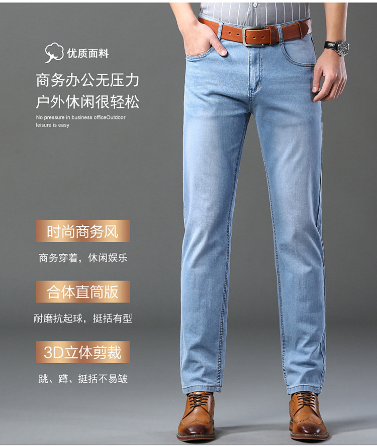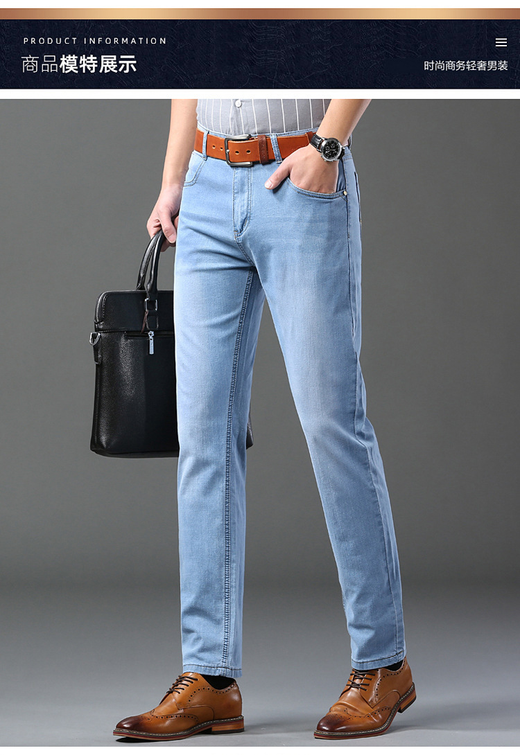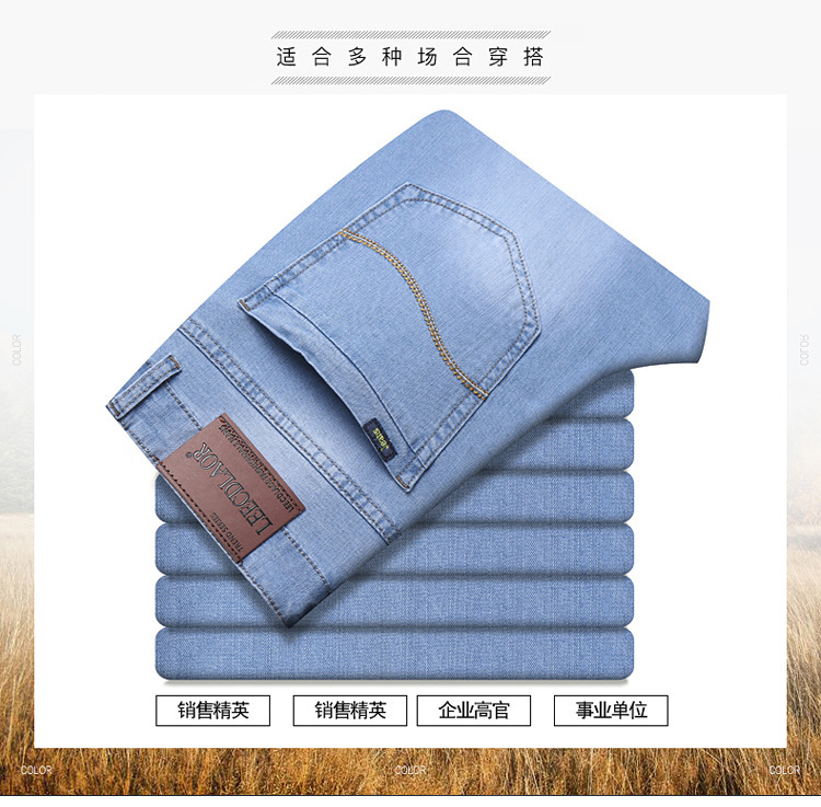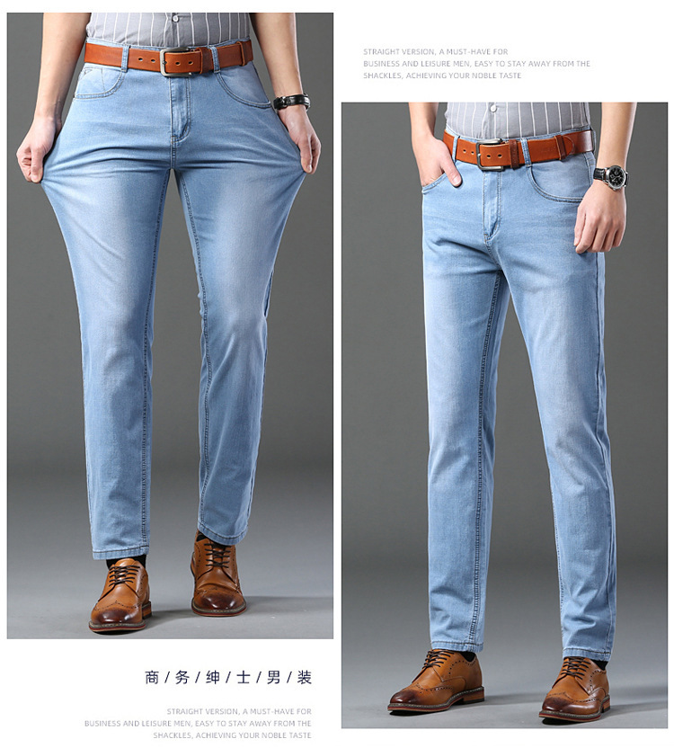 2026년 여름 신상 얇은 데님 청바지 남성용 신축성 있는 스트레이트 핏 청년 캐주얼 슬림핏 트렌디한 밝은 색상 긴 바지스토어 가기