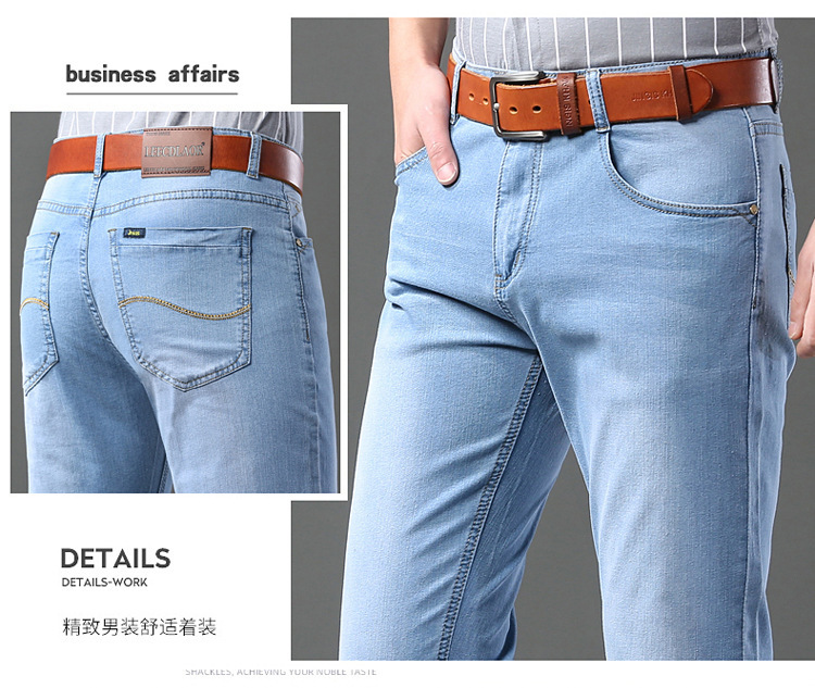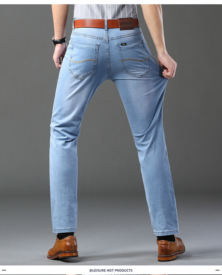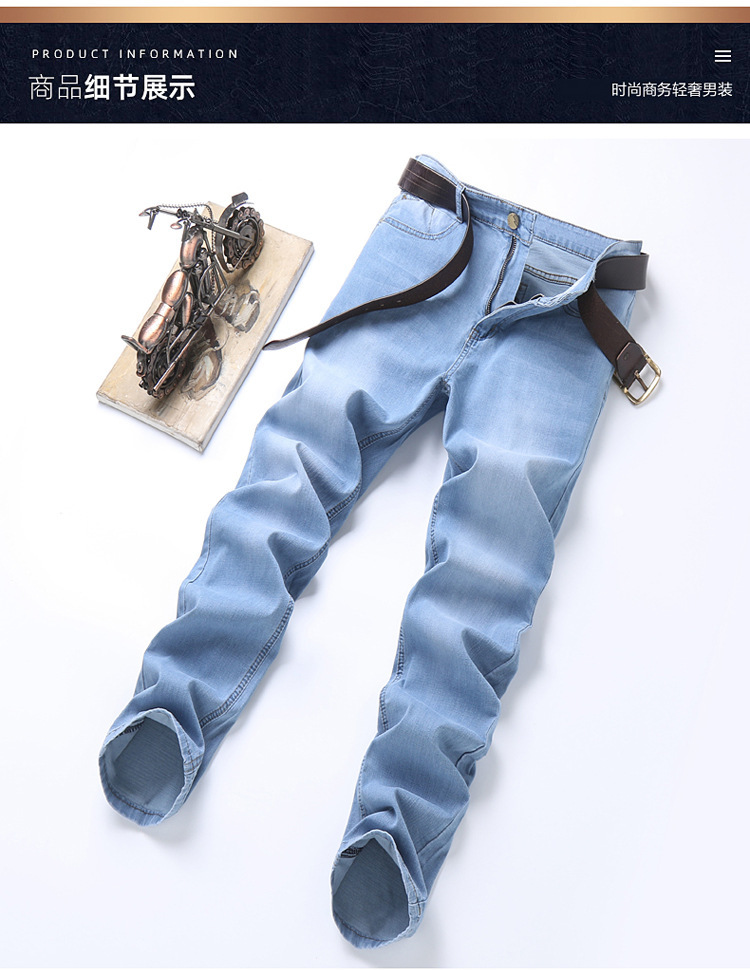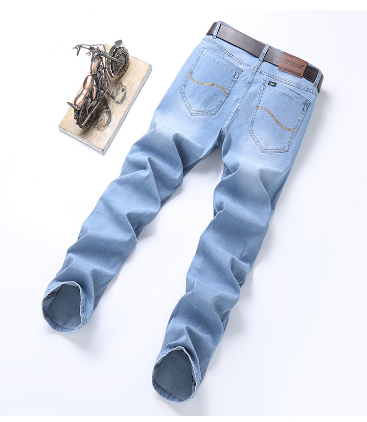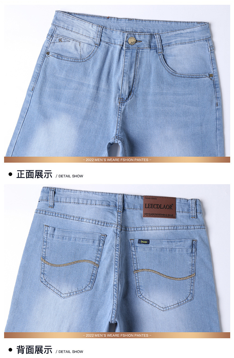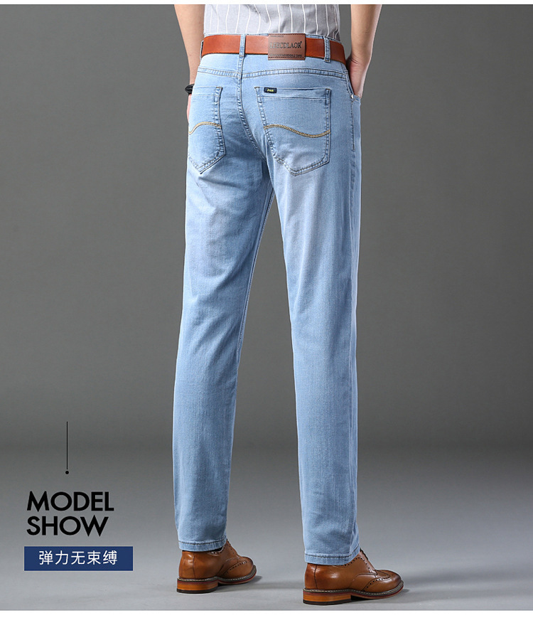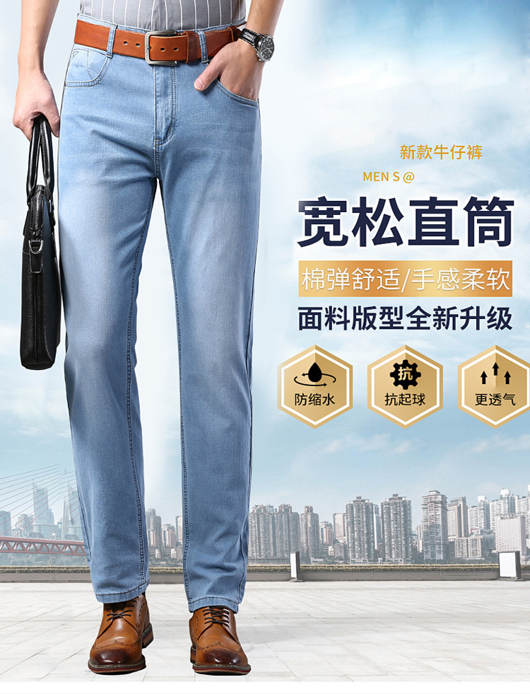 2026년 여름 신상 얇은 데님 청바지 남성용 신축성 있는 스트레이트 핏 청년 캐주얼 슬림핏 트렌디한 밝은 색상 긴 바지스토어 가기