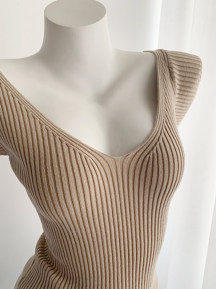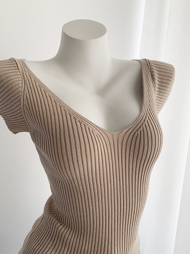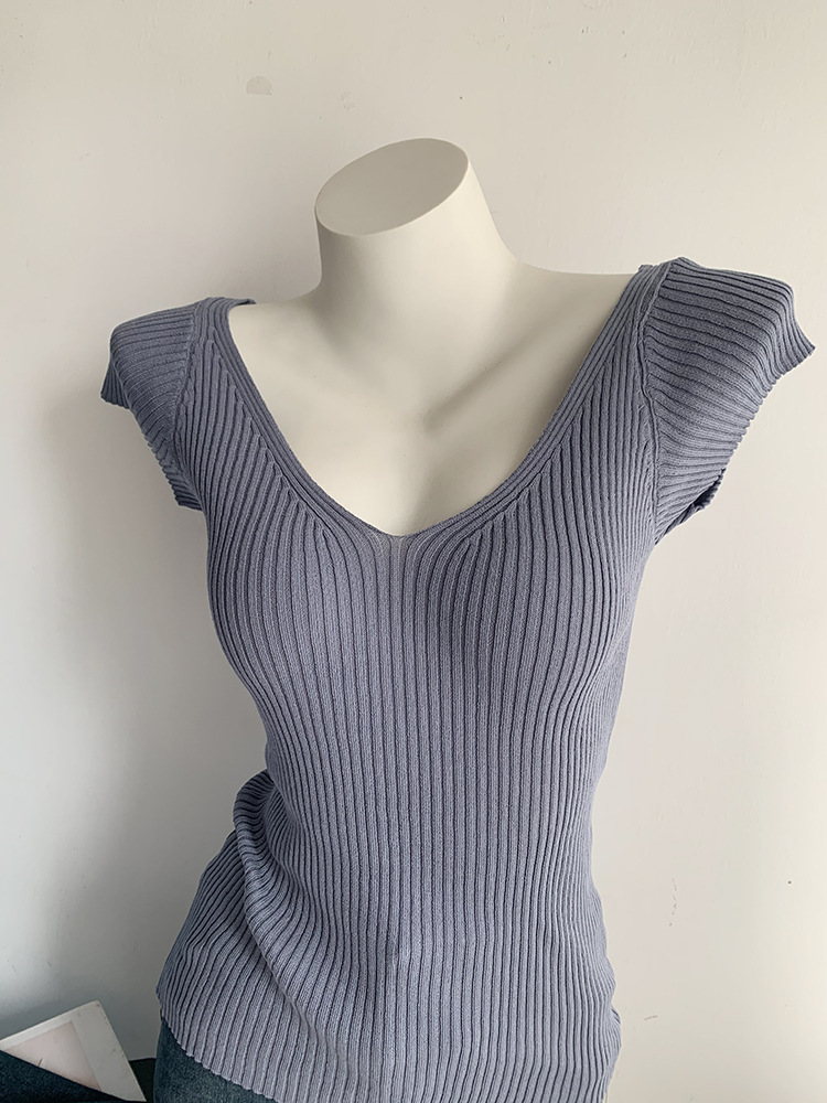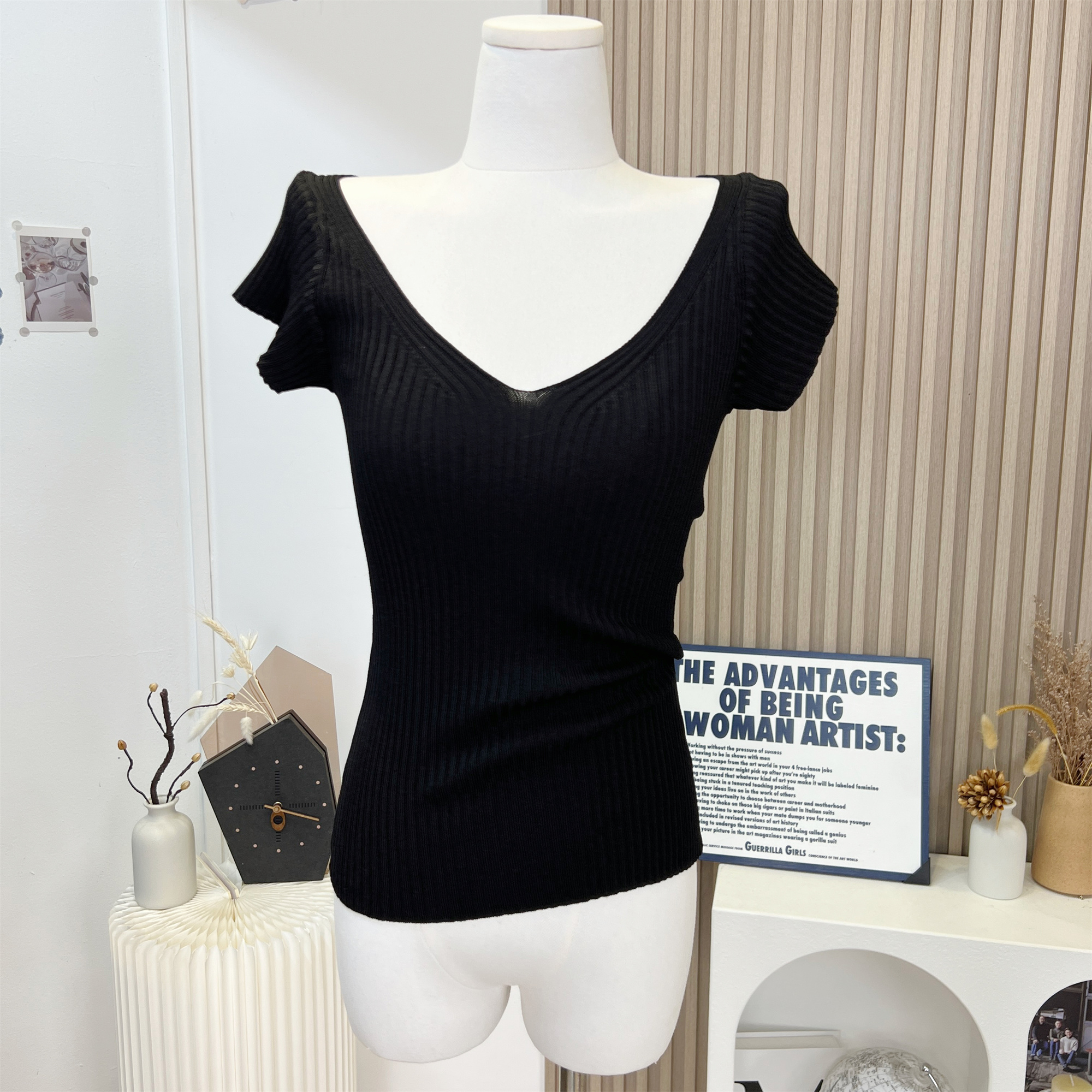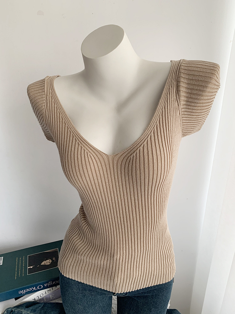 기질 슬림 핏 딥 V 넥 피겨핏 Feifei 슬리브 여성용 슬림 핏 반소매 스웨터 티셔츠스토어 가기