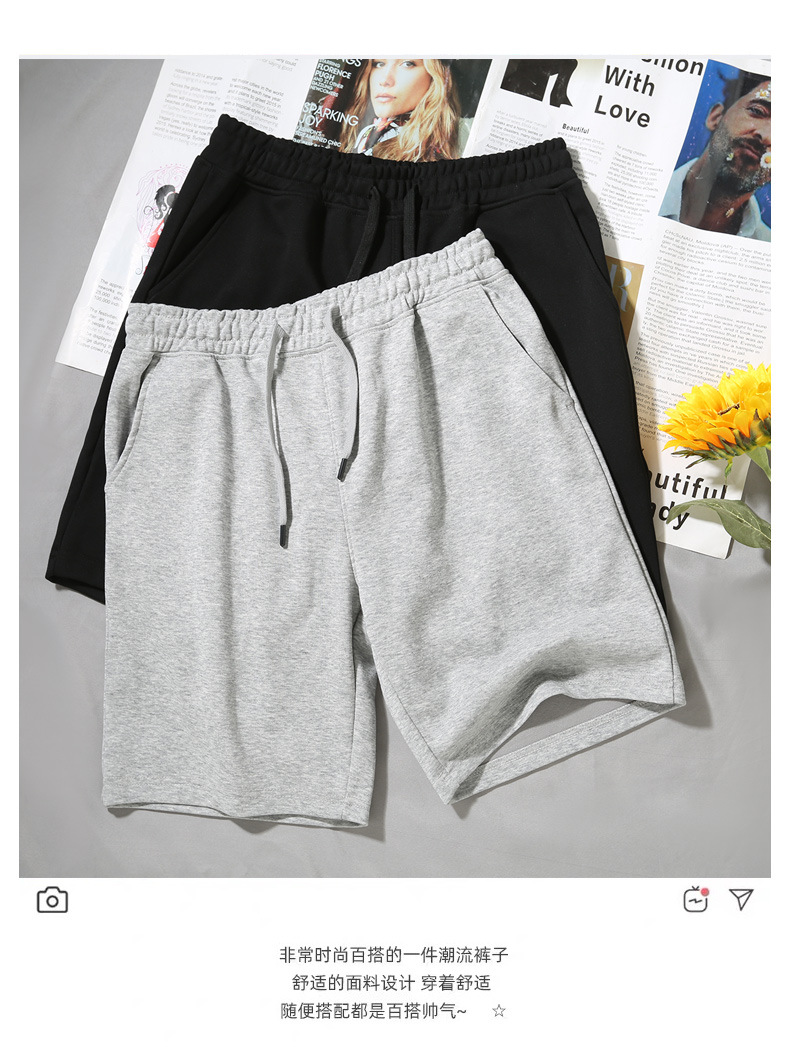 여름 스포츠 남성 반바지, 루즈하고 편안하며 캐주얼하고 패셔너블한 중국산 면 소재의 5부 바지, 트렌디하고 다용도로 활용 가능한 단색 스트레이트 팬츠스토어 가기