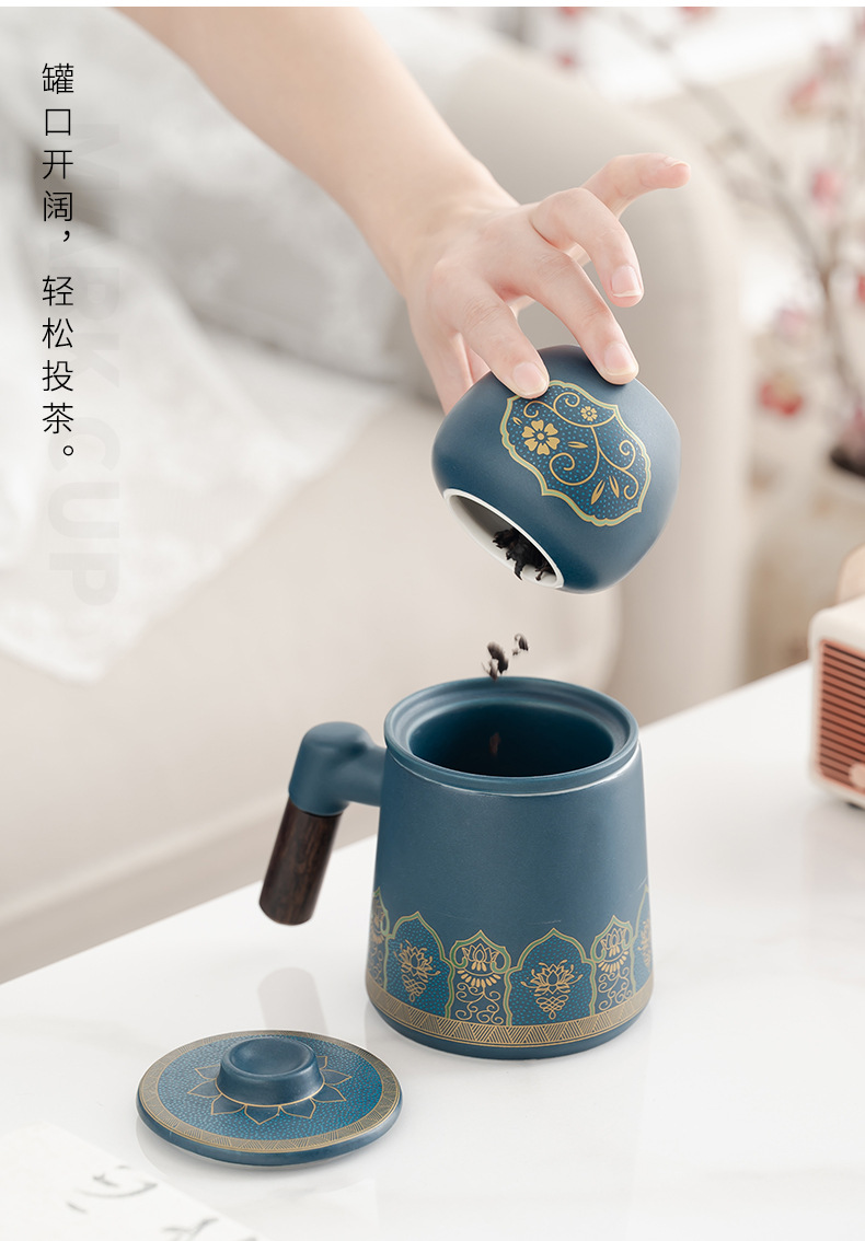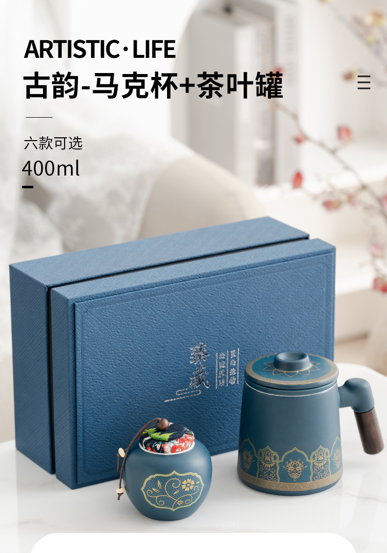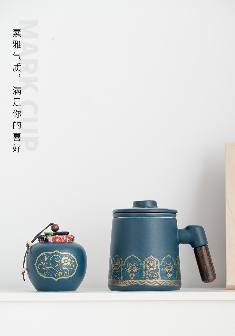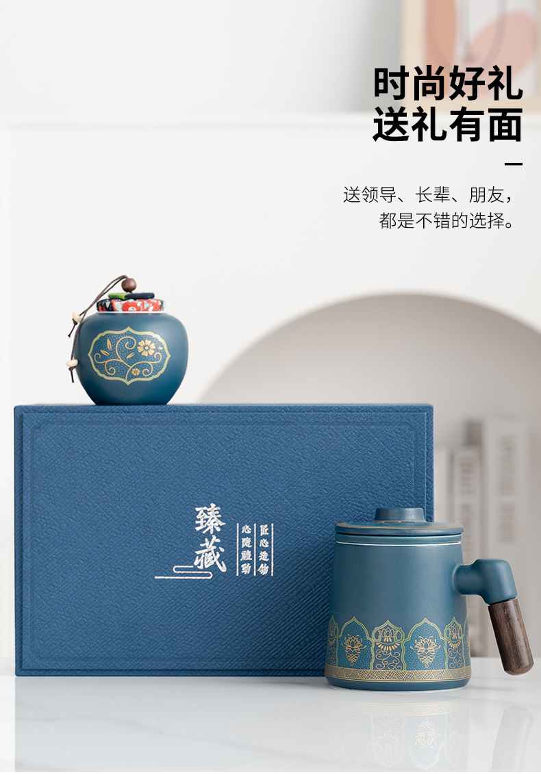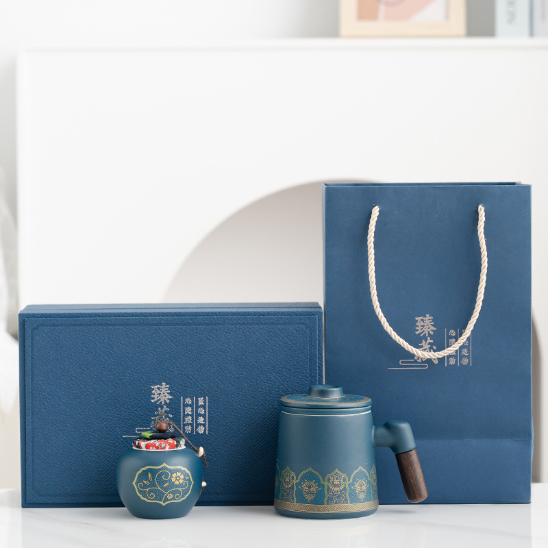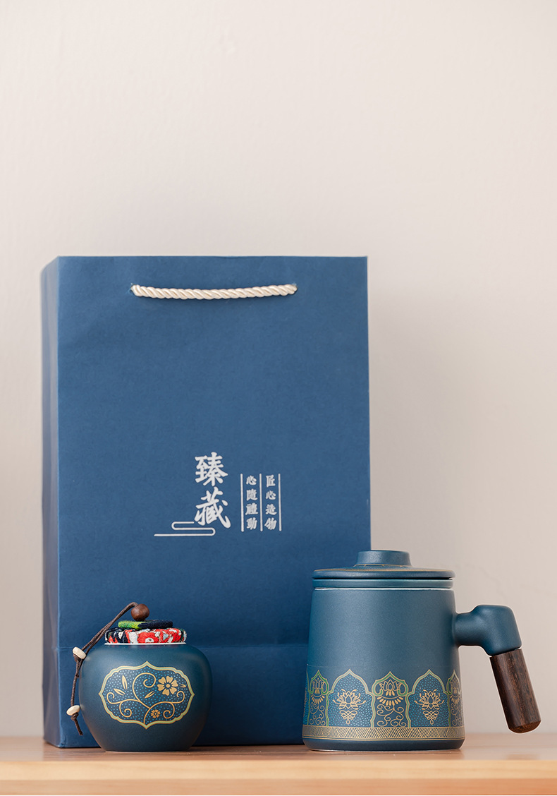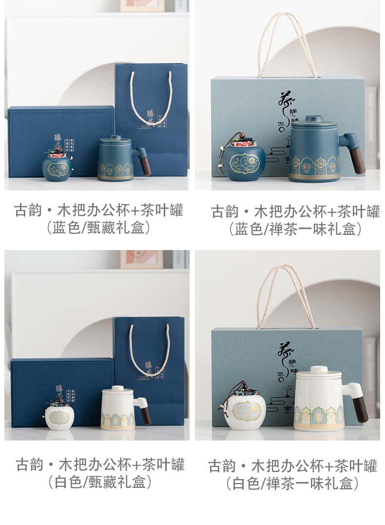 • 블루/나무 손잡이 고대 운율 사무실 컵 차 항아리/선 맛 선물 상자