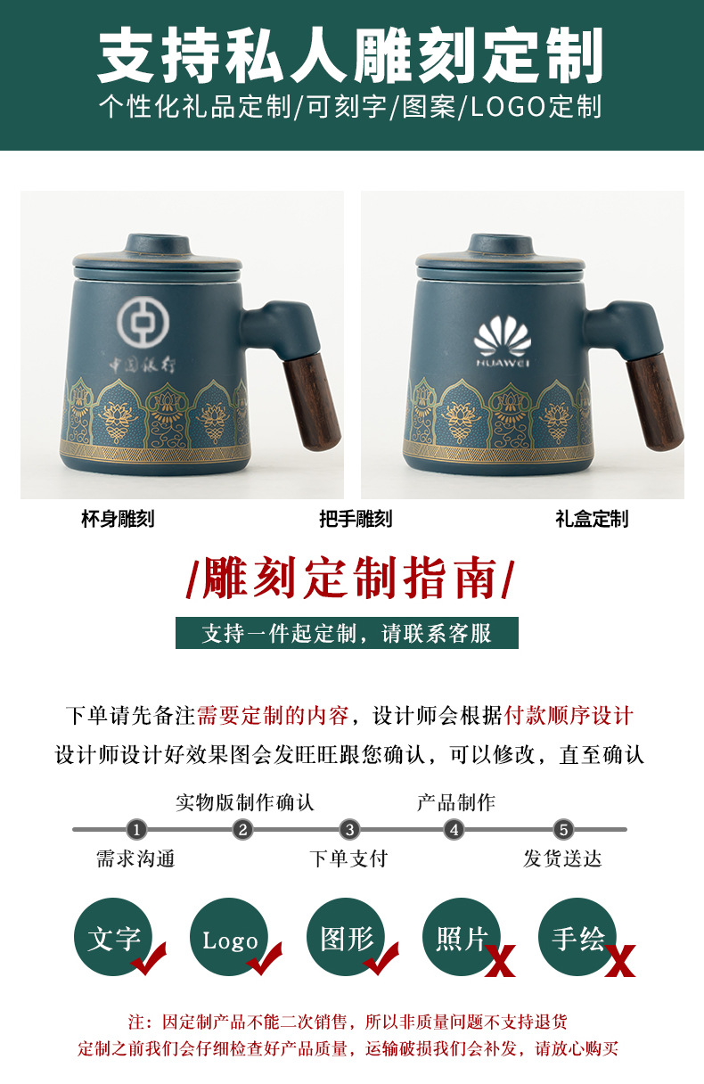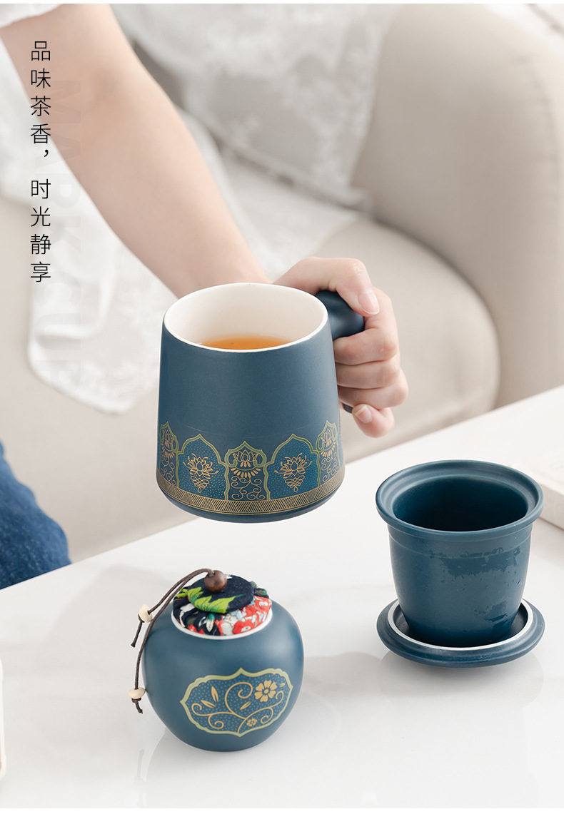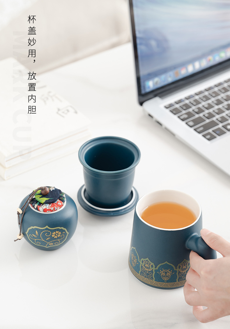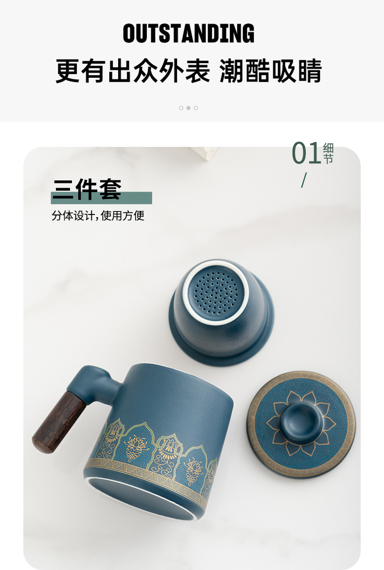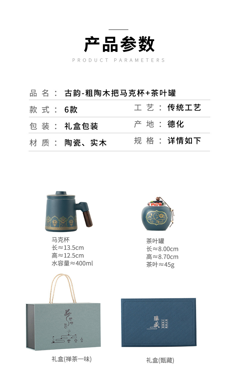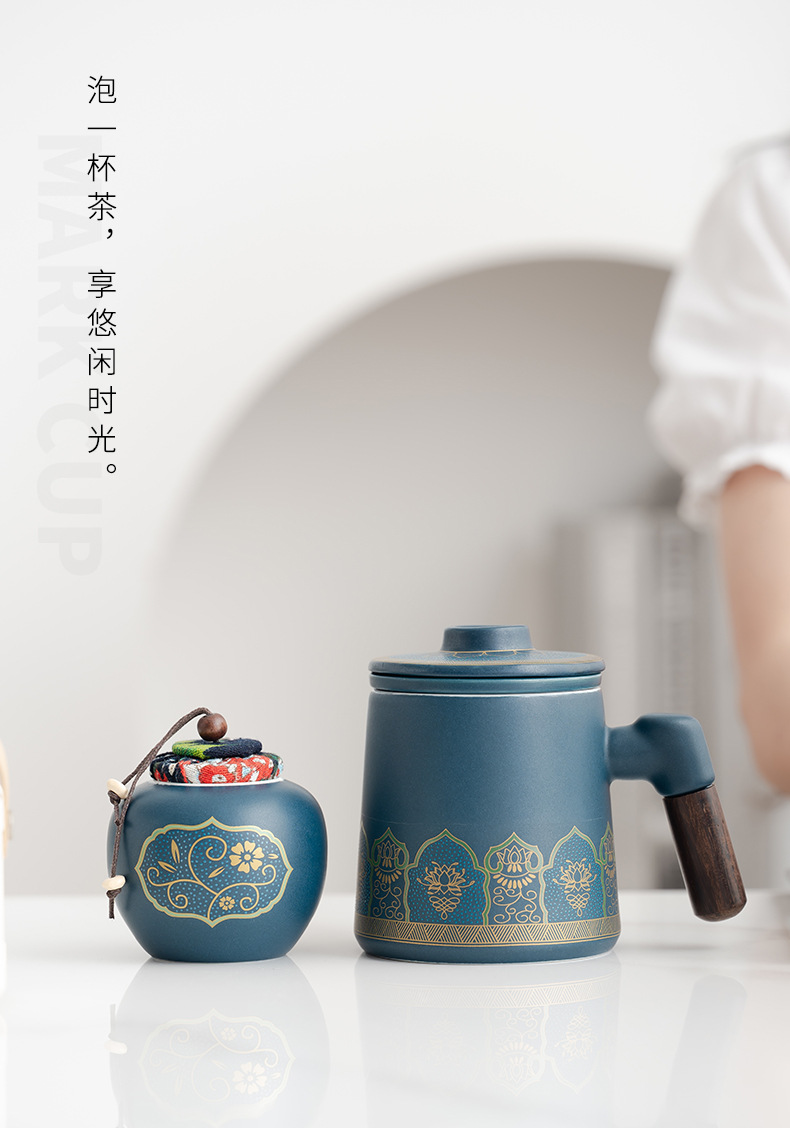 • 블루/나무 손잡이 고대 운율 사무실 컵 차 항아리/선 맛 선물 상자
