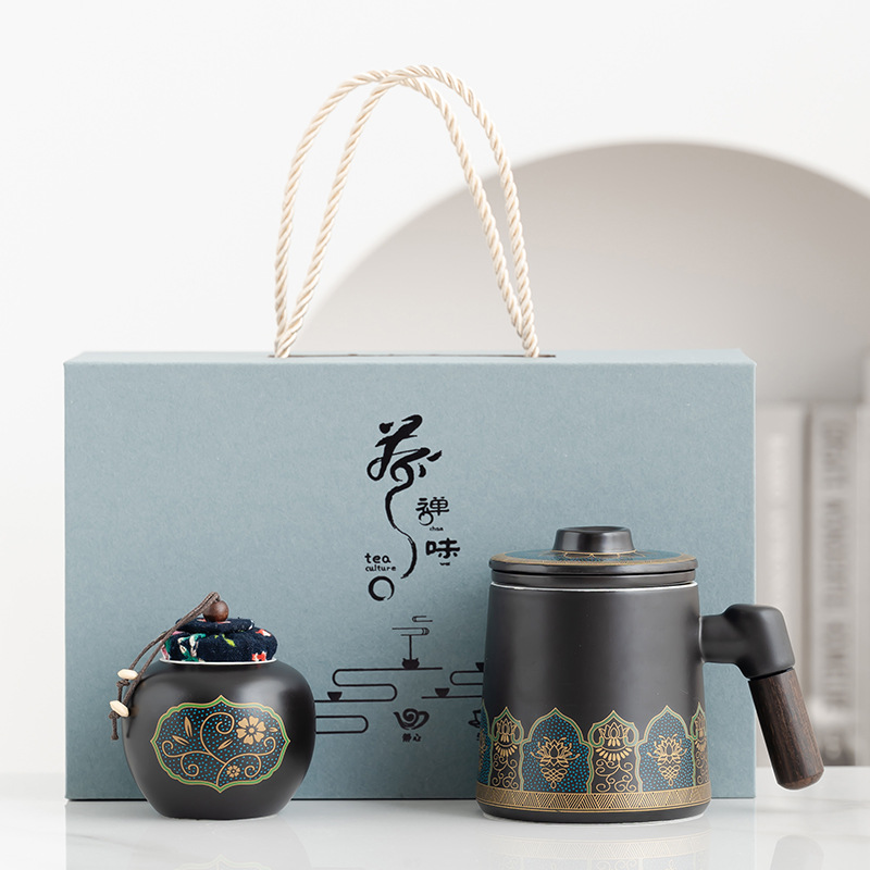 • 블랙/나무 손잡이 고대 운율 사무실 컵 차 항아리/선 맛 선물 상자