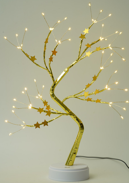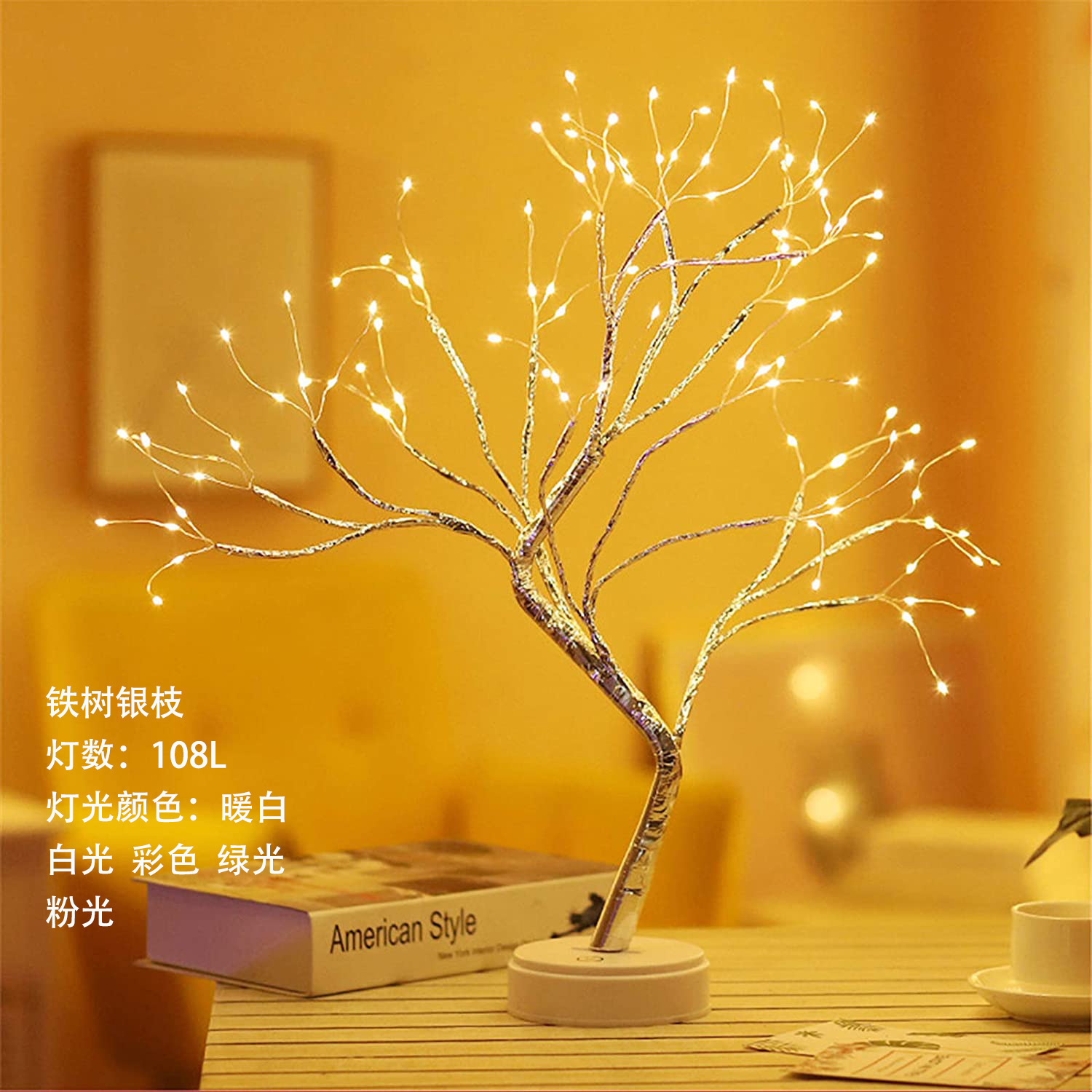 데스크탑 분재 램프 스타일링 테이블 램프 LED 데스크탑 나이트 라이트 아이언 트리 실버 지점 진주 골드 리프 별 크리스마스 트리