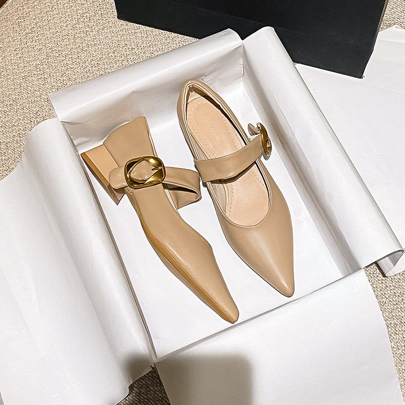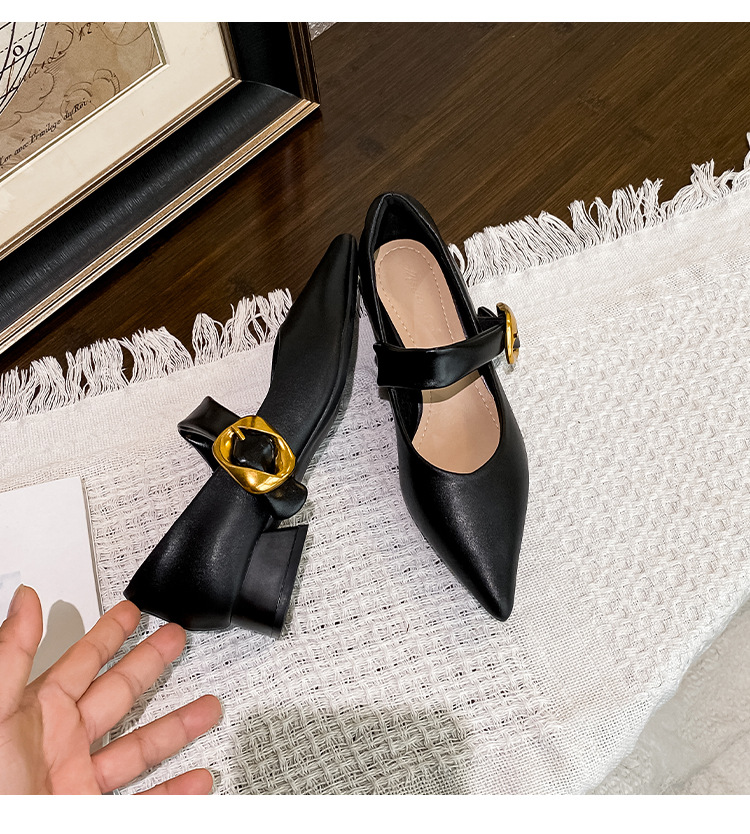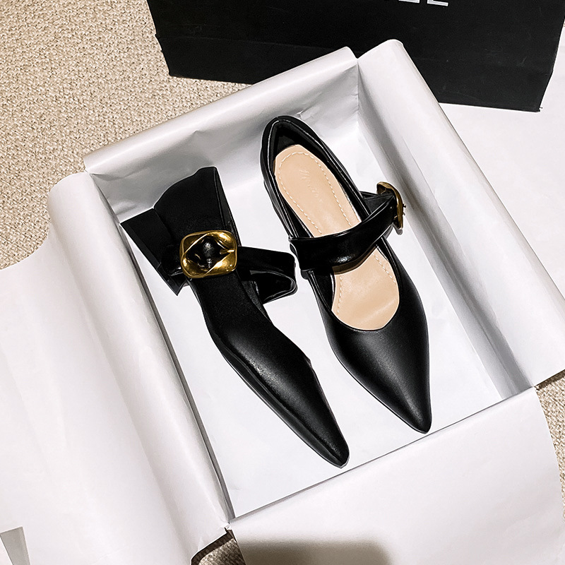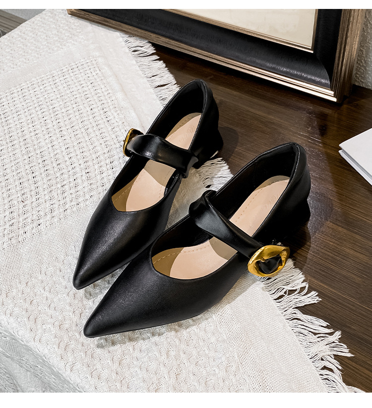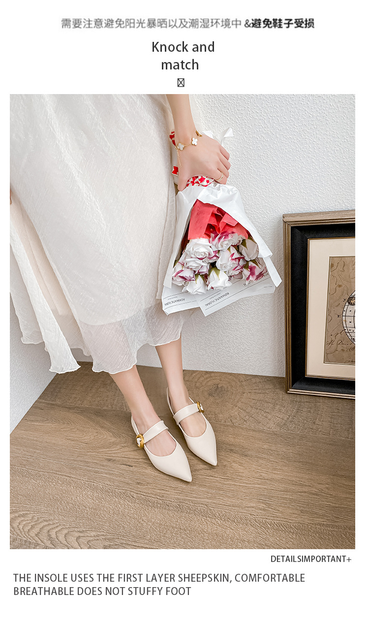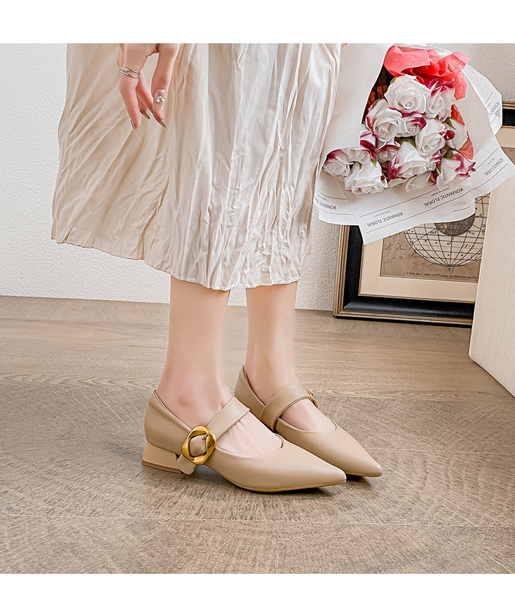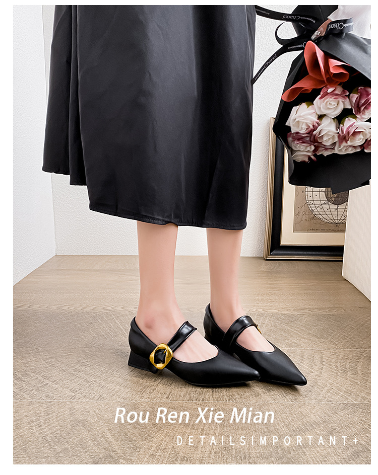 여성용 소프트 가죽 슈즈 2025 여름 신상 뾰족코 얕은 굽 두꺼운 굽 발이 피곤하지 않은 프렌치 스타일 원버튼 메리제인 슈즈스토어 가기