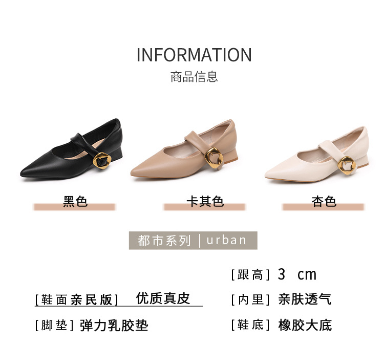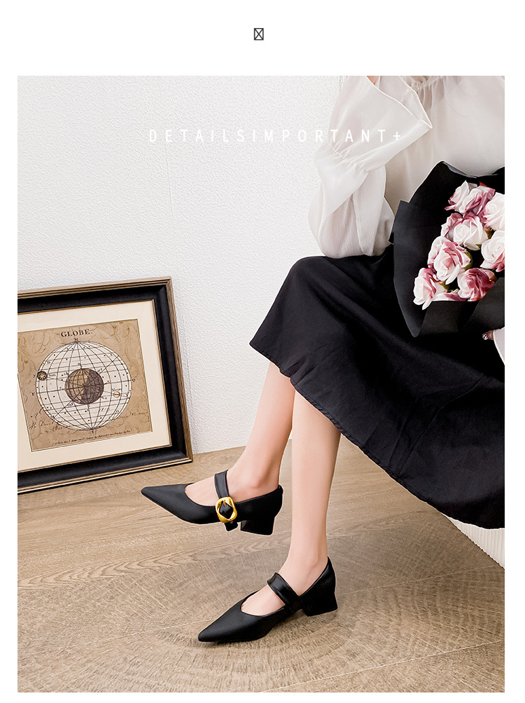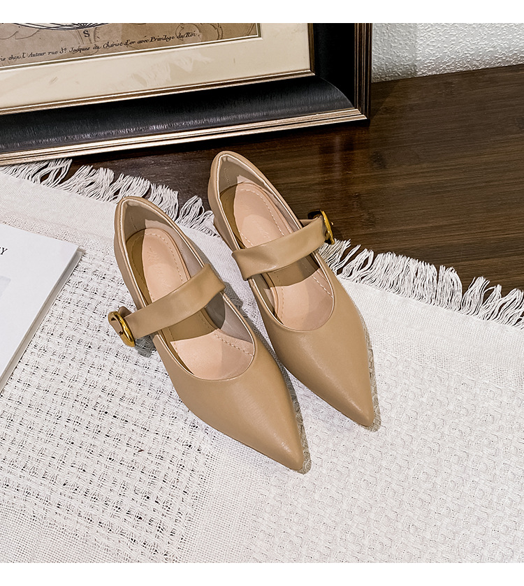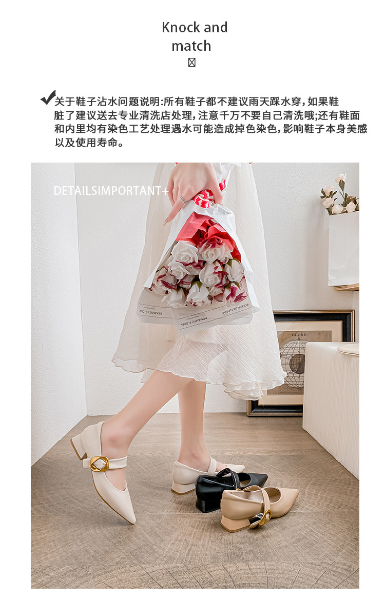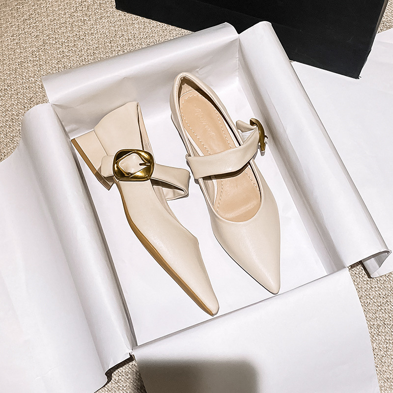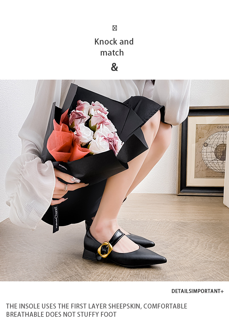 여성용 소프트 가죽 슈즈 2025 여름 신상 뾰족코 얕은 굽 두꺼운 굽 발이 피곤하지 않은 프렌치 스타일 원버튼 메리제인 슈즈스토어 가기