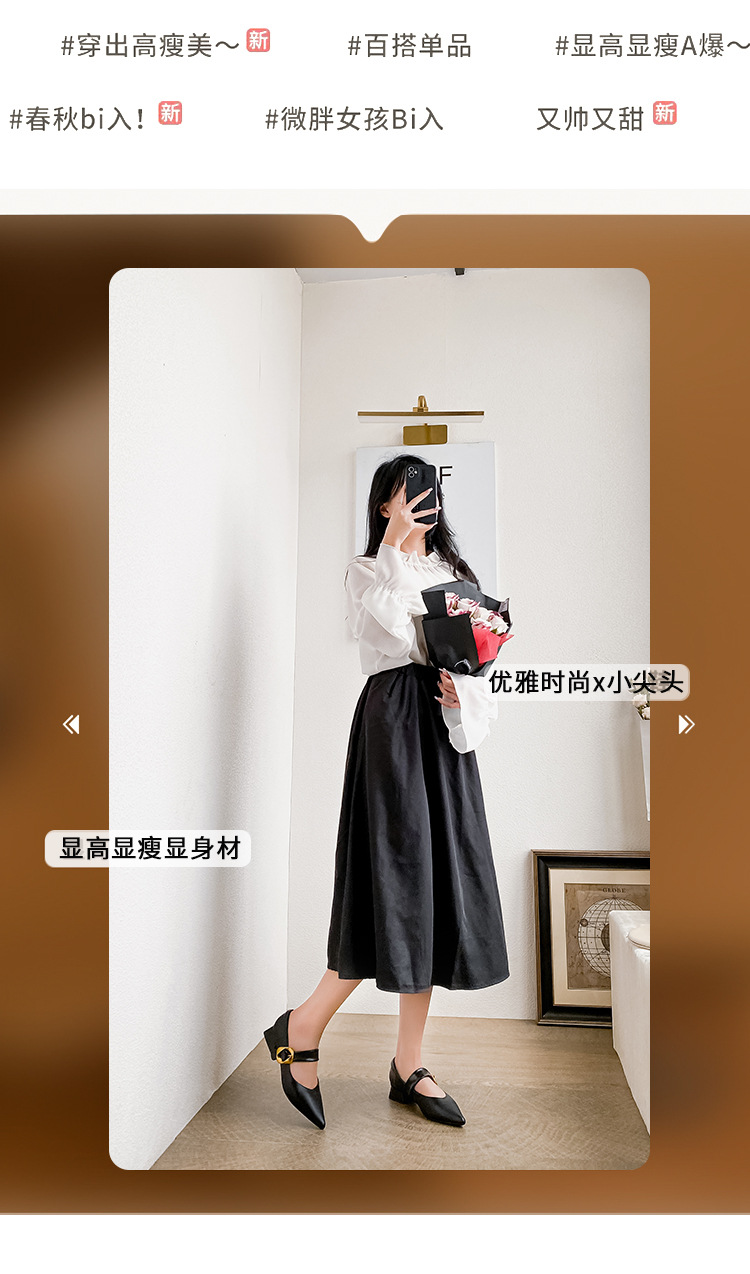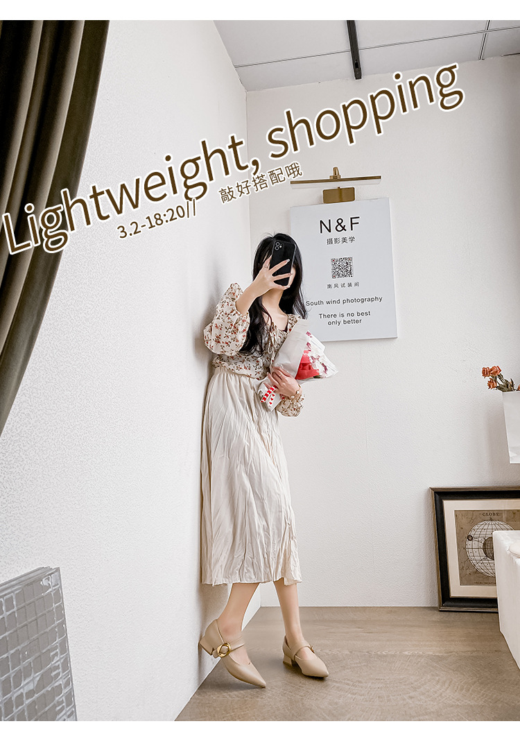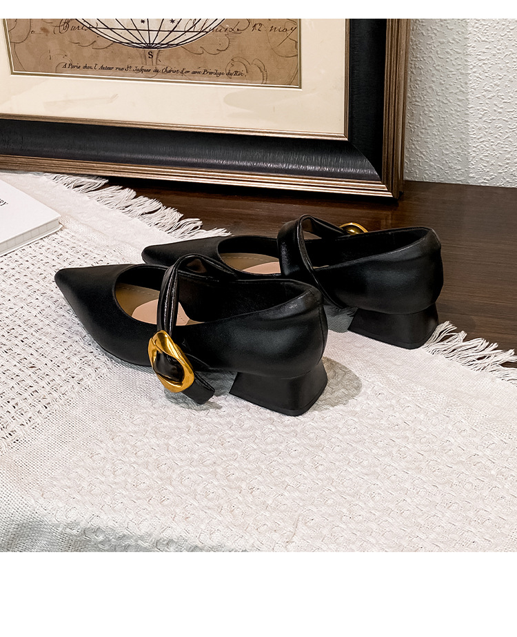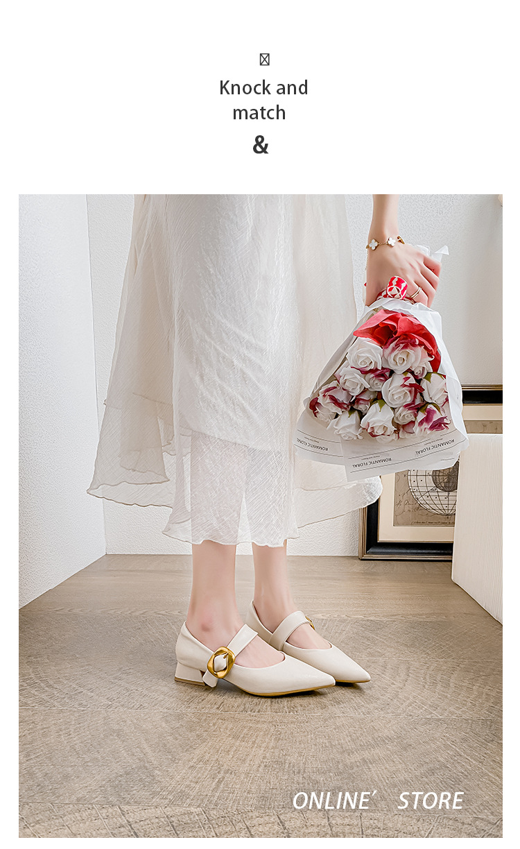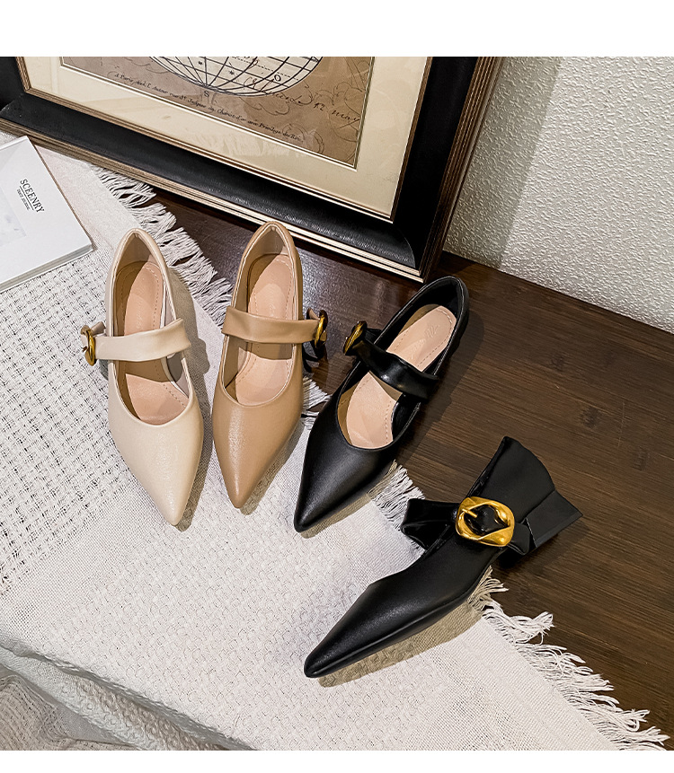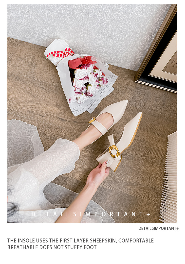 여성용 소프트 가죽 슈즈 2025 여름 신상 뾰족코 얕은 굽 두꺼운 굽 발이 피곤하지 않은 프렌치 스타일 원버튼 메리제인 슈즈스토어 가기