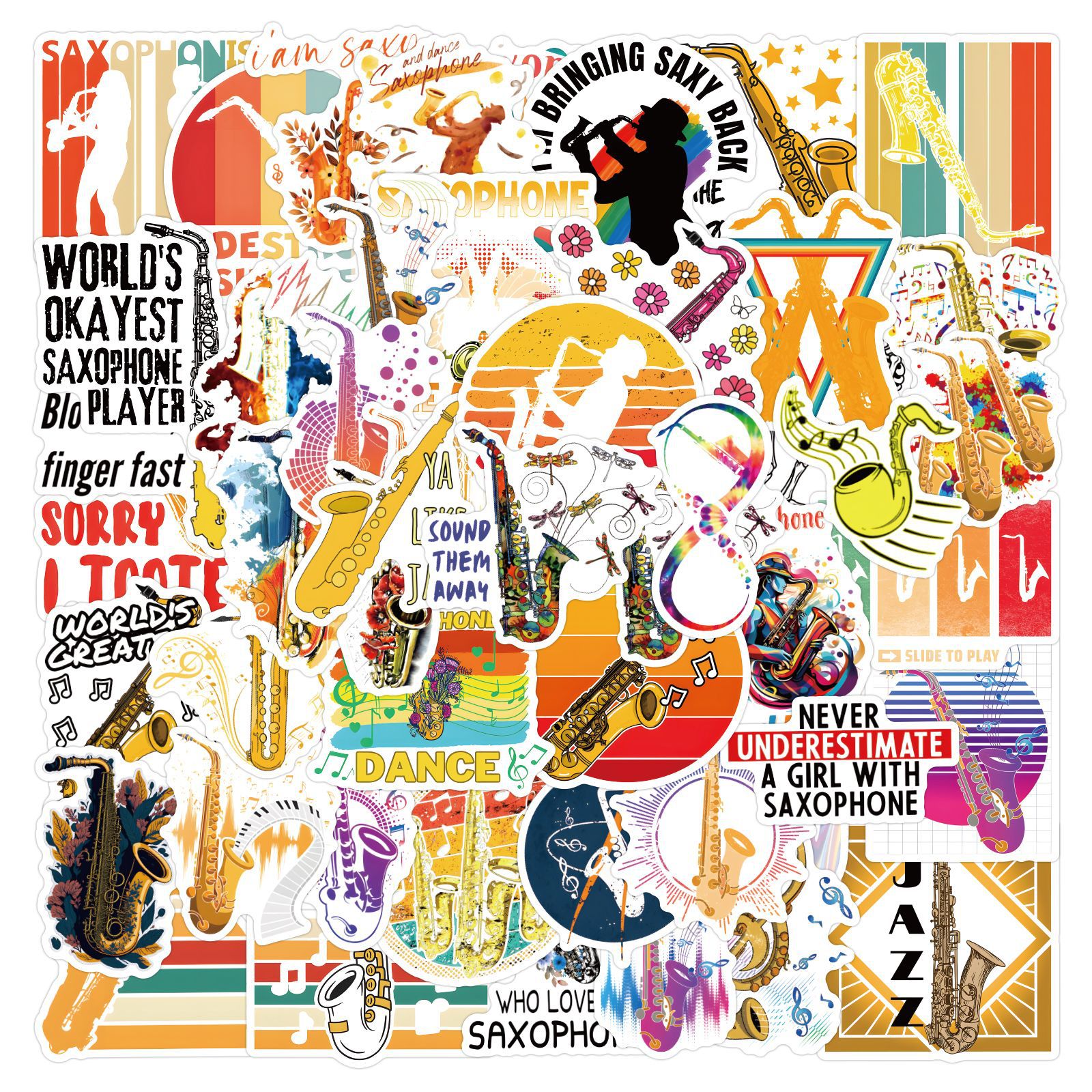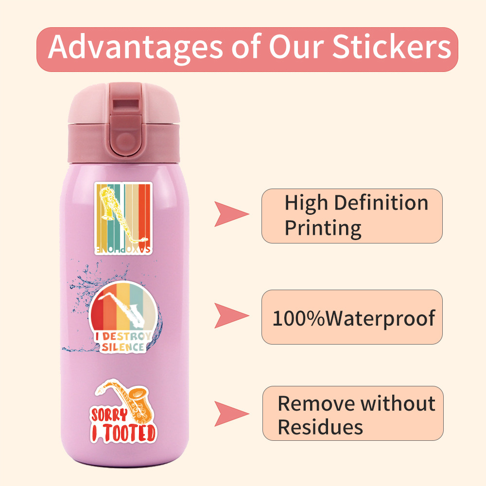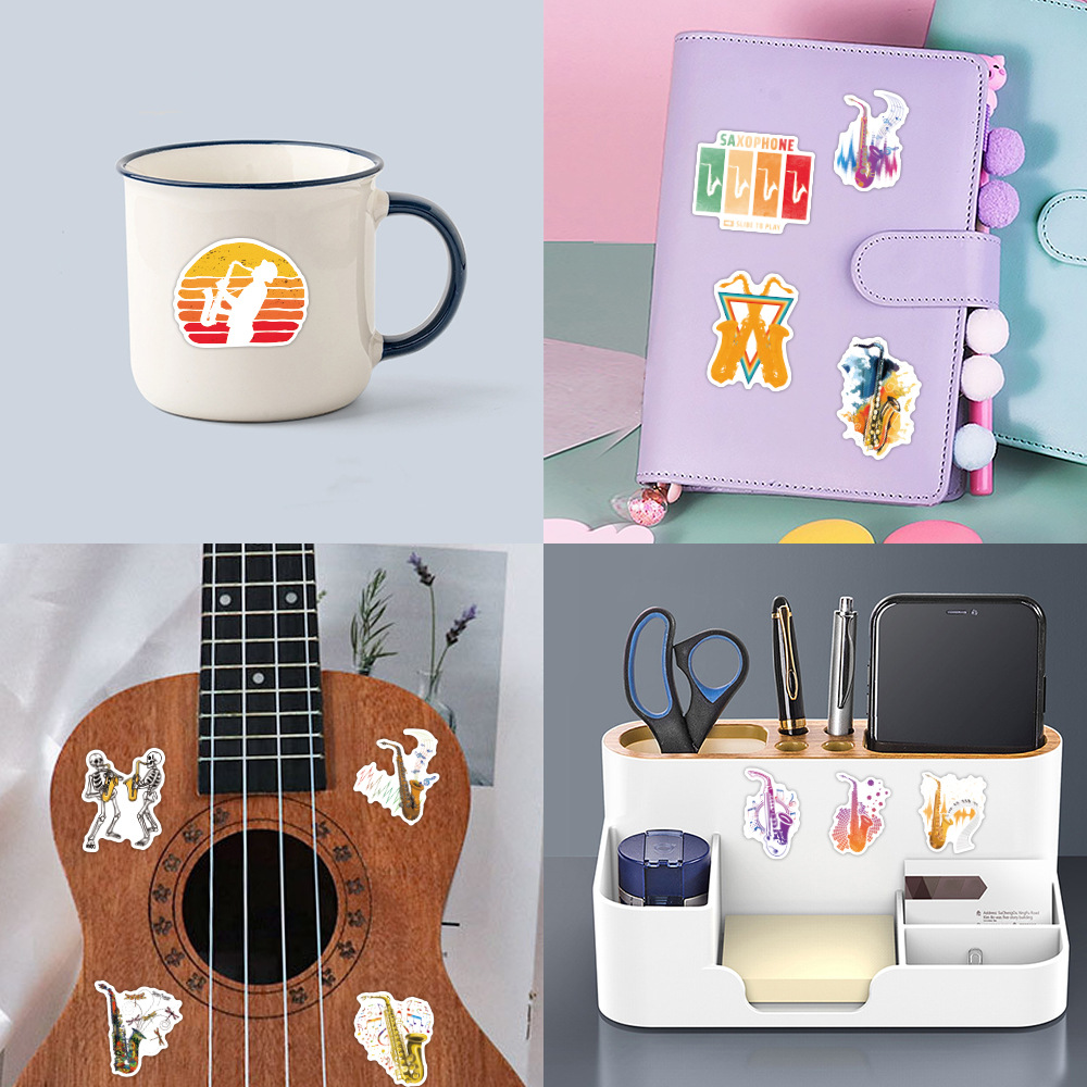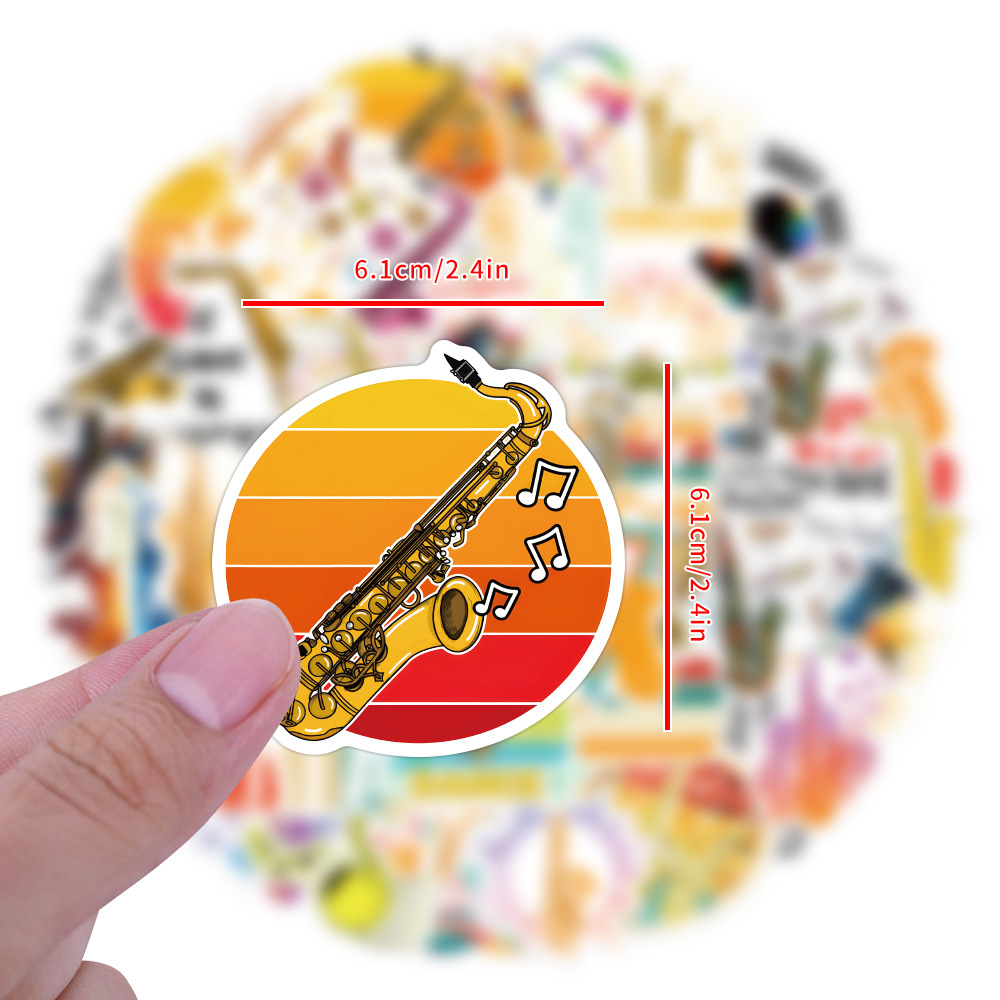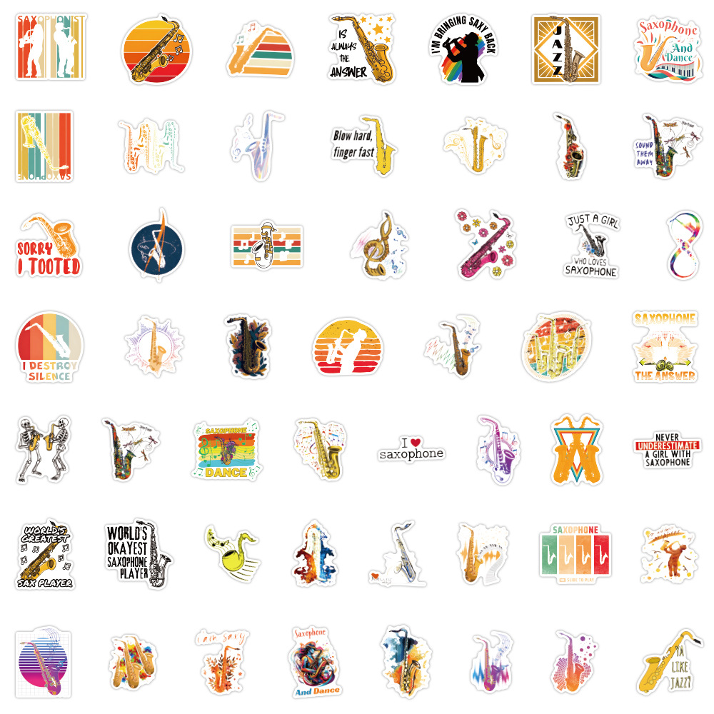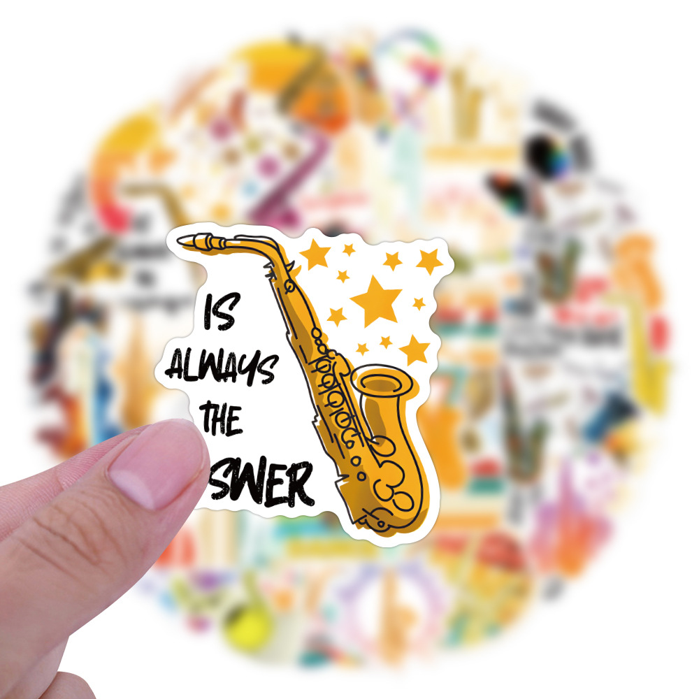 50 국경 간 색소폰 색소폰 만화 악기 낙서 스티커 DIY 손 계정 장식 스티커 도매