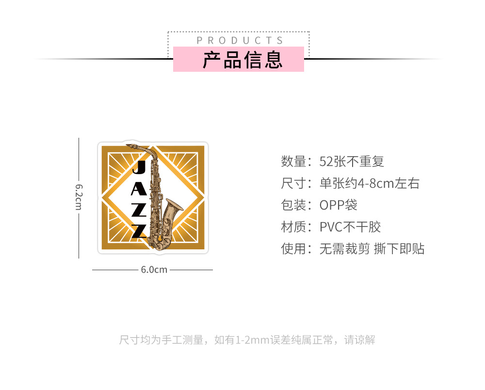 产品采用防水材质,进口海德堡高清印刷、覆膜,贴纸按形状模切完好,不用担心自己裁剪的不整齐