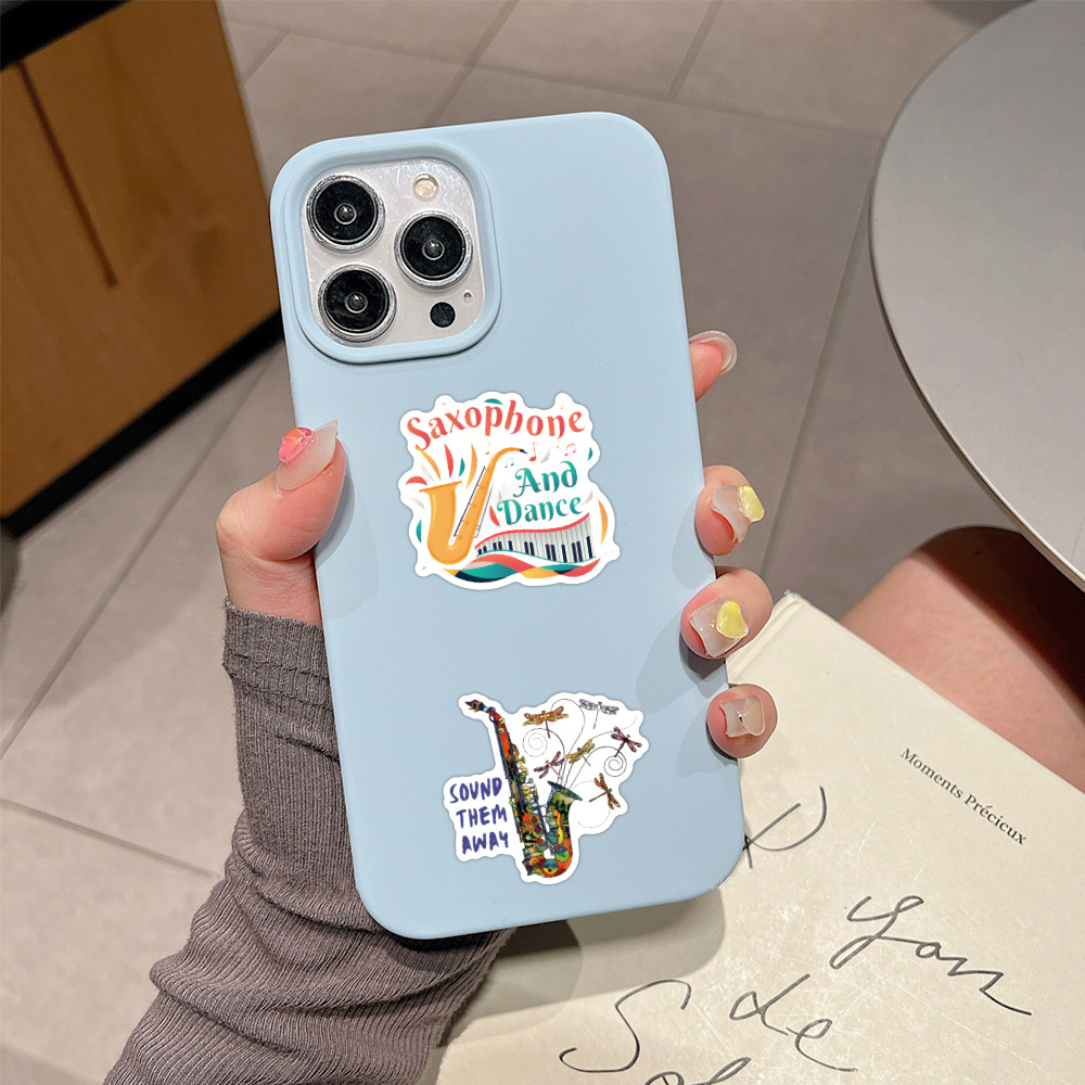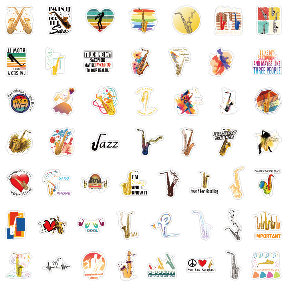 50 국경 간 색소폰 색소폰 만화 악기 낙서 스티커 DIY 손 계정 장식 스티커 도매스토어 가기