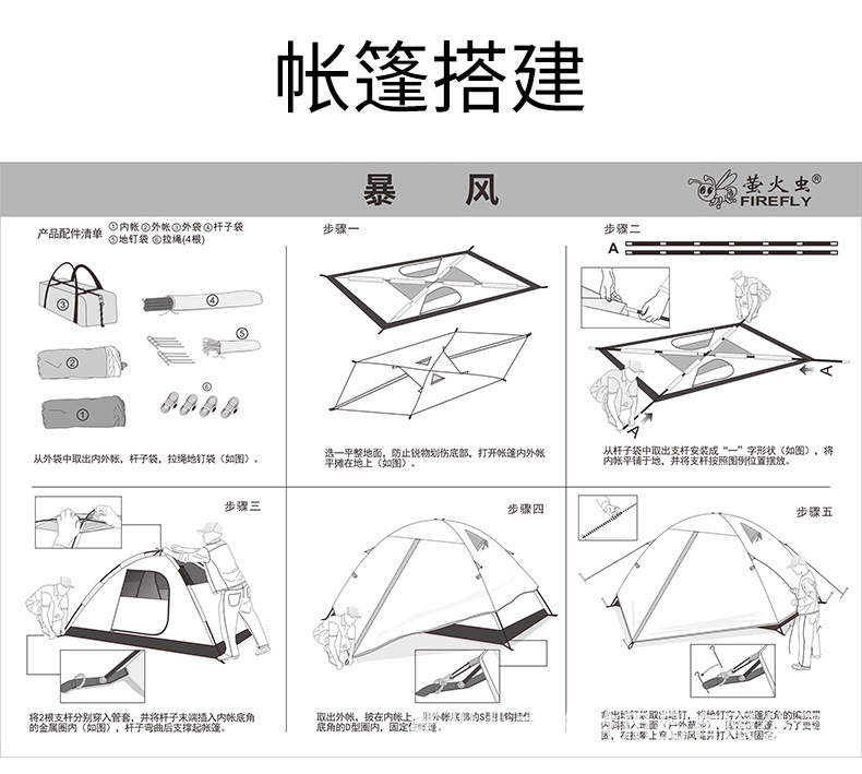 반딧불 야외 텐트 3 인 양손 알루미늄 극 방비 야외 캠핑 공장 스트레이트 헤어스토어 가기