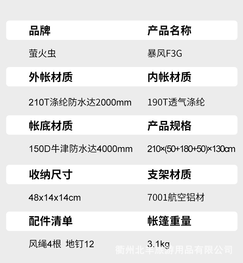 반딧불 야외 텐트 3 인 양손 알루미늄 극 방비 야외 캠핑 공장 스트레이트 헤어