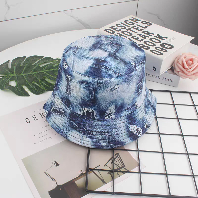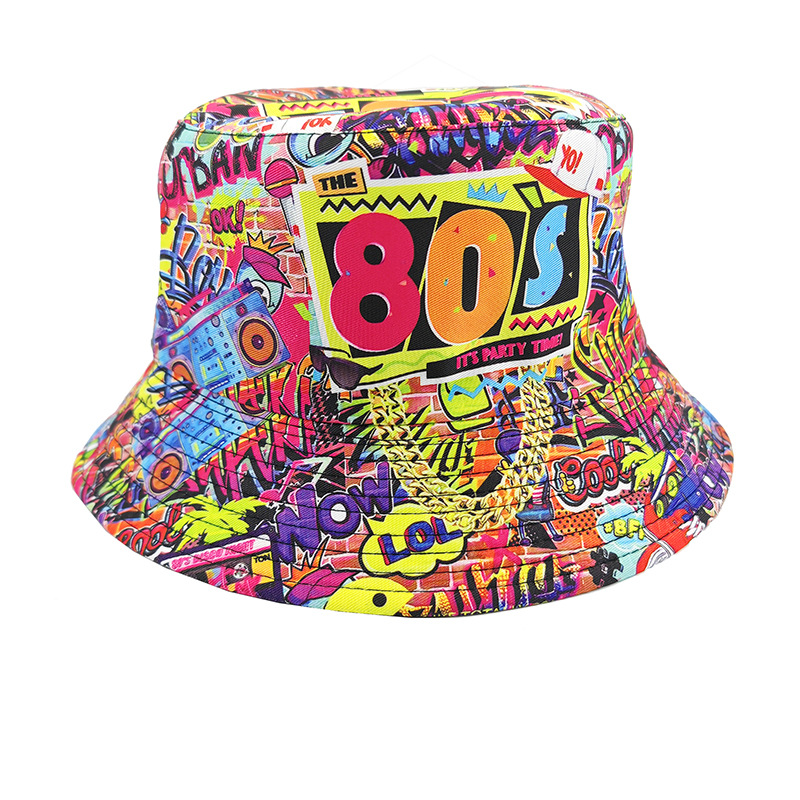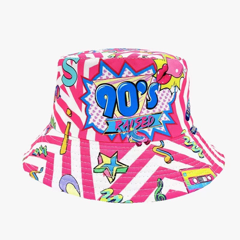 인터넷 연예인 낙서 어부 모자 양면복 복고풍 선스크린 모자 남녀 야외 올 매치 힙합 프린트 분지 모자스토어 가기