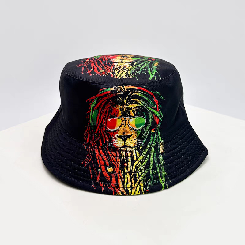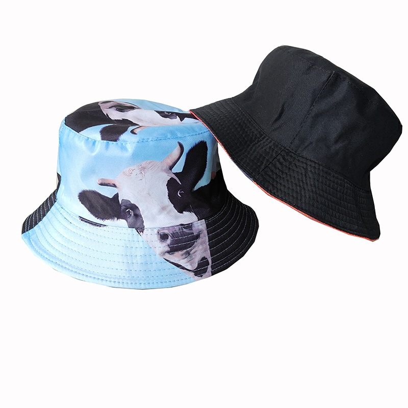 인터넷 연예인 낙서 어부 모자 양면복 복고풍 선스크린 모자 남녀 야외 올 매치 힙합 프린트 분지 모자