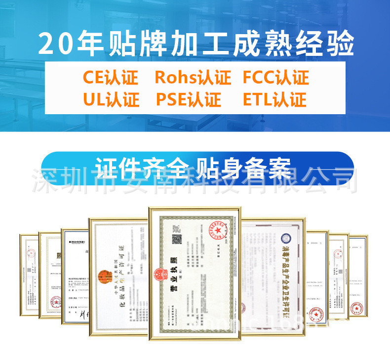 • 认证齐全:CE、FCC、ROHS、UL 等国际认证完备,符合欧美、东南亚、日本等多国市场准入标准;