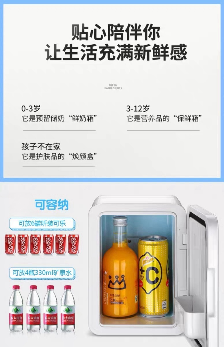 • 强劲制冷:制冷温差达环境温度下 20-22℃,最低约 5℃,精准锁鲜面膜、精华、饮料、母乳、药品,守护活性不流失;