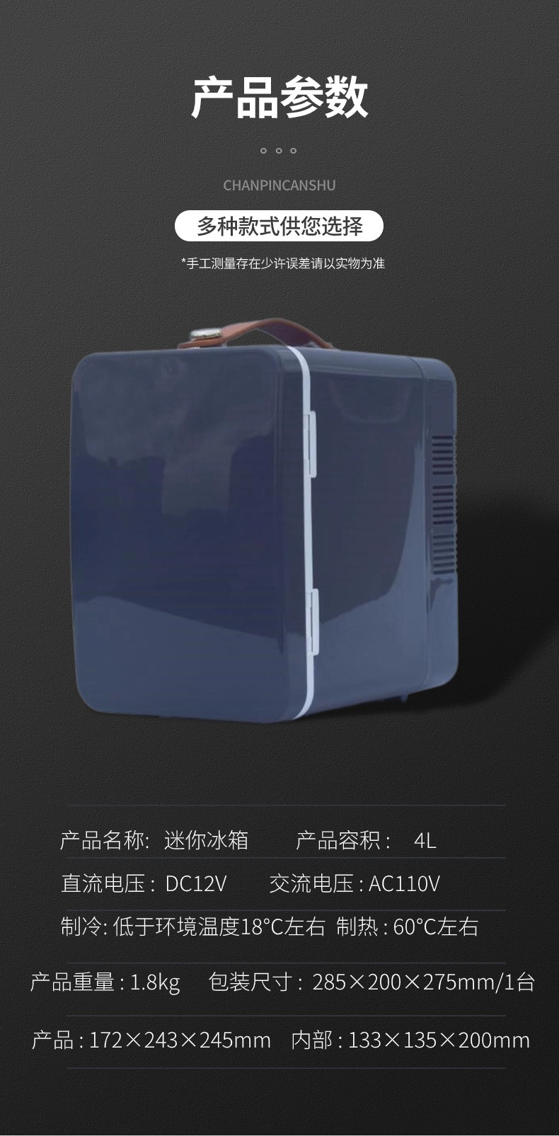 • 4L 黄金容量:尺寸 255×255×285mm,净重约 1.9-2.85kg,可容纳 饮料、20 片面膜或多瓶护肤品,一人使用刚刚好;